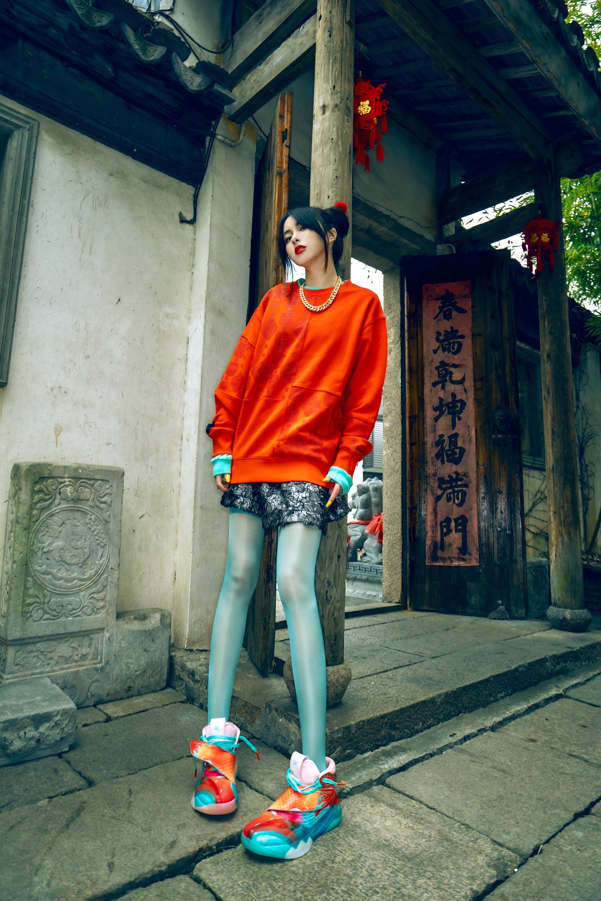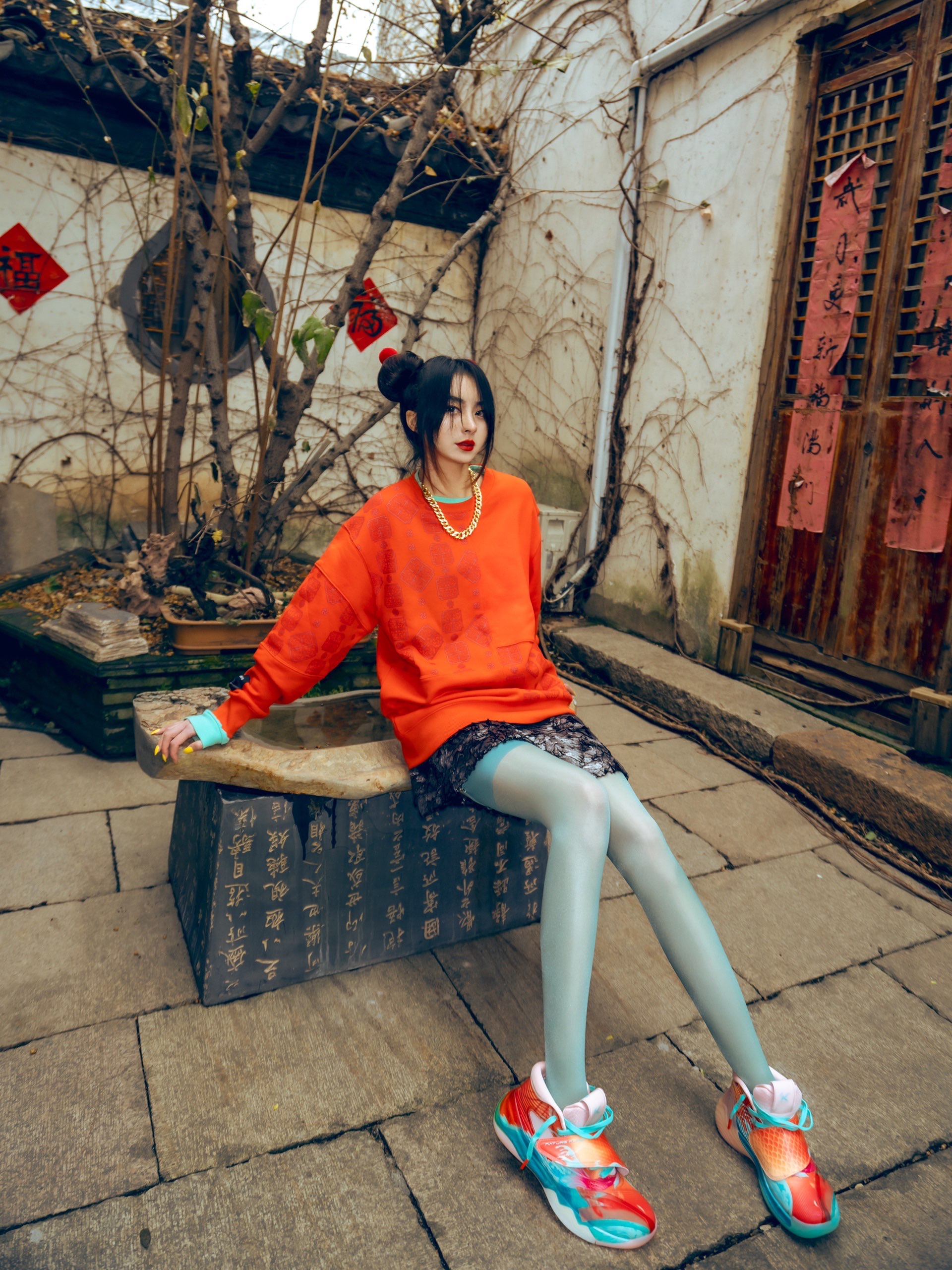 🏮🏮🏮 最近几年大家都说没有了年味 其实年味就在后院, 就在每一个角落, 就在你内心的角落。 #OOTD# 内搭:CLOT 卫衣:XLARGE×FMACM 裙子:EGMARD 鞋子:KT6锦鲤 ❣️