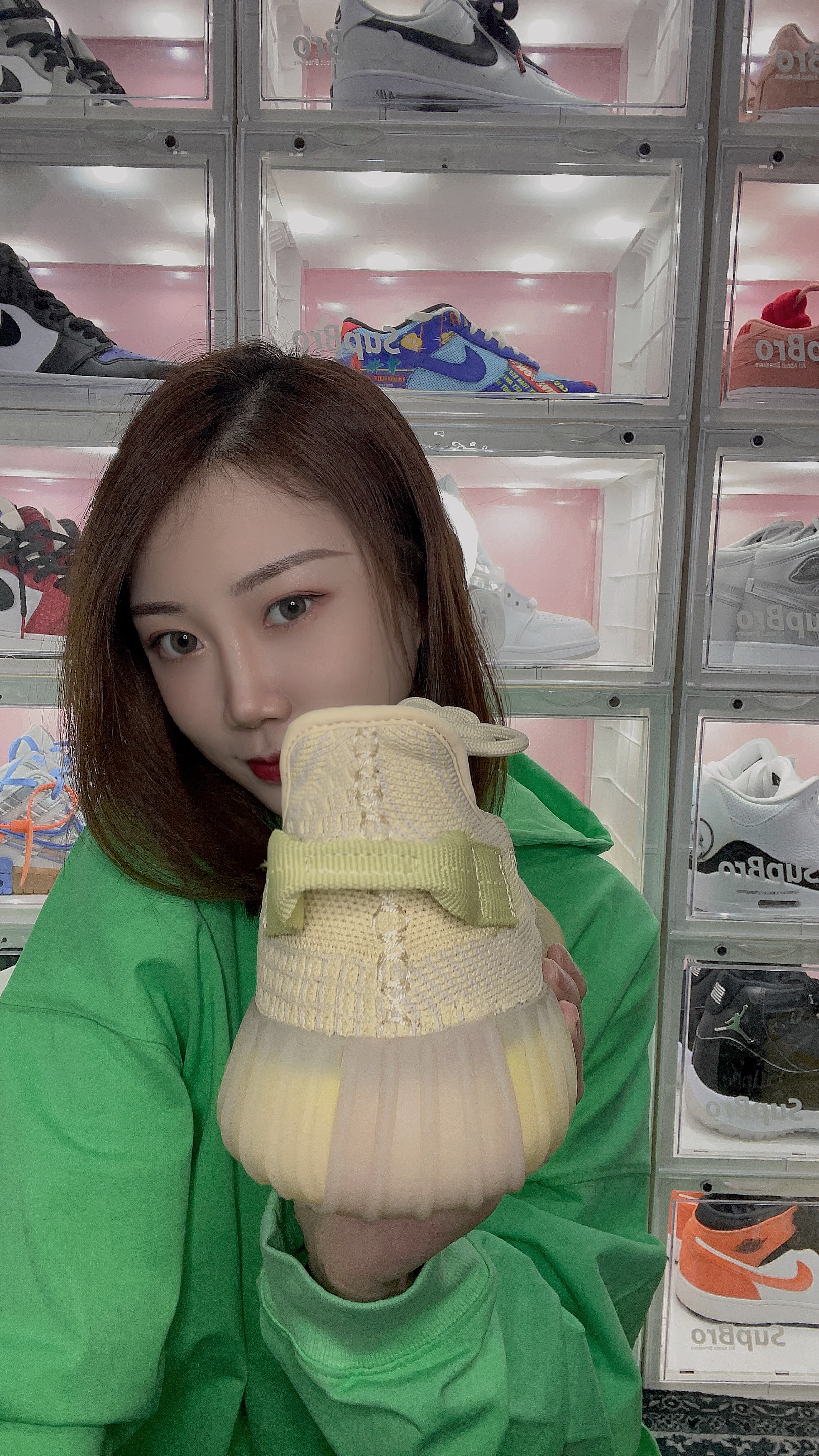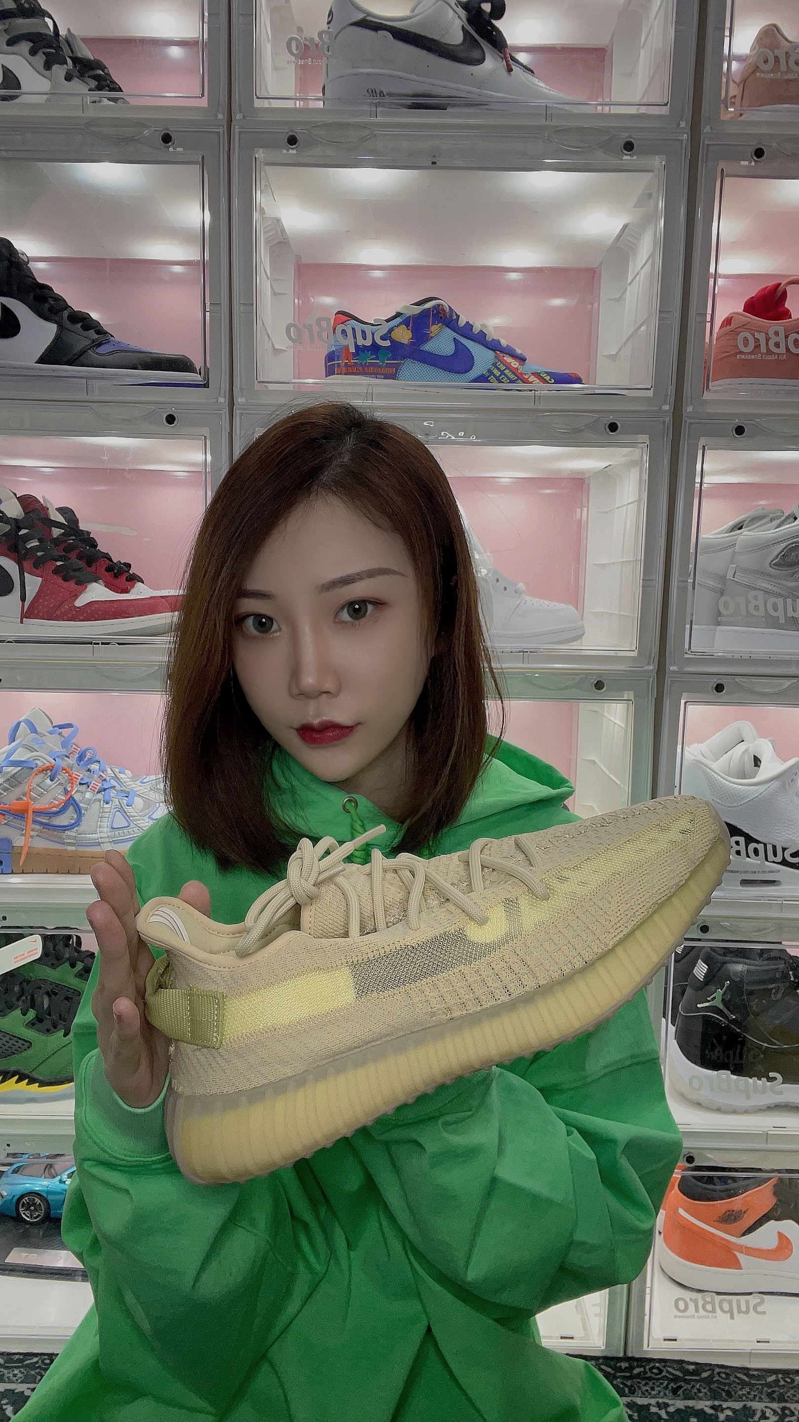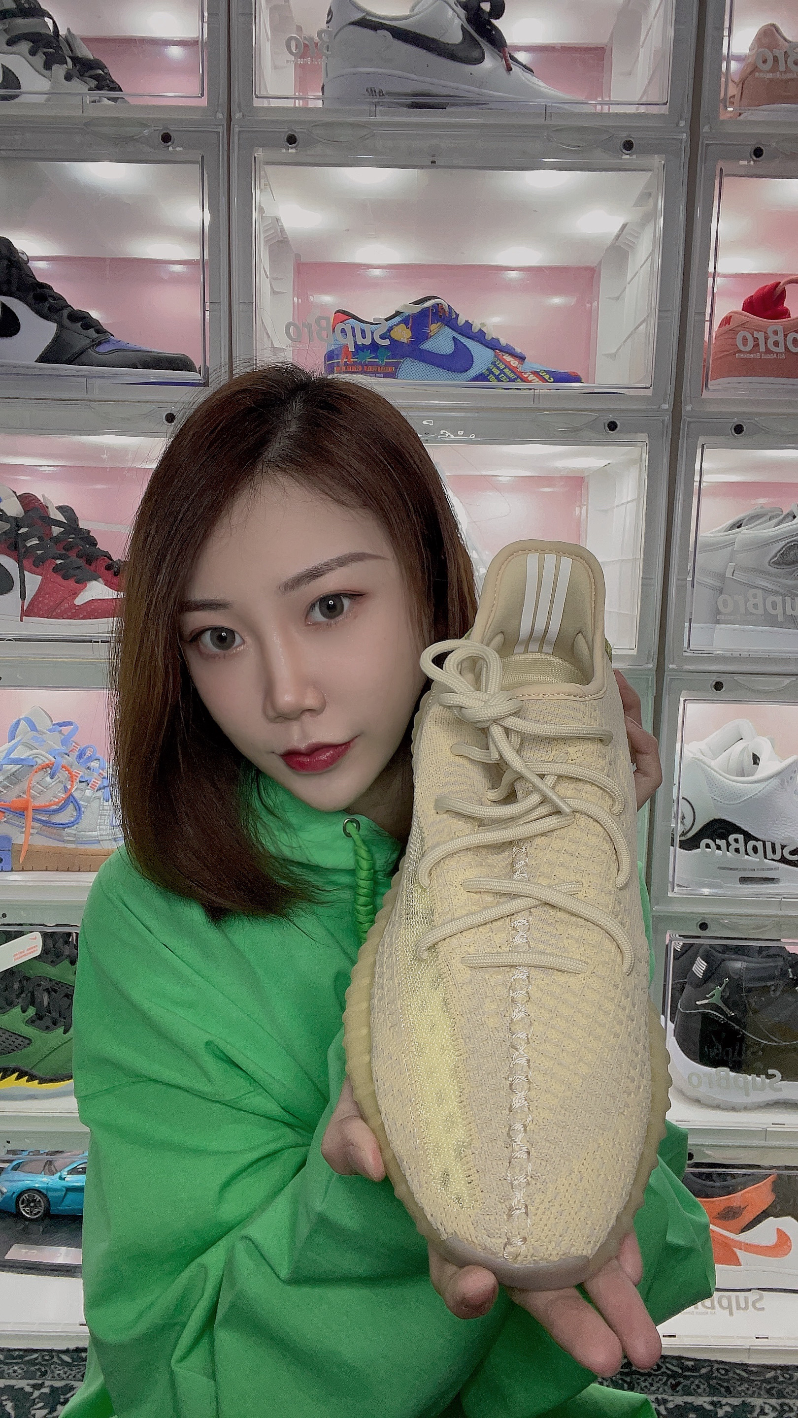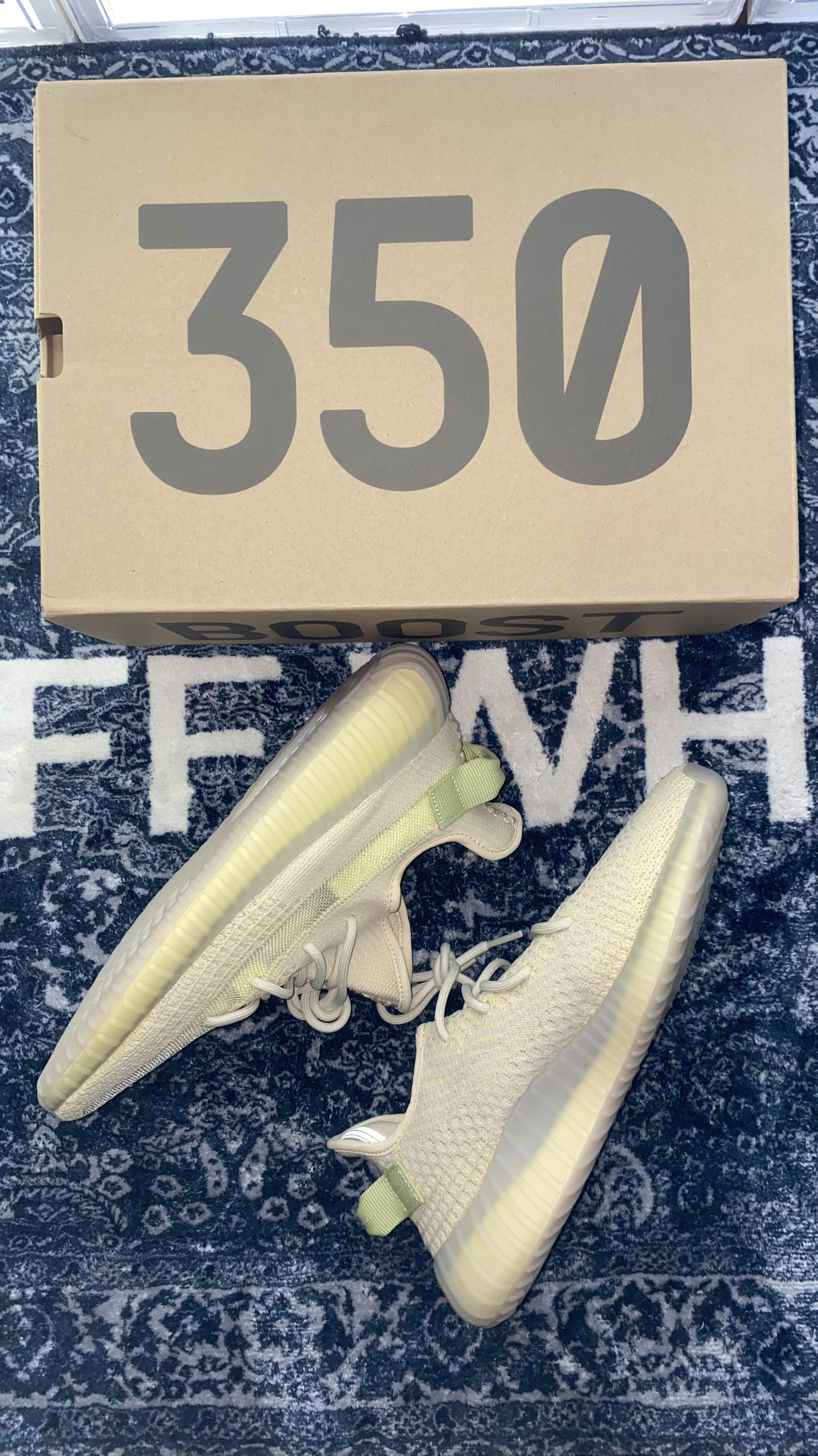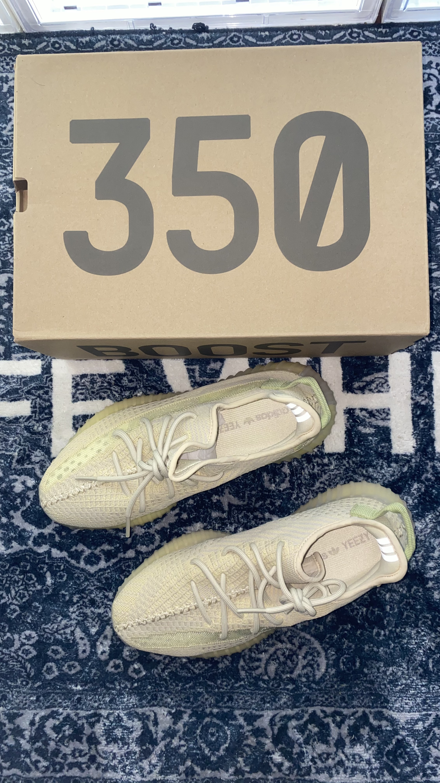 👟:Adidas original yeezy bost 350 V2 亚麻 亚洲限定 🌈:清绿色的侧条配上提鞋环,拿到手就感觉有点小清新,米白色的鞋身,配色在夏天真的很百搭,算是配色比较好看的350之一了,夏天到了,是时候该准备一双椰子给自己了吧,毕竟天气那么热,还很舒服,你确定不准备一双椰子陪你度过这个夏天嘛? 👀:椰子普遍偏小一码,建议比平常AJ鞋码大一码即可,仅供参考!!!!