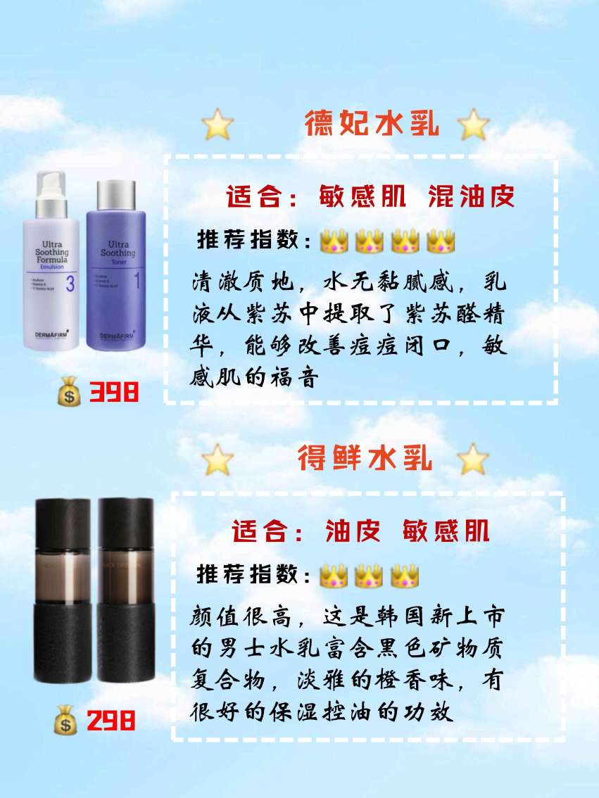 本篇笔记关联了DERMAFIRM/德妃 紫苏护肤套装【水+乳】舒缓补水保湿平衡清爽控油 【旧版】水200ml+乳200ml、Freeplus/芙丽芳丝 修护柔润护肤套装【水+乳】 保湿清爽型 清爽水130ml+清爽乳100ml、【男士专用】Kiehl's/科颜氏 活力醒肤护肤套装 滋润控油补水保湿 爽肤水250ml+乳液75ml+洁面啫喱250ml等商品,为用户提供真实的使用体验和购买参考。
