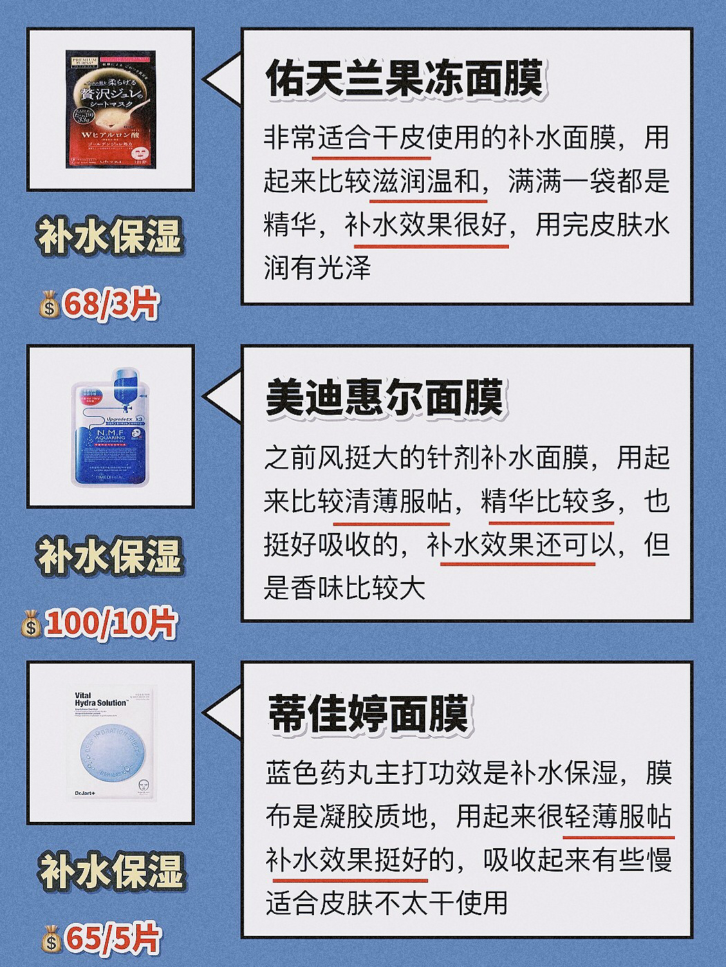 本篇笔记关联了Mediheal/美迪惠尔 N.M.F水库PRO贴片面膜 舒缓紧致滋润肌肤保湿补水水润光泽 水库补水、Voolga/敷尔佳 积雪草修护贴面膜 祛痘提亮肤色保湿补水缓解肌肤敏感舒缓泛红 【经典版】滋润、JM solution 深水炸弹去黄气滋养弹润膜 急救改善暗沉保湿补水水盈 补水修复等商品,为用户提供真实的使用体验和购买参考。
