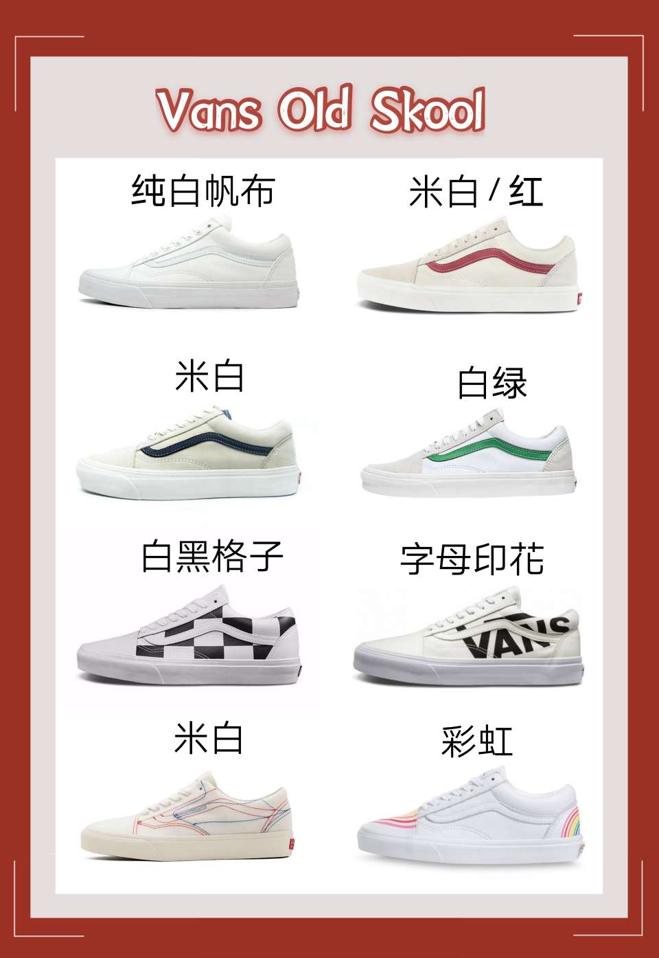 本篇笔记关联了Vans/范斯 Old Skool 滑板鞋 板鞋 轻便防滑复古舒适经典 米白/红色、Vans/范斯 Style 36 滑板鞋 板鞋 舒适轻便防滑耐磨复古百搭帆布拼接防水运动 白色/大红、Vans/范斯 Style 36 滑板鞋 板鞋 舒适轻便防滑耐磨复古百搭帆布拼接防水运动 白绿等商品,为用户提供真实的使用体验和购买参考。