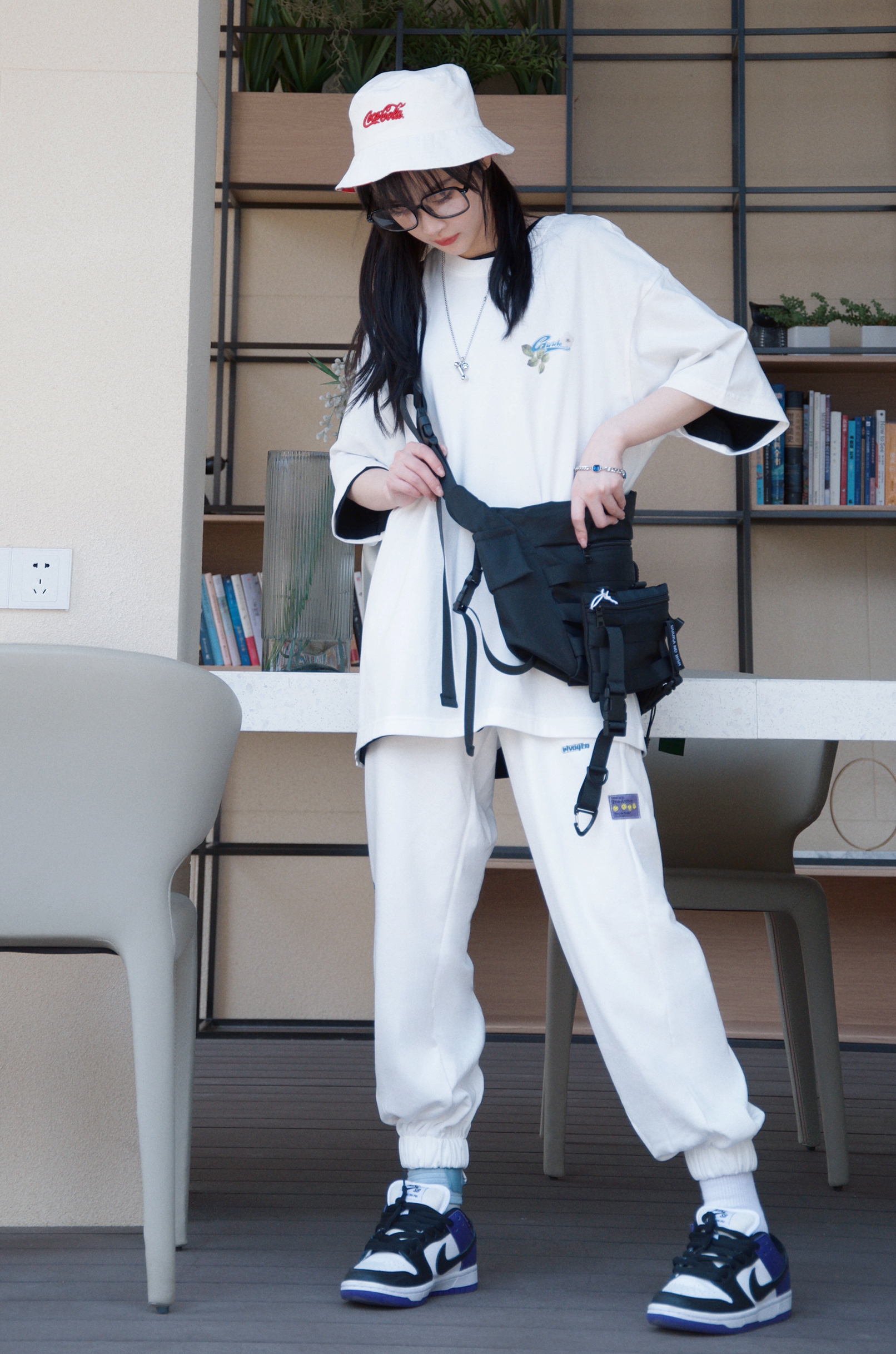 衣服:guuka 裤子:lbpc 帽子:guuka 包包:Guuka 手链:Guuka 项链:Guuka 鞋子:sb dunk 黑紫 整身穿搭的色系非常简单,白色是永远不会出错的颜色。白色的短袖,前面是品牌logo和小花花的结合,背后的英文结合花的设计显得非常小清新。白色的束脚裤,裤子不是纯白的还带有英文的印花,非常的百搭。戴上可口可乐的渔夫帽和机能风的包包,妥妥的街头风女孩还带着一丝丝小清新。这...
