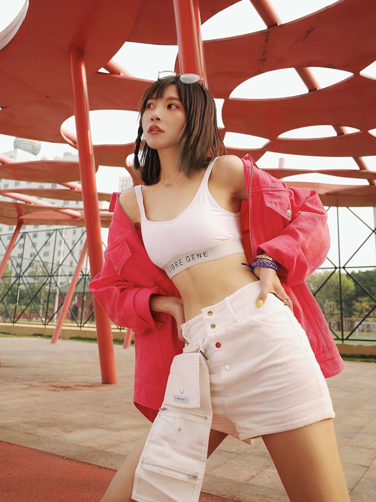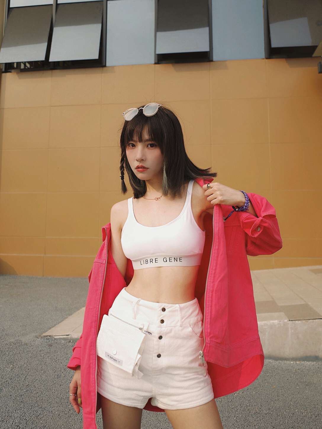 耶!可爱的小狗狗能有什么坏心思呢!!!手上的小宝贝是只一岁的男孩子叫咪咪,超级无敌乖巧,会配合拍照!!! 春天想来点多彩颜色耶,我会选择用白色运动内衣打底再套个粉色外套,这样子高饱和度的色彩就不会很违和了哦。 春夏季我会很喜欢穿偏运动款的内衣,因为单穿或者作为内搭都兼具时尚与舒适。 LIBRE GENE的字母款背心内衣简约又好穿,纯棉无钢圈,也不会走光。套个外套出街,A到没朋友了! 靴子:l...