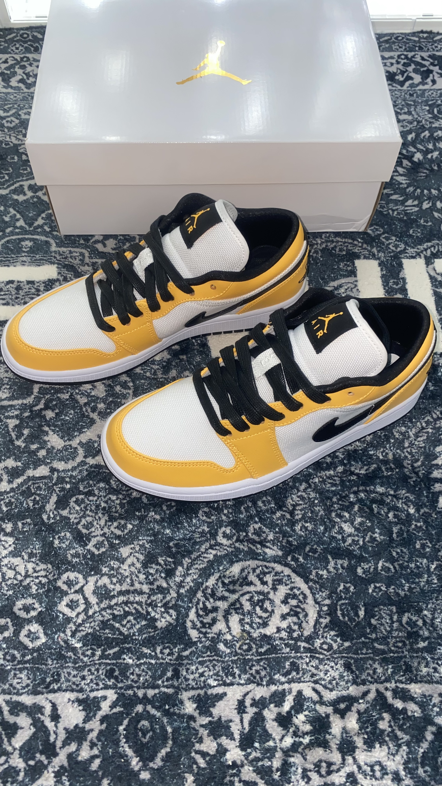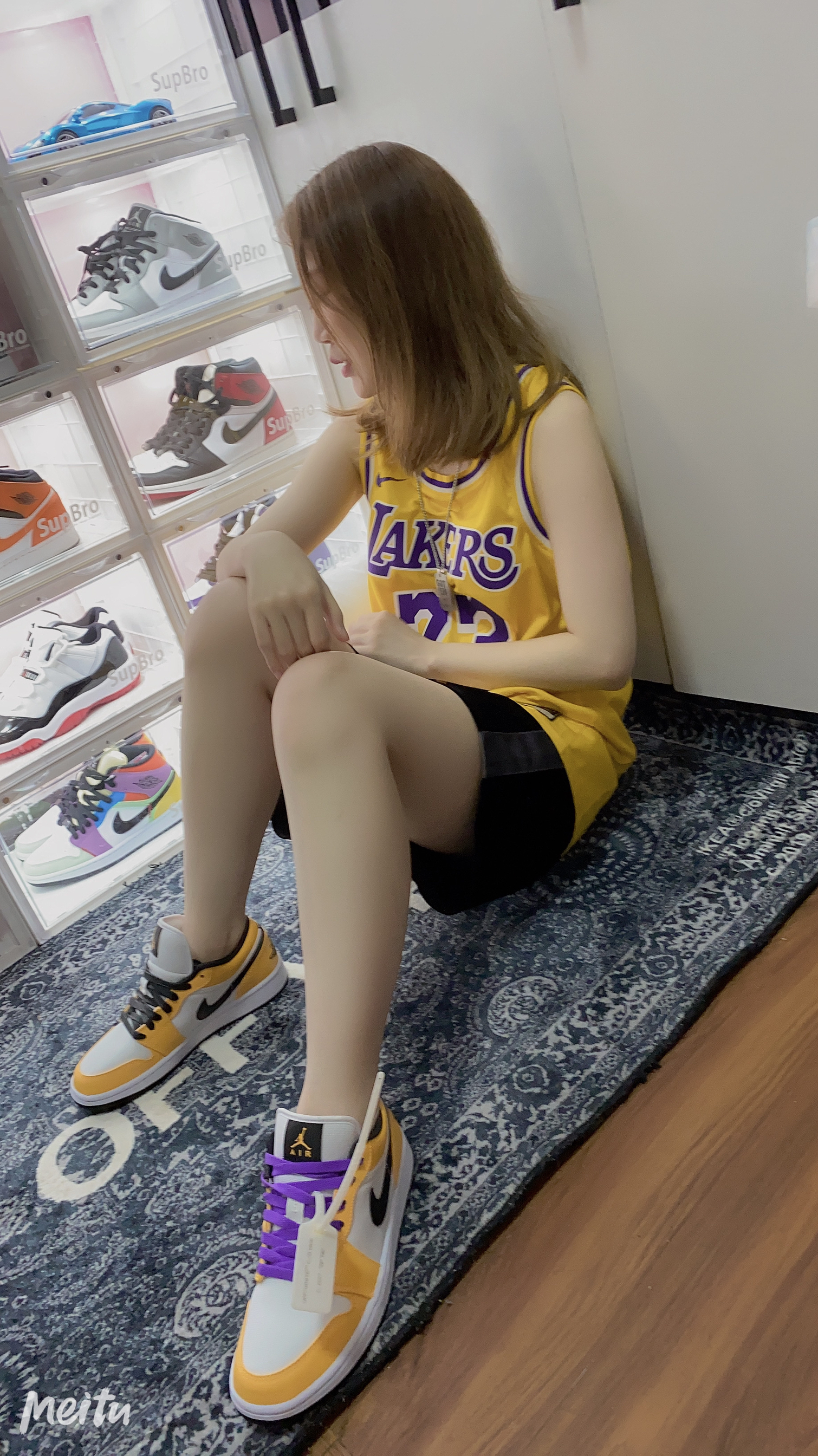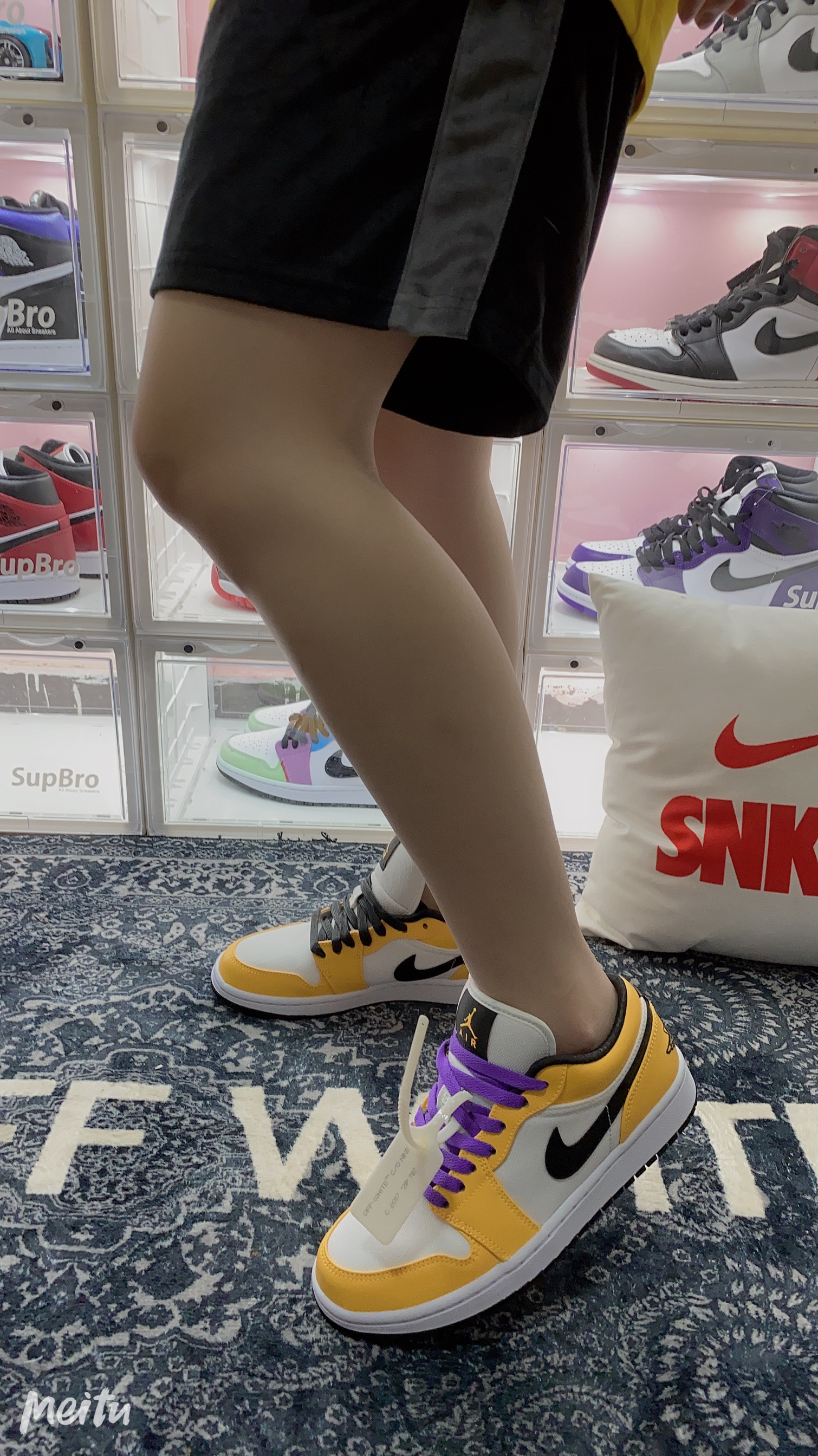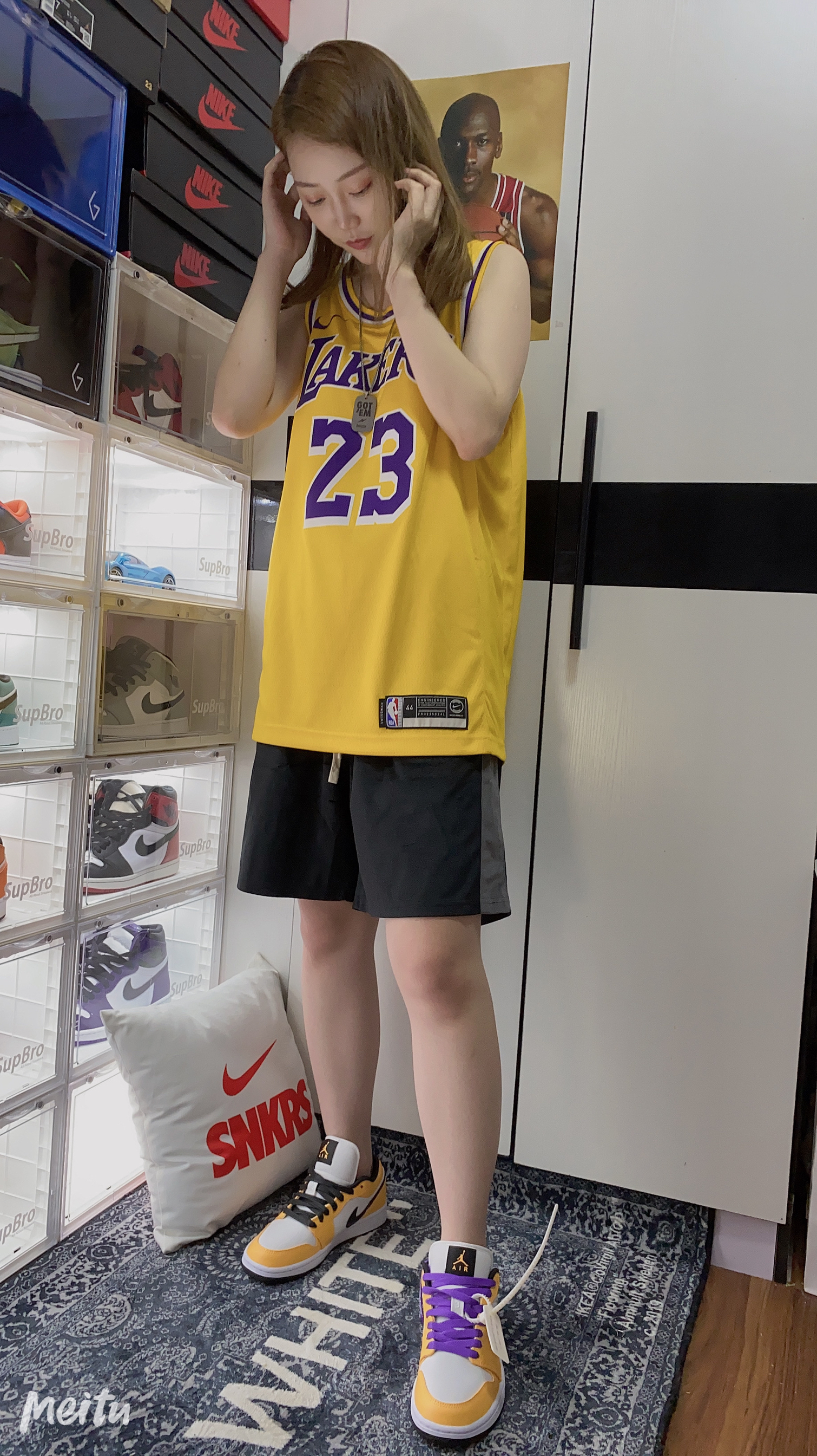 👟:Air Jordan 1 Low 2020版 白橙 👚:詹姆斯湖人球衣球迷版 🌈:鞋身整体以黄白黑三色为主,黄色部分为合成革,白色部分为织物,内衬、鞋带、Swoosh、外底为黑色,被人亲切的称为湖人配色,算是颜值比较高的一款aj1 Low,还比较百搭,价格没有溢价太多,是你一个不错的选择; 🤓:不偏码,正常购买aj尺码即可,脚胖建议大半码。 🥰:穿上这一身,我就是这个夏...