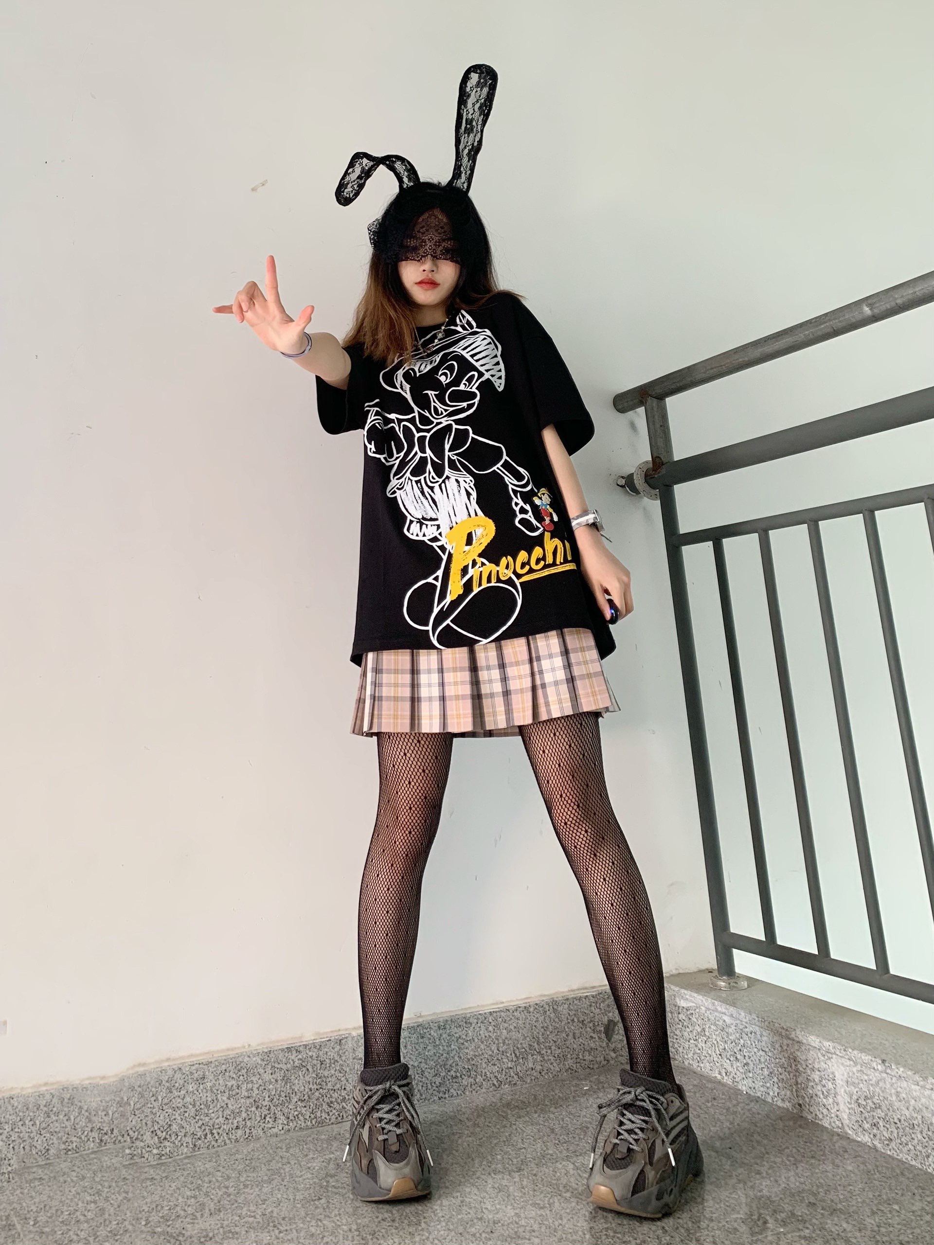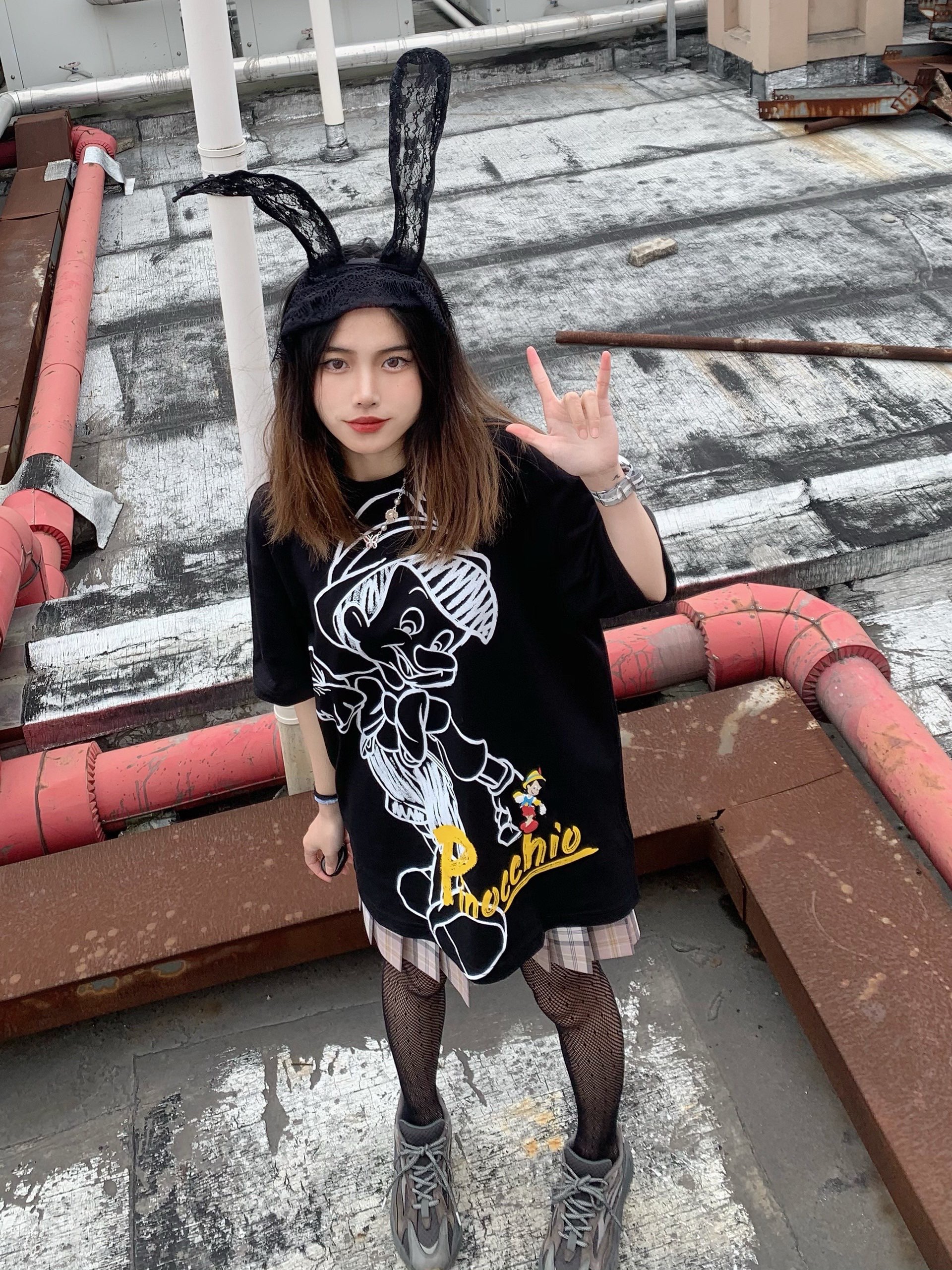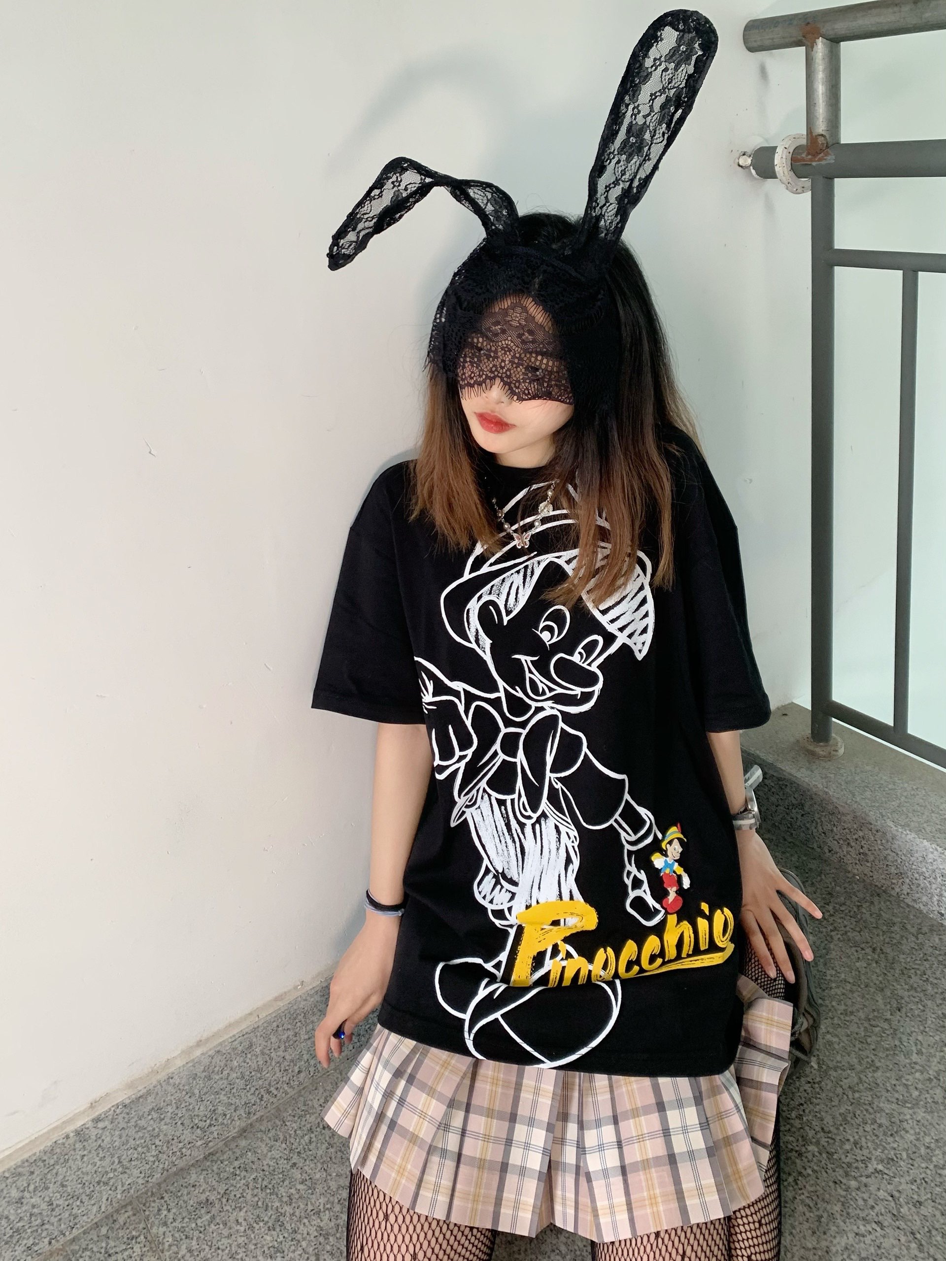 啊啊啊我好喜欢麻衣学姐的兔女郎装扮! 当麻衣学姐遇到匹诺曹🤥,这件Material girl的匹诺曹短袖太绝了,图案很细节,一个白色的线条匹诺曹图案,右下角有一个黄色的字母和硅胶材质的匹诺曹图案,太喜欢啦,版型也很宽松~ 👔:Material girl@Material_girl @MG物质女孩 👗:东京岁时记JK