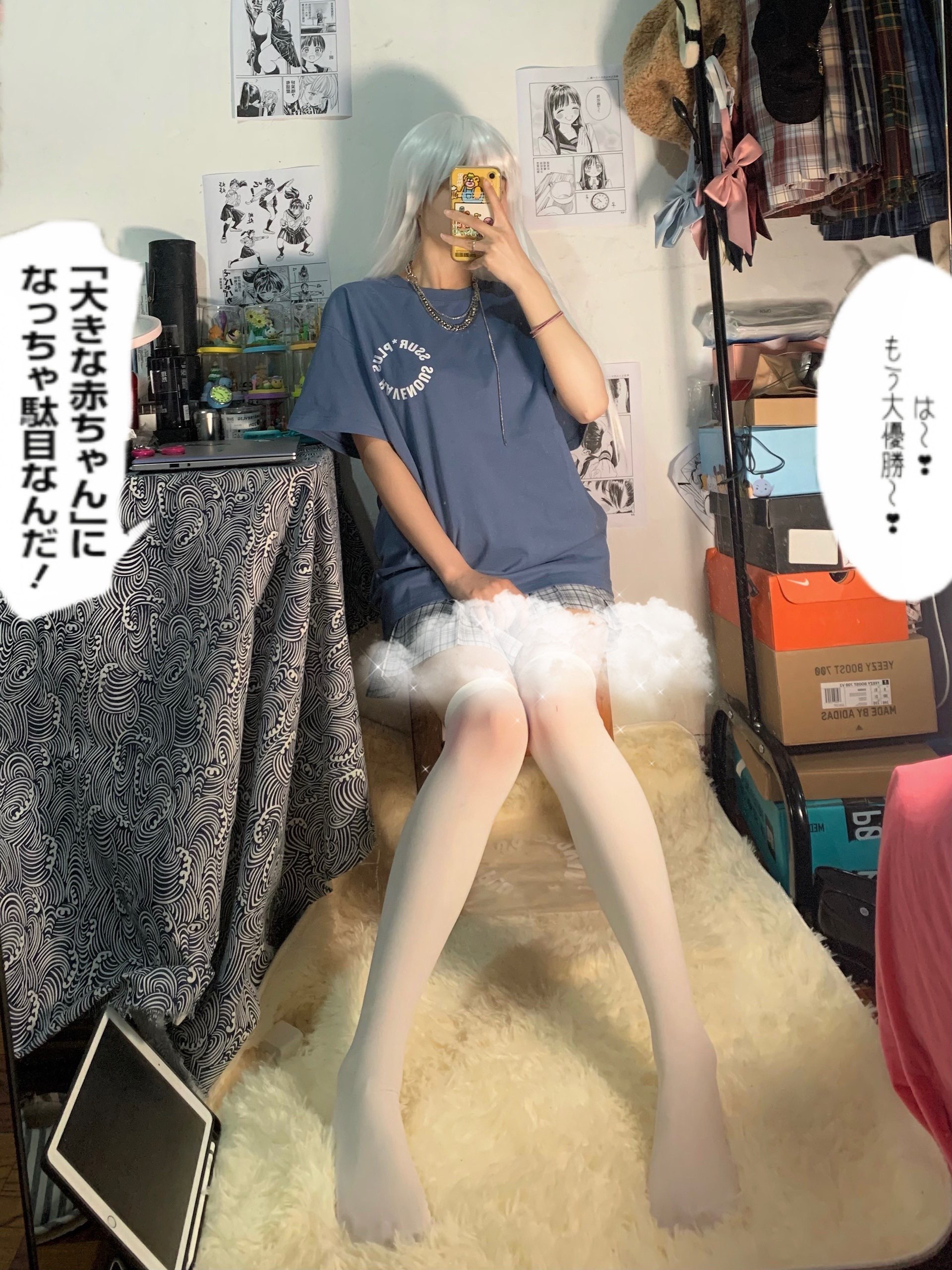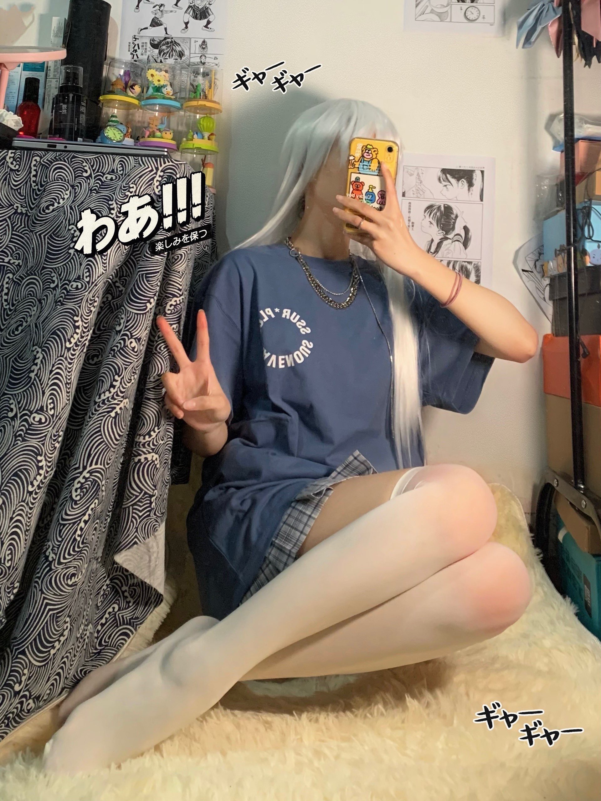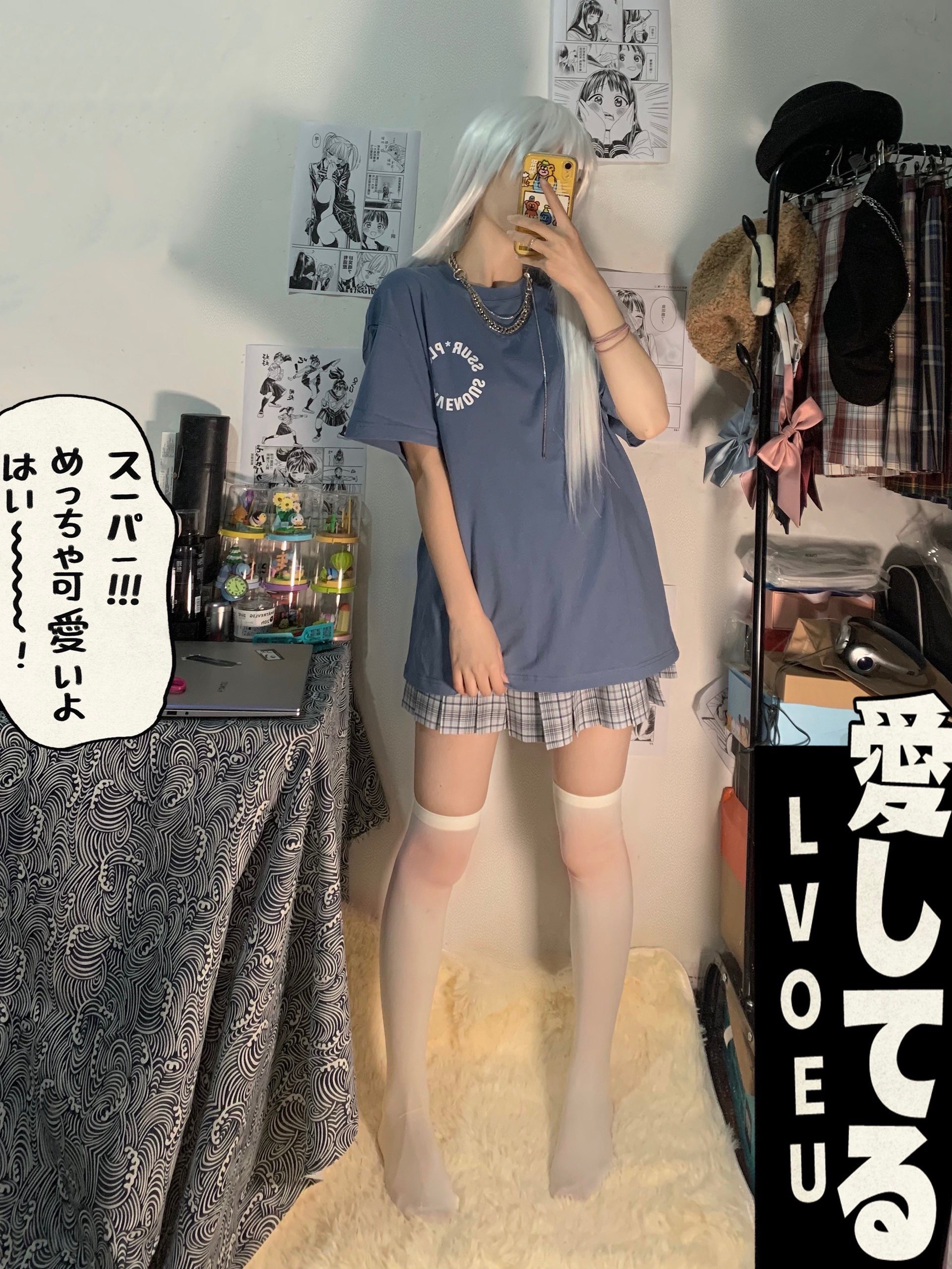 没想到,背影也这么好看!!我自己都好喜欢哈哈 蓝白配色太绝啦!听说很早入坑的姐妹们,都喜欢穿过膝袜,是由于动漫里面人物都这样的。动漫的人物穿搭是二次元的,三次元妹子也可以学习! 搭配了#RAVENOUS 的雏菊款卫衣我太喜欢这种温柔的蓝色了。显白又嫩哈哈哈。面料非常的舒服! 👔:ravenous 👗:沙青