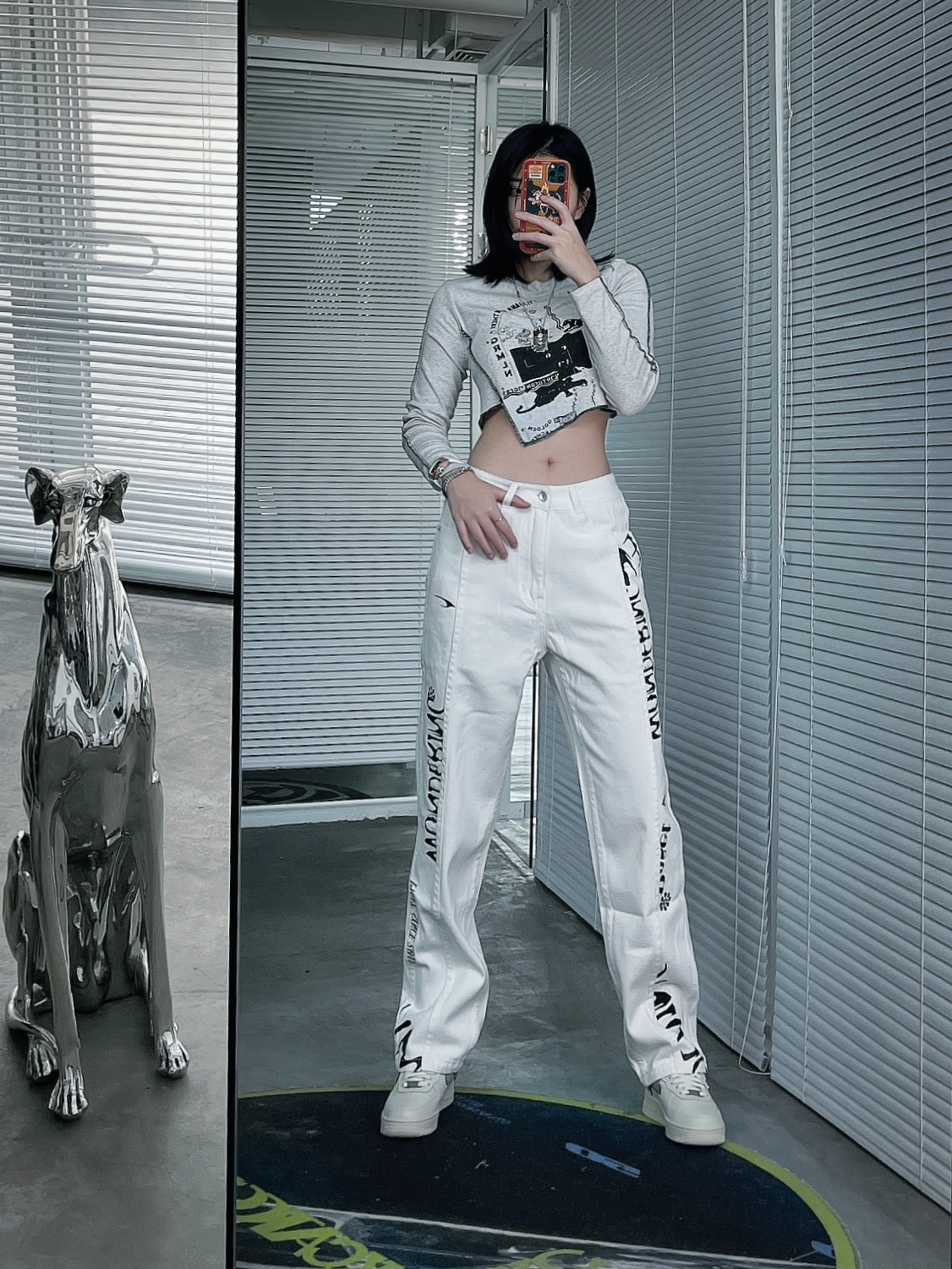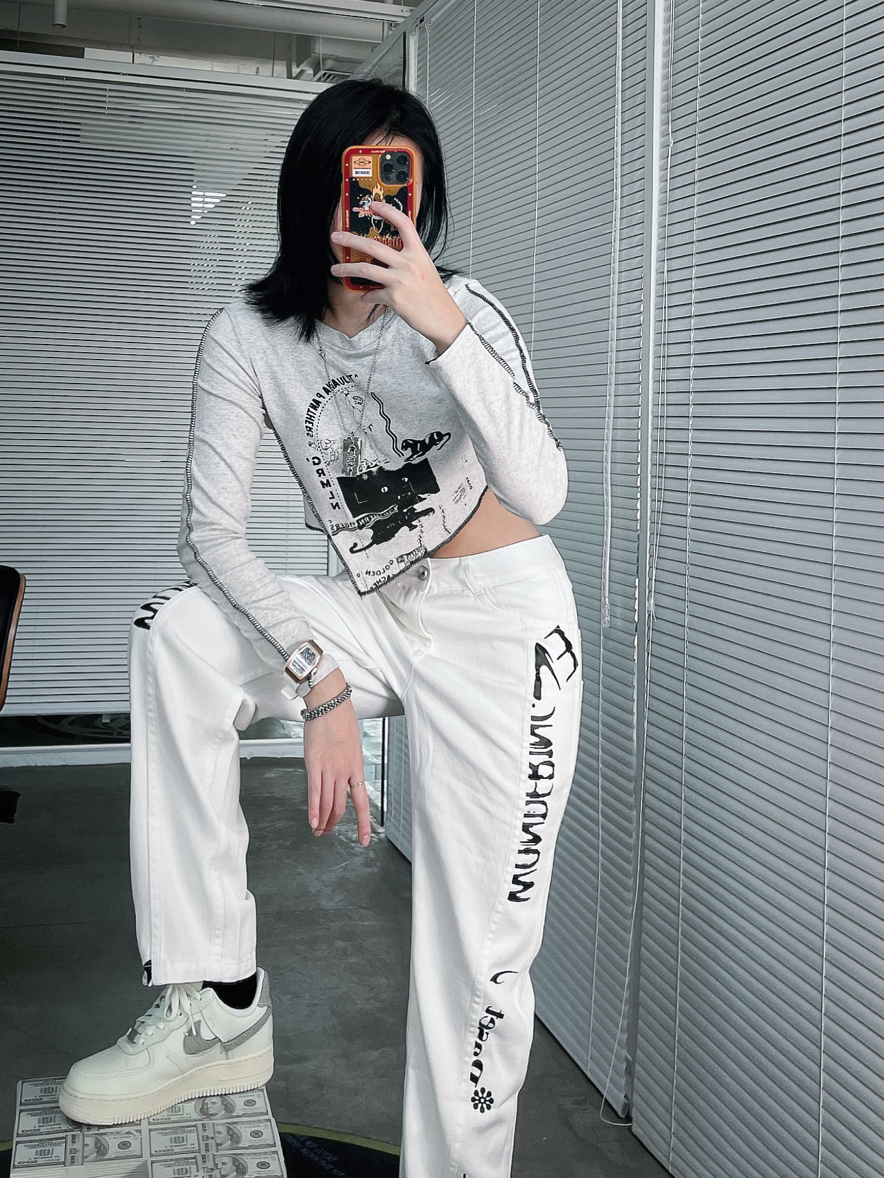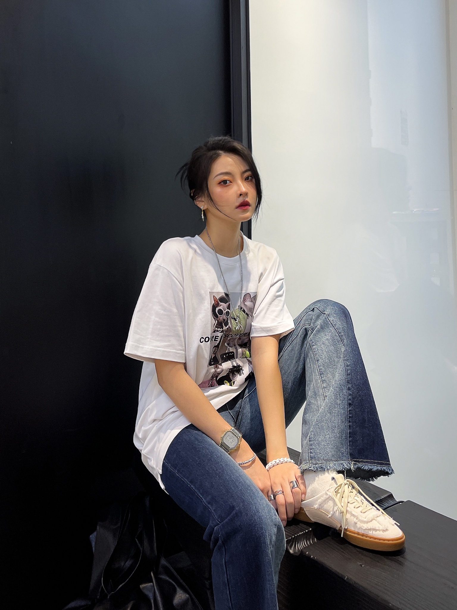 牛仔裤: PASET 项链: SMFK 手链: PLASTIC BRAIN 手表: BONEST GATTI/布加迪 作为一个牛仔裤爱好者! 黑的,浅蓝的,深蓝的,灰的,长的,阔腿的,破洞的,水洗的,微喇的,刺绣的,满印的,小脚的都安排上了。最近又新入了一条纯白的牛仔裤!我可太喜欢了!有种非常高级的感觉。 产品细节👀 裤子的印花感觉也是直喷的,不会有脱皮,掉色的情况。涂鸦的印花街头感十足。不对...