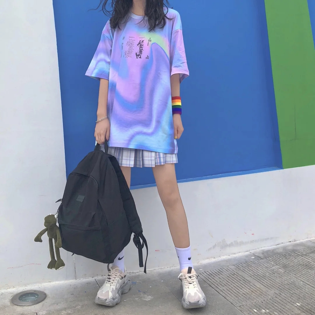 这个极光T太酷了,朋克幻紫的国潮T恤也太潮了,矮个子也可以hold住!