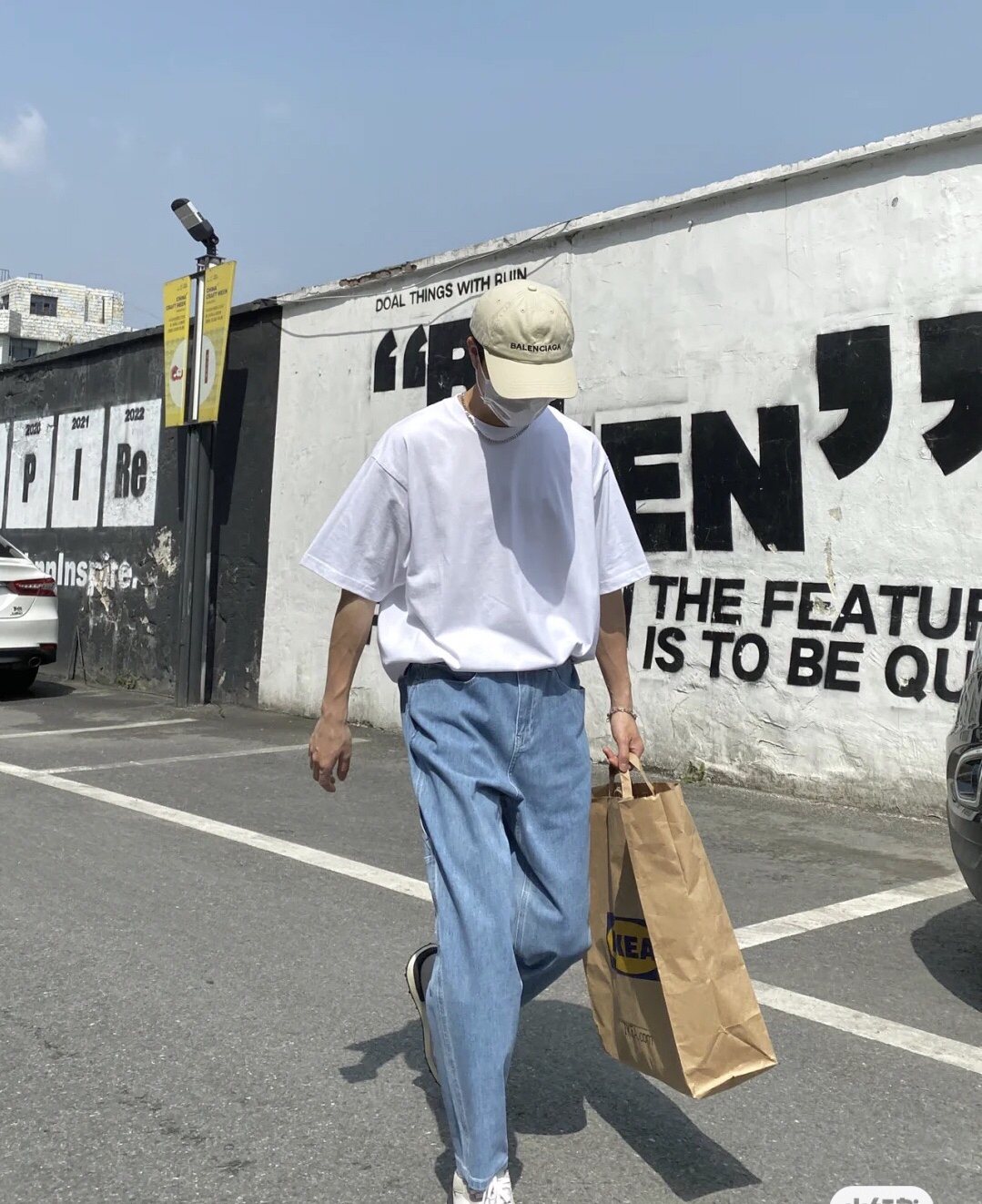 纯白T恤和简单的牛仔裤太有那味了。纯白T恤几乎百搭,下身搭配牛仔裤看起来简单干净。整体就是清新干净的韩国欧巴风。