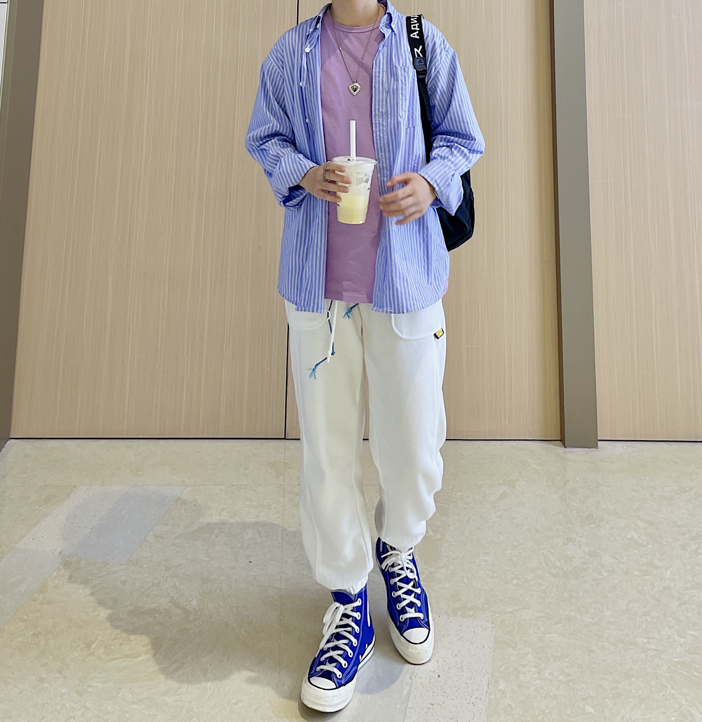 ✨今日穿搭 香芋紫T恤 蓝色条纹衬衫 白色卫裤 蓝色帆布鞋 ———————————————— ✨蓝白紫的颜色搭配 绝对是春日出游穿搭的首选 真的超级可 天气越来越好了 除了黑白灰 亮色系的撞色搭配 真的会让人看着心情都好 ———————————————— ✨每日穿搭 OOTD 春日出游穿搭 香芋紫T恤穿搭 蓝色条纹衬衫穿搭 男生活力穿搭 白色卫裤穿搭 蓝色帆布鞋搭配 春日男友风穿搭 少年感穿...