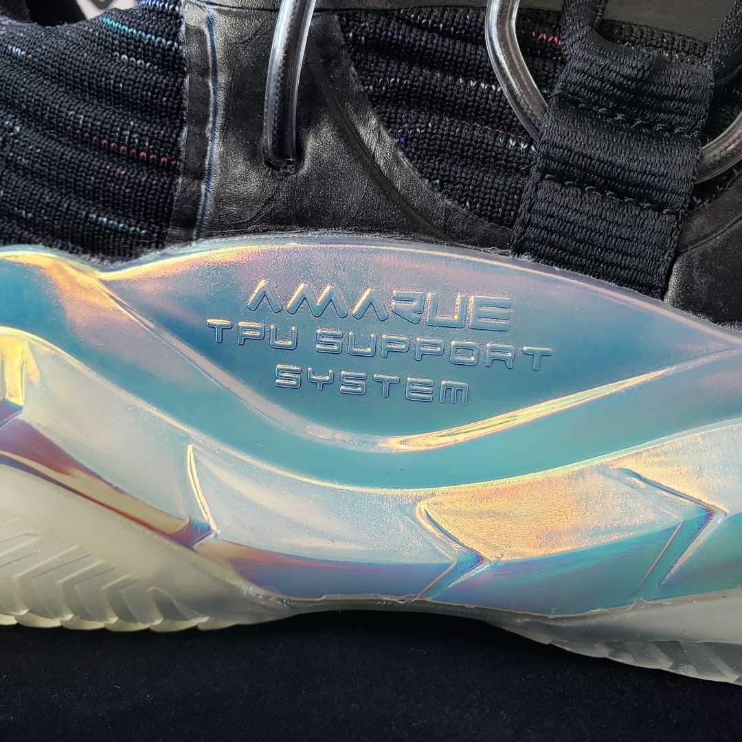 👟球鞋名称:阿玛鲁 女娲1代 🔍设计亮点:最早曝光的设计图用的是鞋身的血管系统,但是无奈生产线设备问题,被李宁闪击6先做出来,可以说很无奈。 ⛹️实战感受(缓震/包裹/抓地力):全掌peba发泡挺软弹,比较像boost,耐用性比较好,密度比较大,重量也比较大。 📃总结评价:算是精品小牌子里面用料最多的,大面积异形碳板,鞋子599还要什么自行车?