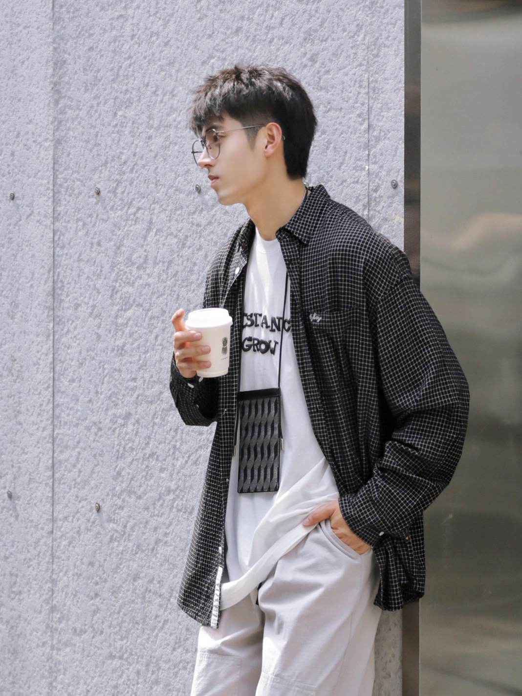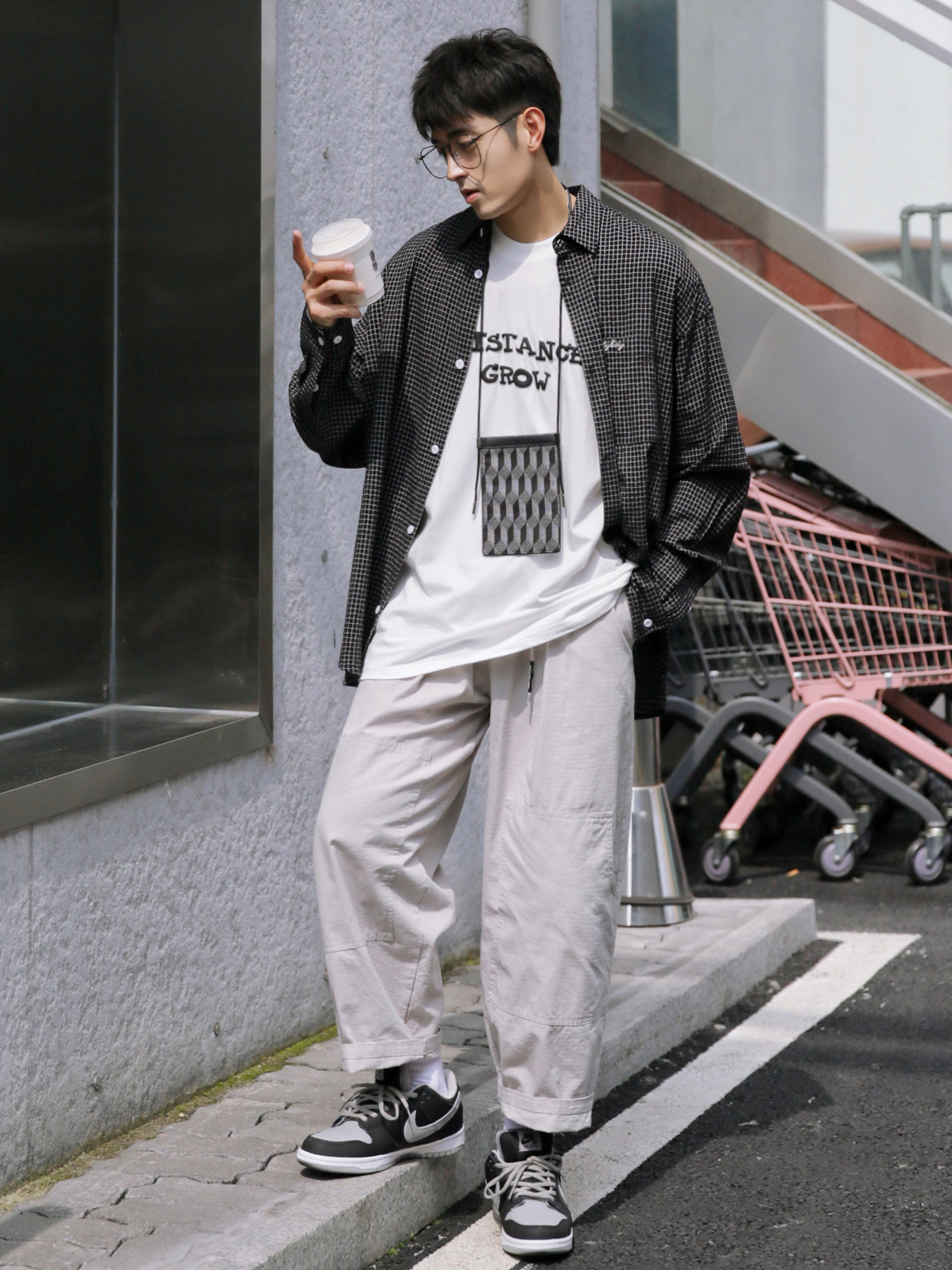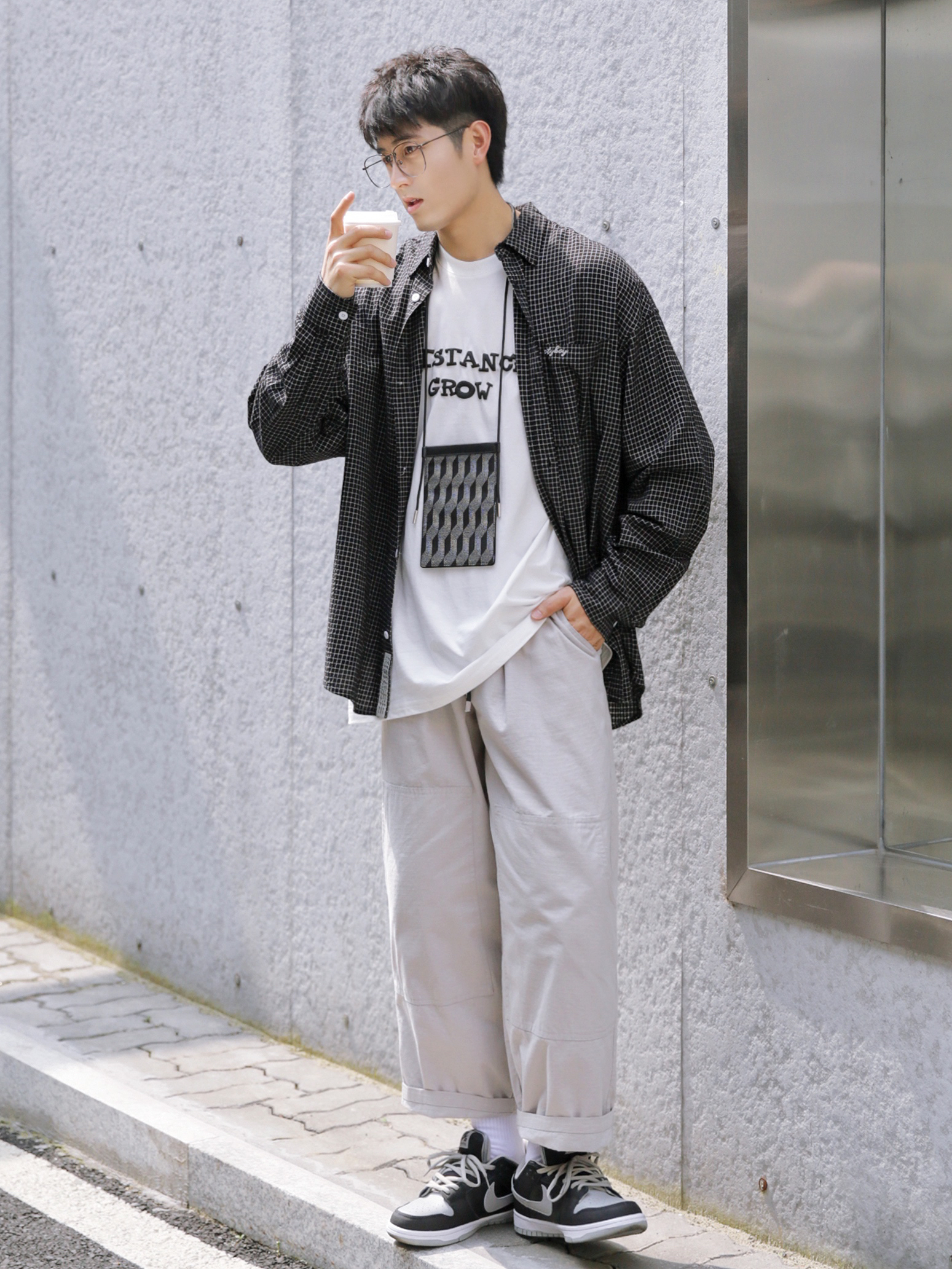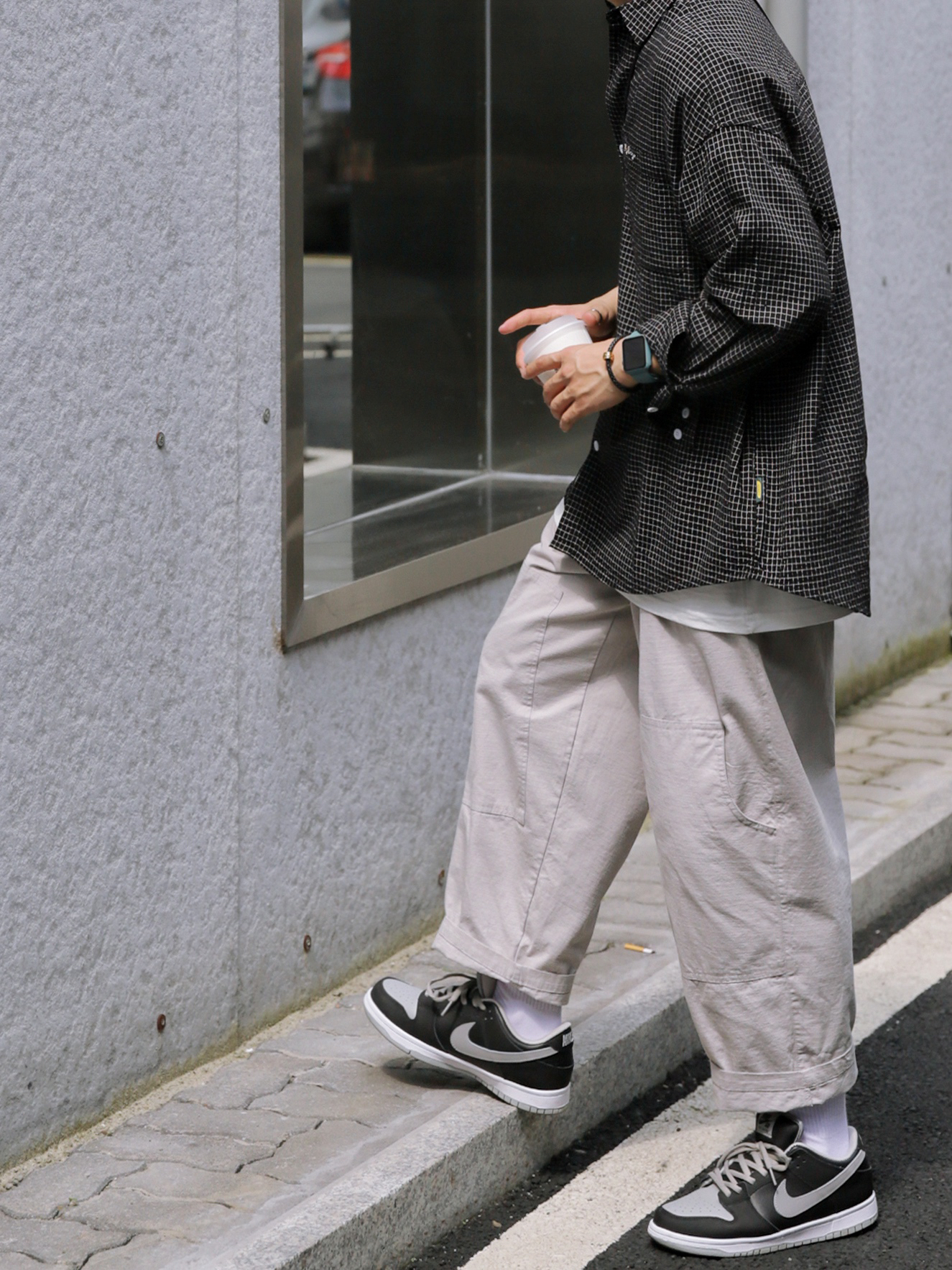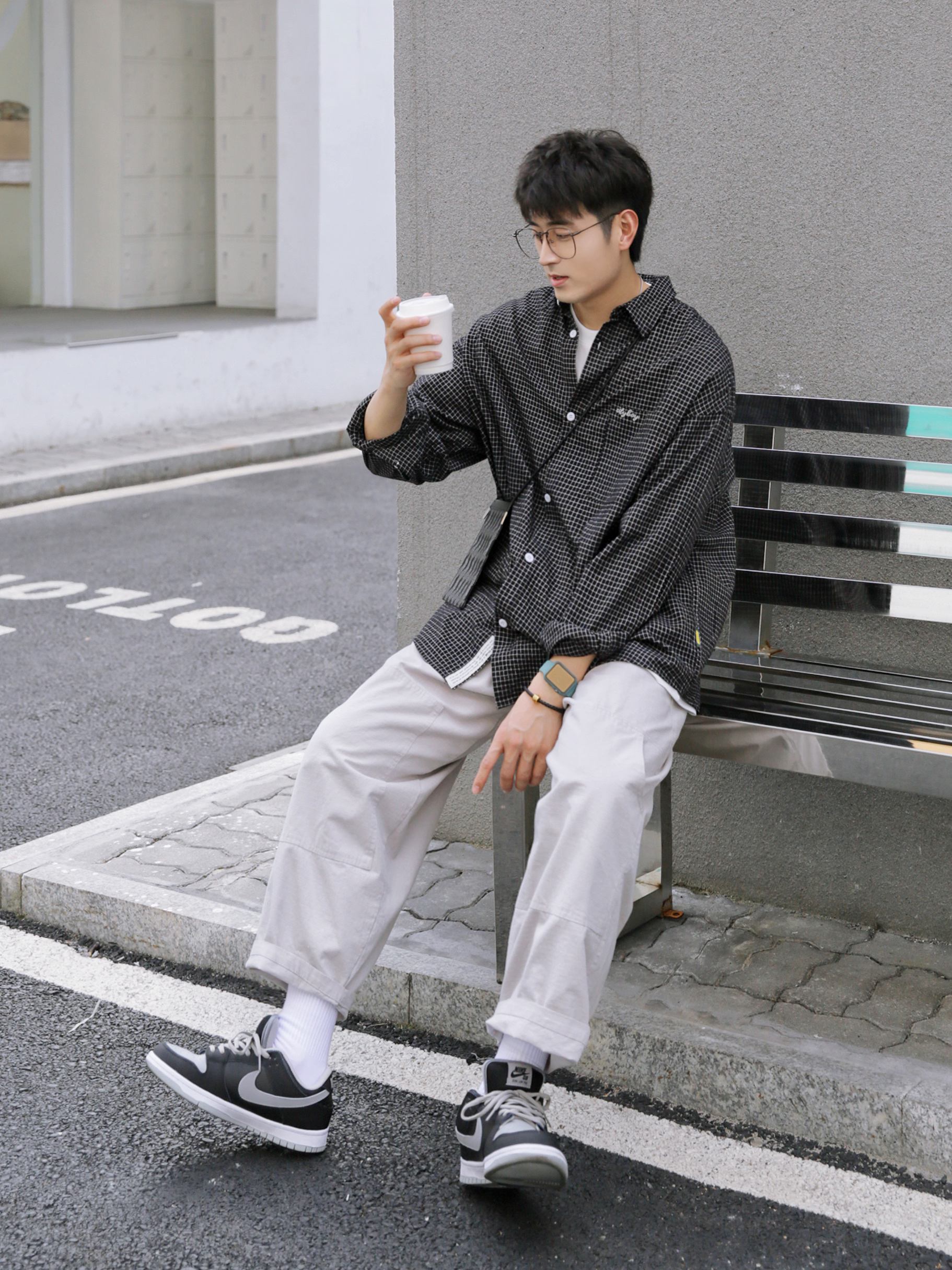 🔹黑色类的单品,自己穿得比较少。但是,今天这件小格子黑衬衫,真的还蛮喜欢的,远看就是一件简简单单的黑衬衫,近看是细腻的小格子纹理,质感满满。搭配一条浅色宽松工装裤,就嗨蛮适合男生春季穿搭的。 — ⚠️本人身高|体重:176CM|66KG(🉑️参考) — 👔·黑色小格子衬衫—PD大人; 👖·金属白工装九分裤—PD大人;(这几天,天天穿这条裤子; 🧦·白袜—LARGEE; 👟·影子灰DUNK;