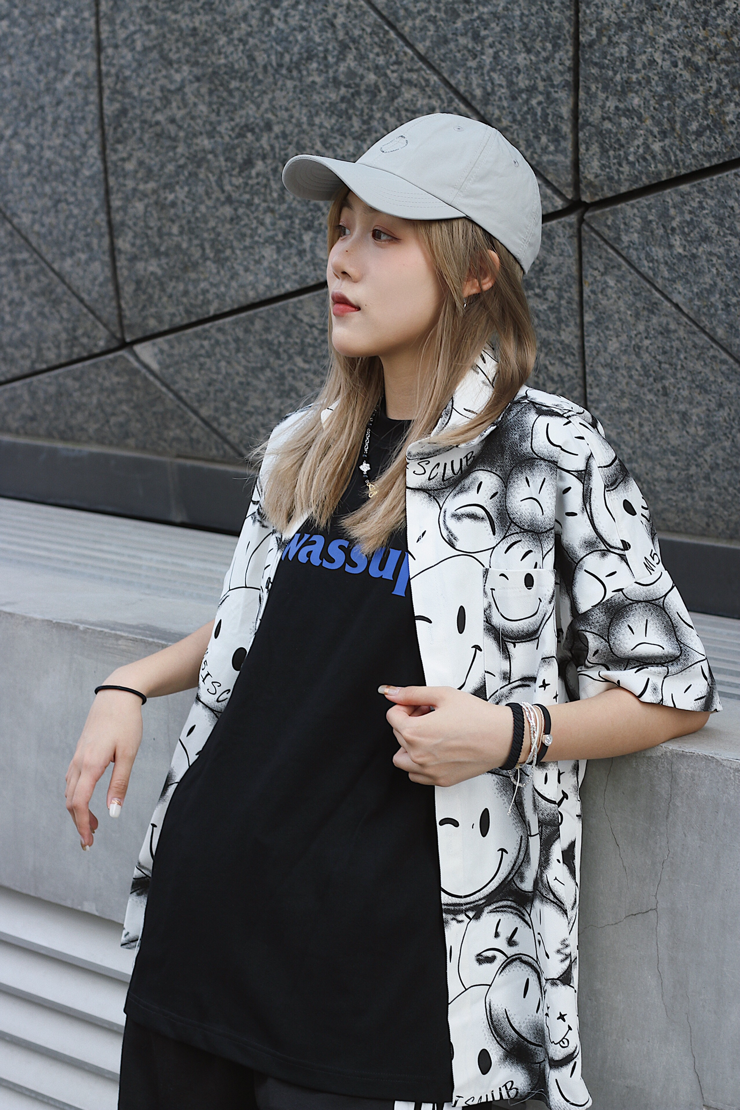 🌪衣服 wassup@WASSUP俱乐部 黑色的衣服中间的亮色字母十分别致 作为内搭或者单穿都十分不错 个人很喜欢很百搭呢 🌪️外套 m5is 笑脸的衬衫外套也太好看了吧 夏天必备的一件搭配神器呀 黑白色无论怎么穿都很好看呢!爱了爱了~ 👖裤子 m5is 黑白色系的条纹裤 显瘦又百搭 夏天必备的休闲运动裤 个人太喜欢了! 👟鞋子 亚瑟士 整套穿搭很休闲百搭 个人很喜欢这舒服的穿搭 好看又休闲...