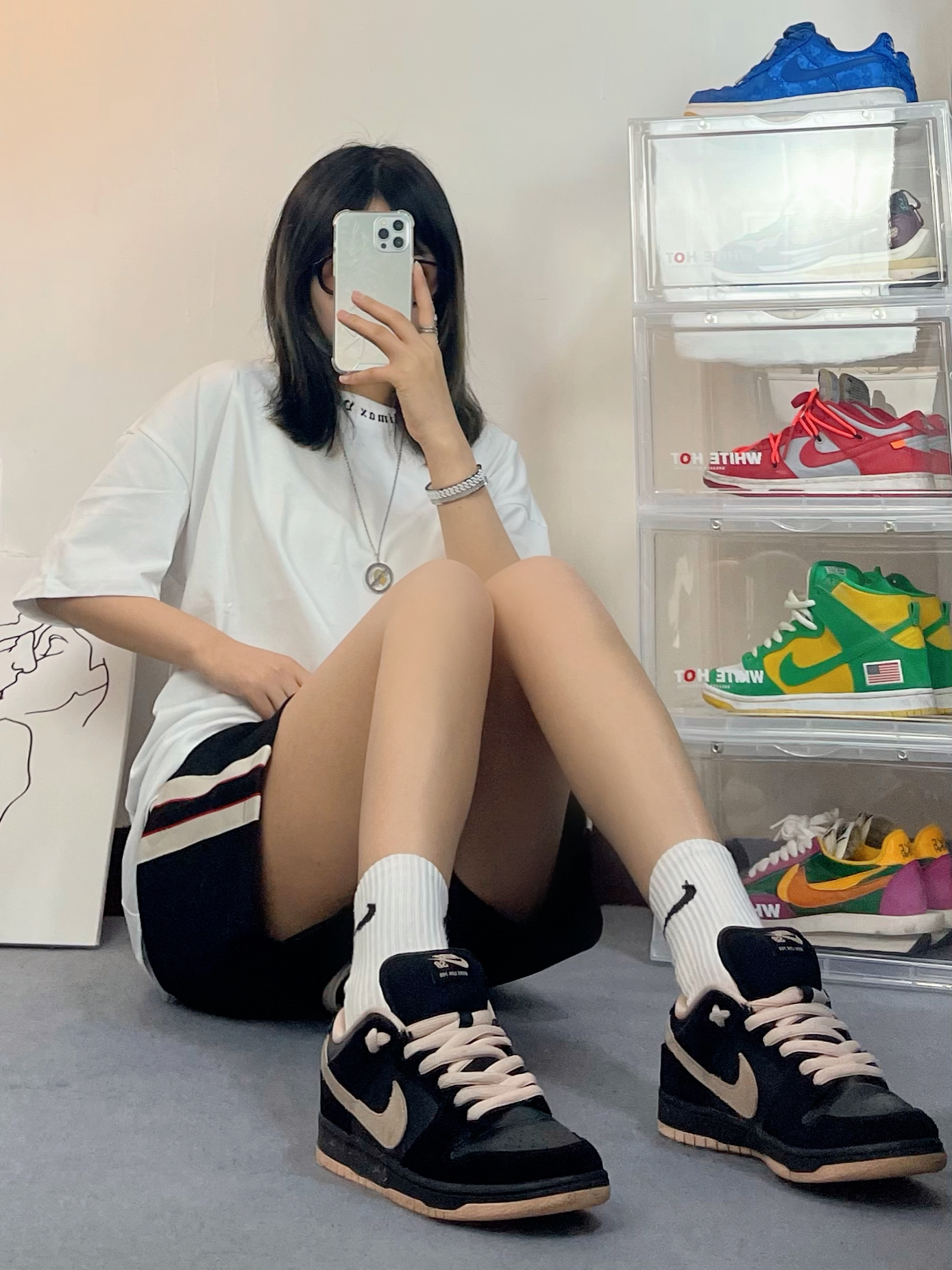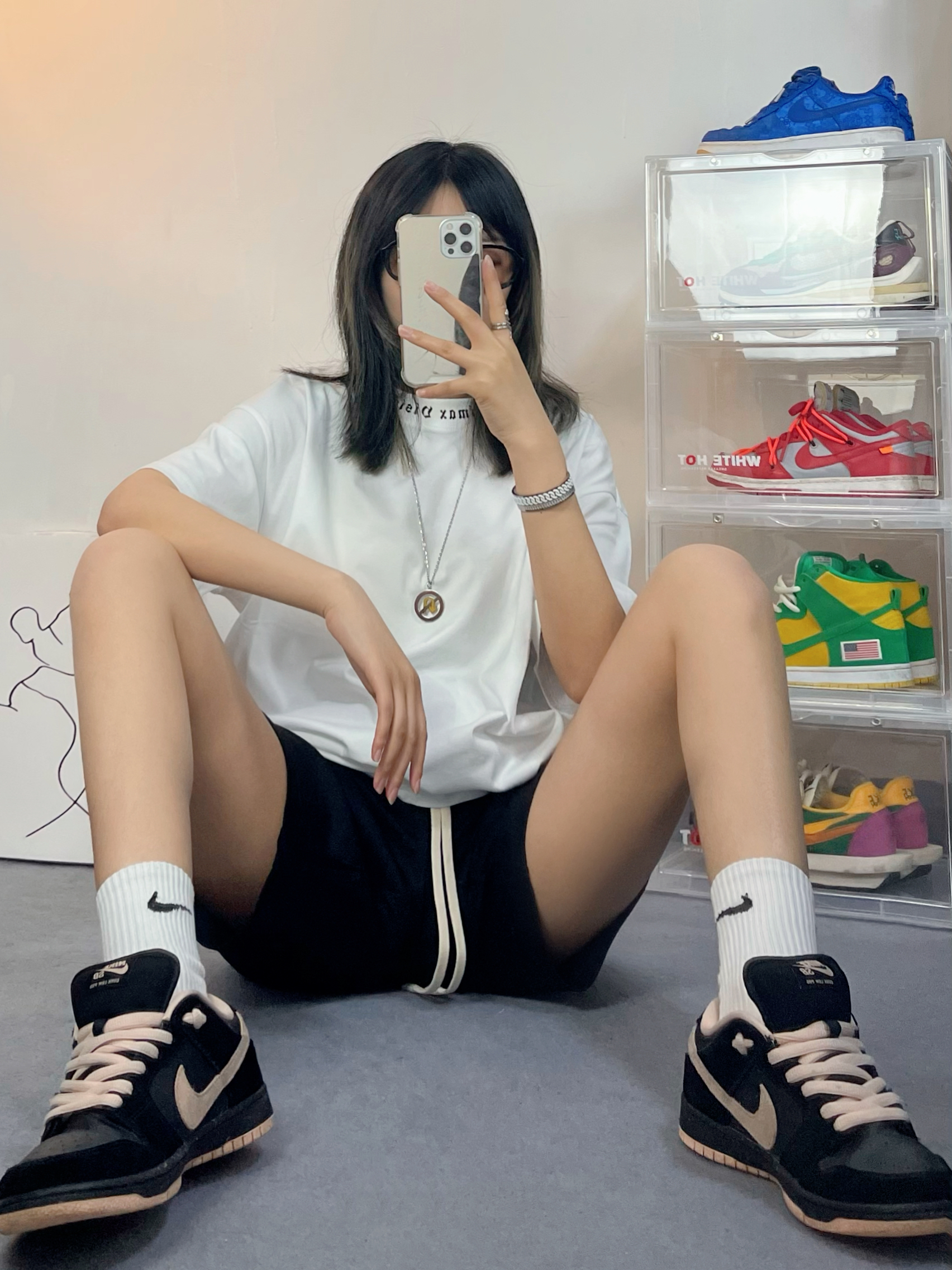 大家都是野马 光靠喜欢是栓不住的 👕: CLIMAX VISION 🩳: CLIMAX VISION ⛓️: theRubz 👟: Nike 这件t领口是哥特风字母印花!!太有感觉了!基础配色又很百搭,背后的大印花高街感十足,真的不输那些大牌.短裤是王源同款hh,面料很舒服,夏天穿绝了