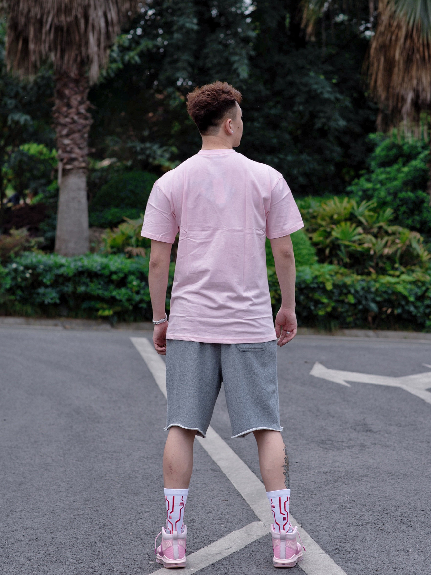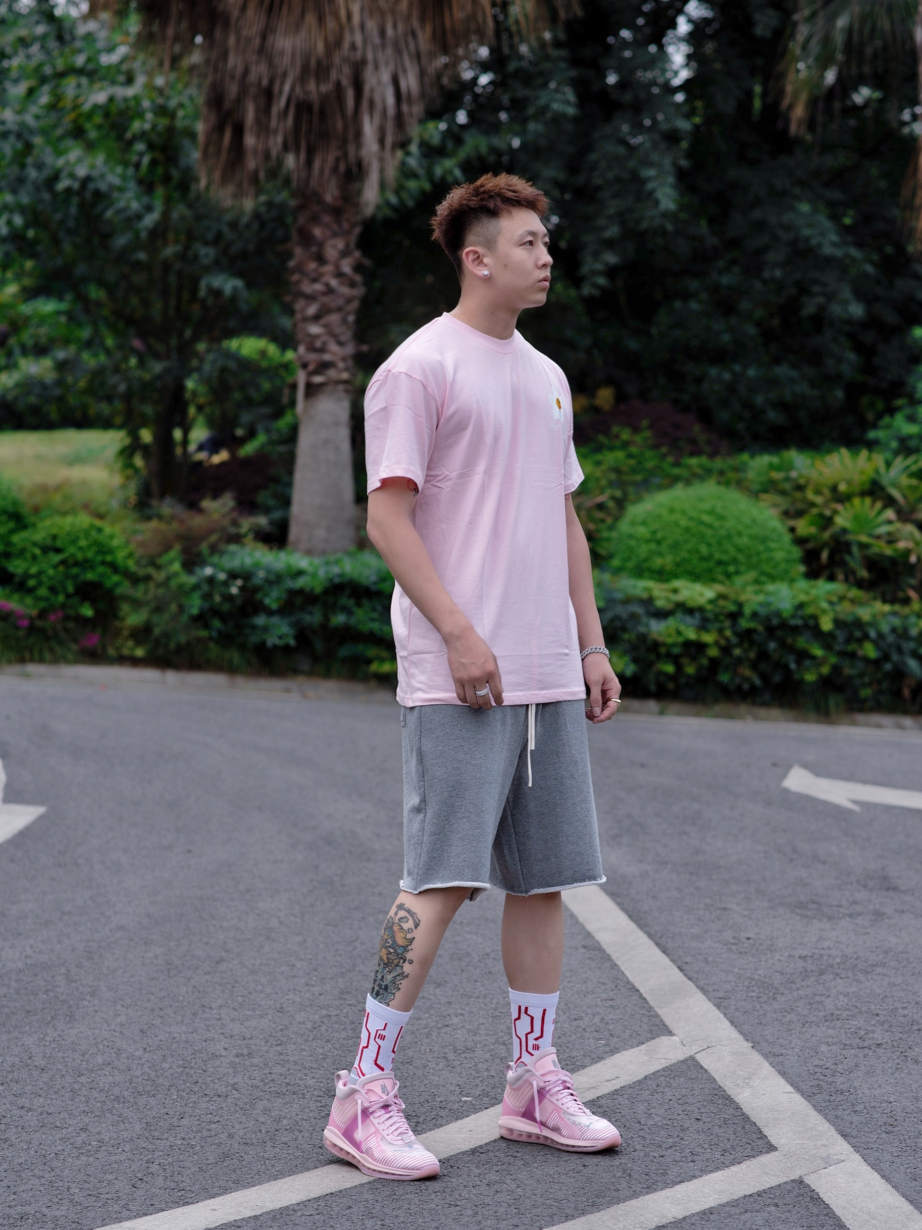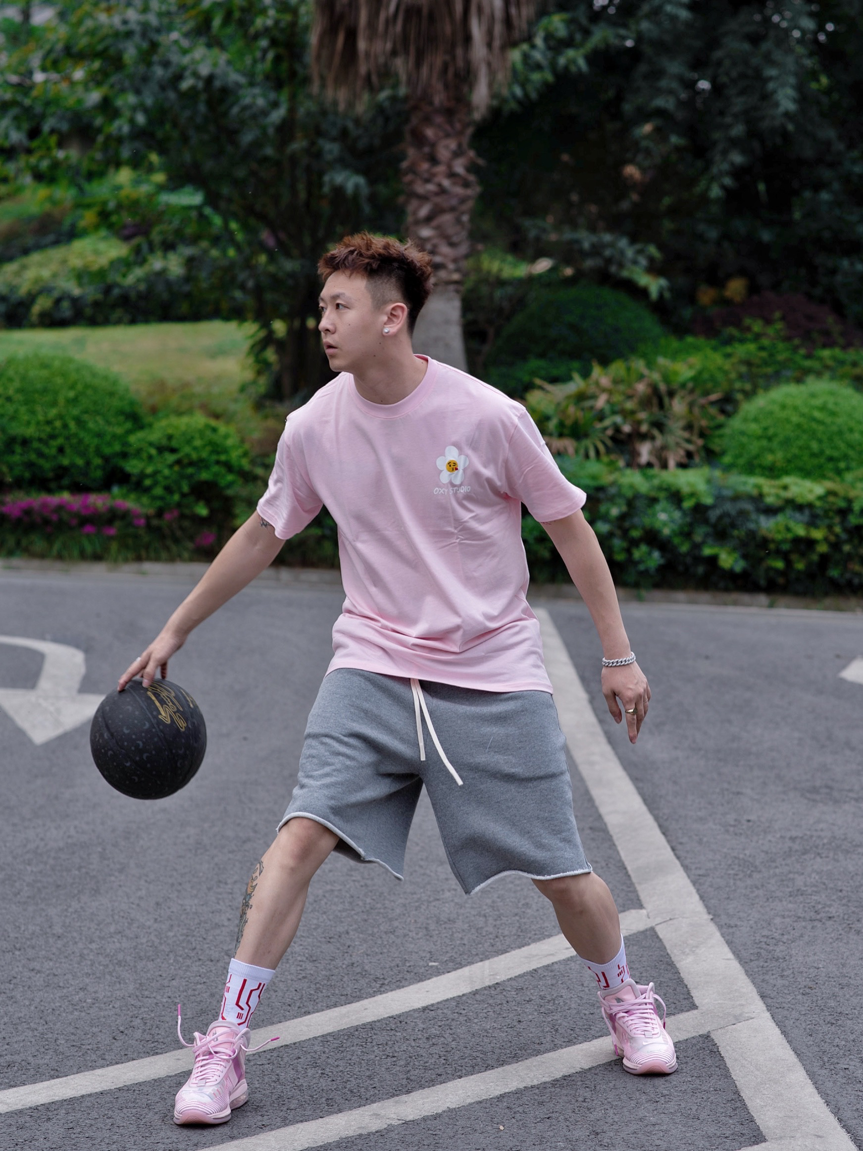 今天的上身很清秀!有没有! 粉色真的是猛男配色无敌了。 👕:ORIGINAL X YOUTH 👖: CLIMAX VISION 👟:詹姆斯icon 篮球: T-Mac 纯粉色的短袖上身显得非常年轻,版型也不错,胸口的小印花很俏皮好吧。 裤子是最近非常喜欢的品牌,climax vision版型非常宽松,裤子比较高级。卷毛边的设计也显得层次感很丰富。