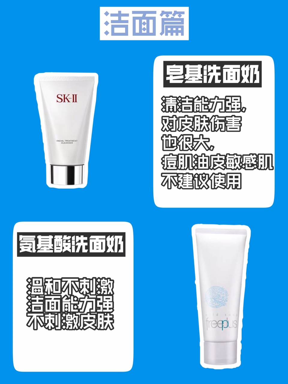 🔹皂基类洗面奶:清洁能力强,对皮肤伤害也很大,痘肌油皮敏感肌不建议使用,注意油皮的男孩子,一天洗脸不要超过2次,会越洗越油的。
