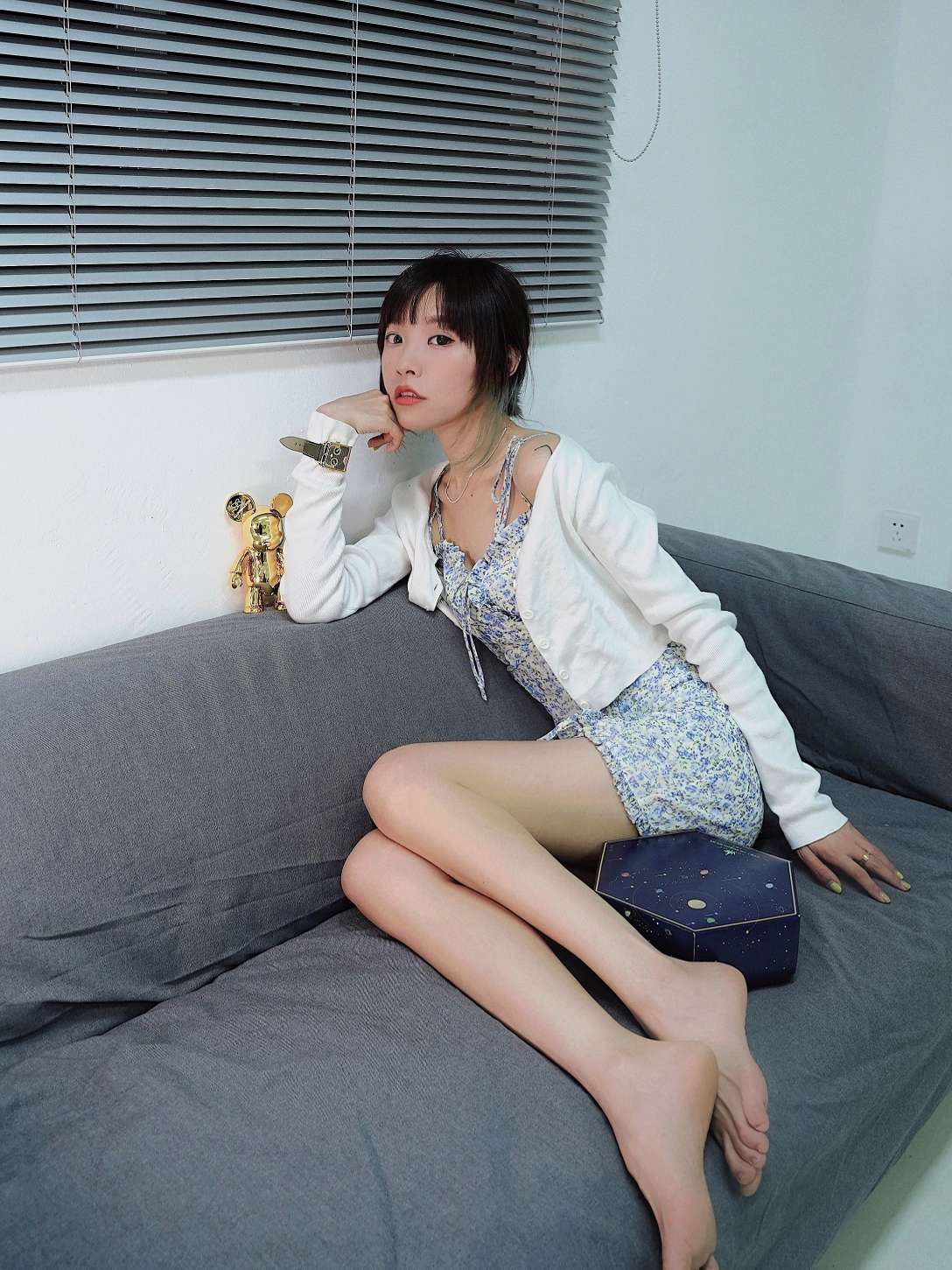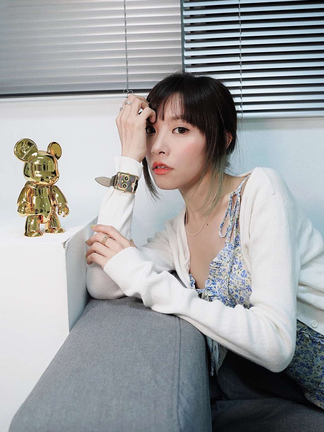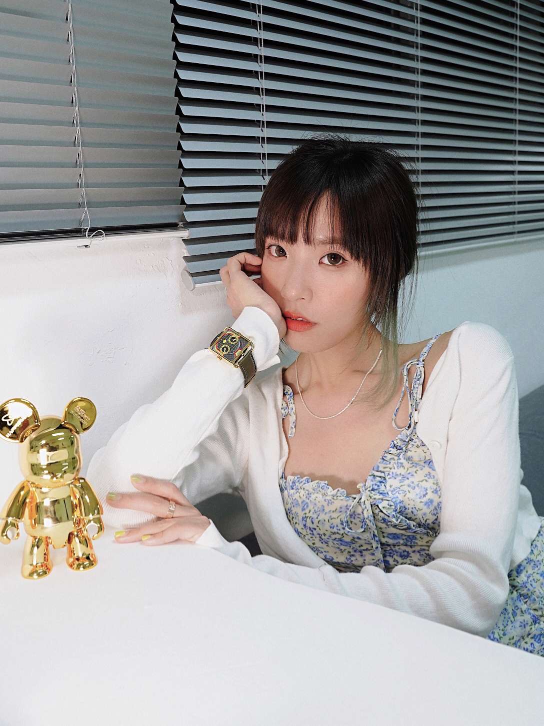 裙子:SHEBYSHJ 最近喜欢这种泰里泰气的小裙子 跟我的背景新沙发百叶窗很搭喔! 手表:@HappieWatch x Qee 收到快递是一个大箱子,因为套装里面还有一只金色小熊手办,配备了2个表带。 (买手表送手办 太香😬😬😬✌!!!) 表盘有区别于其他手表,还蛮新颖,是一只扑闪着2只大眼睛的小熊,眼睛分别是时钟和分钟。