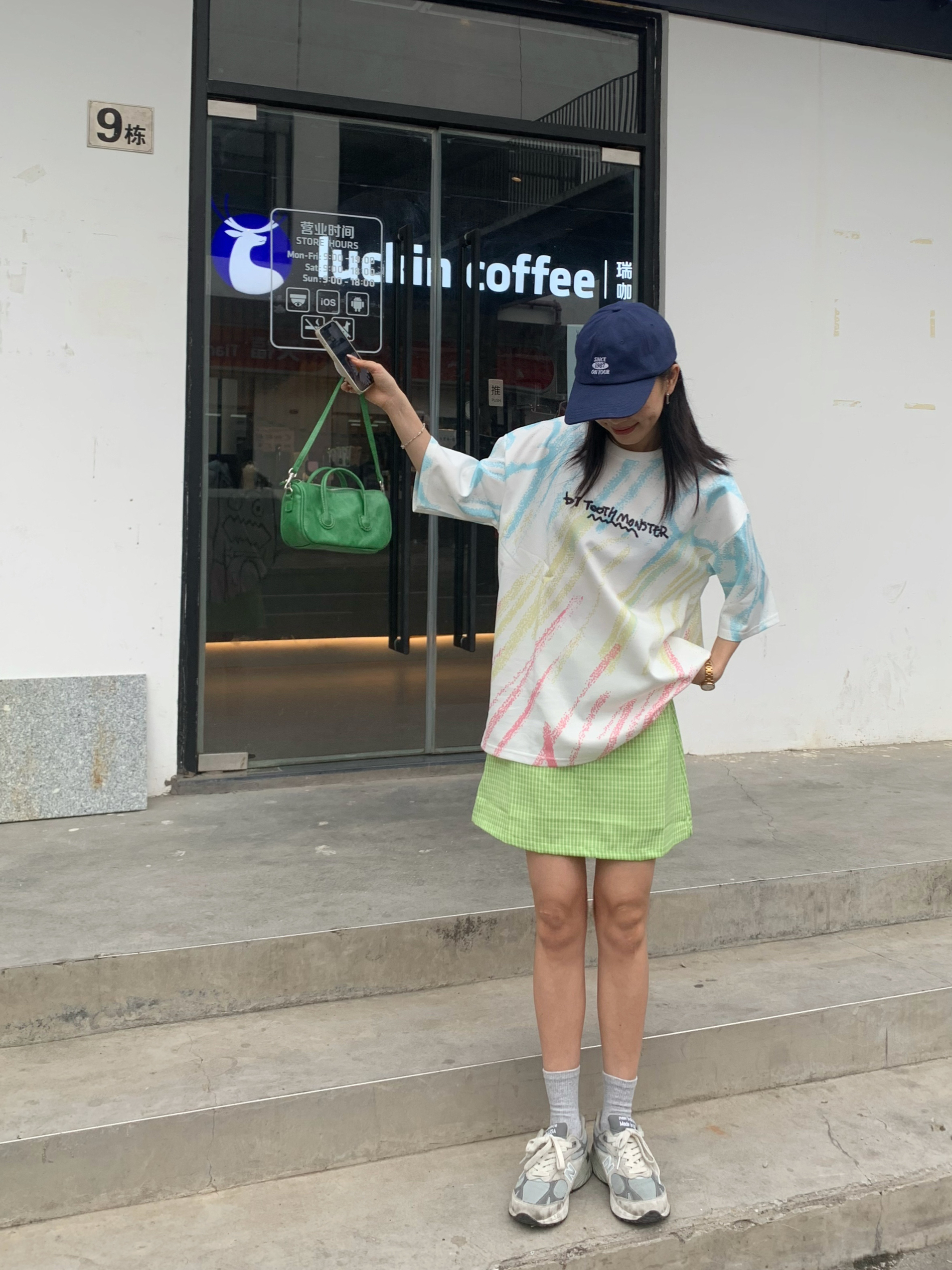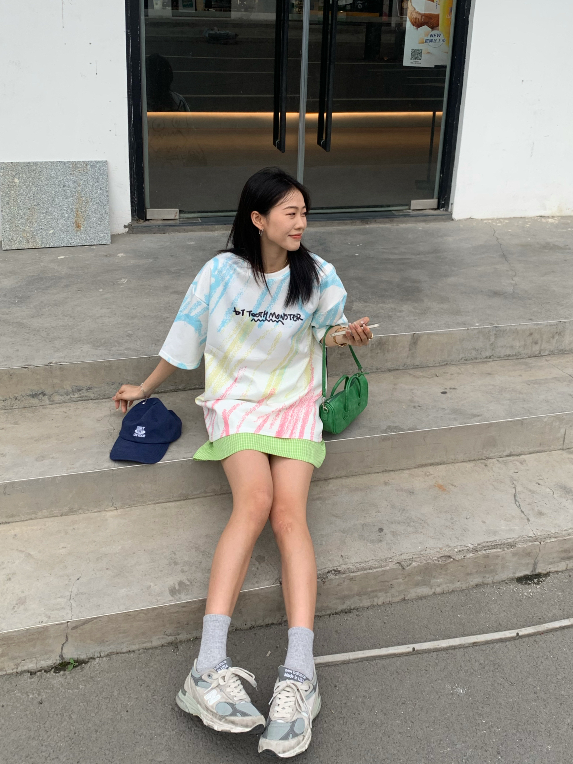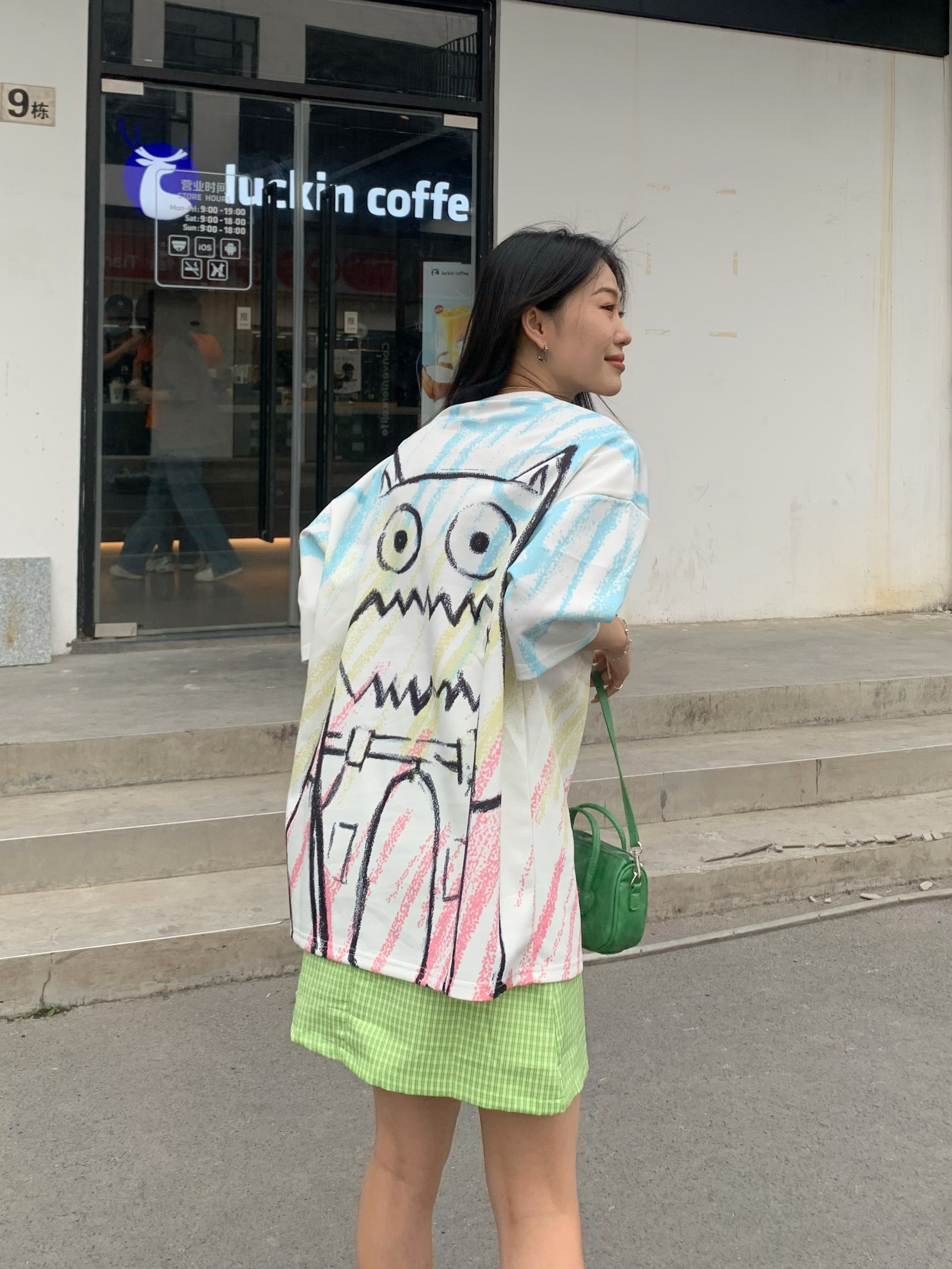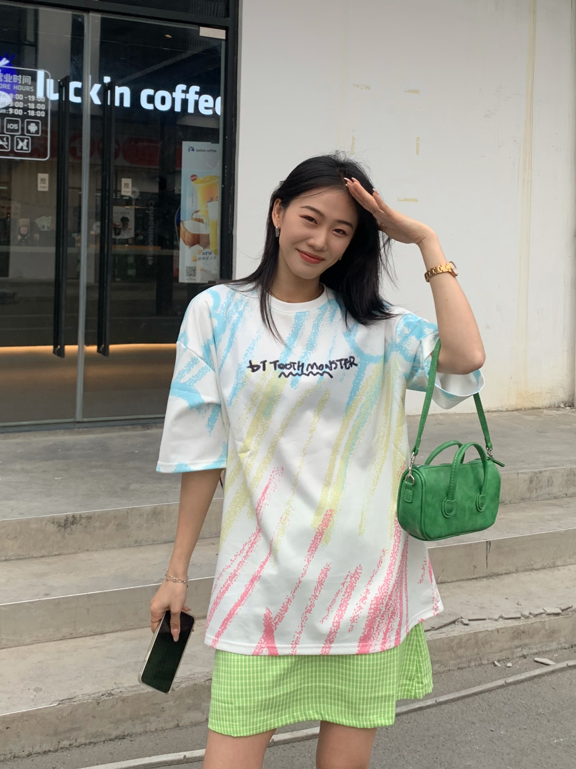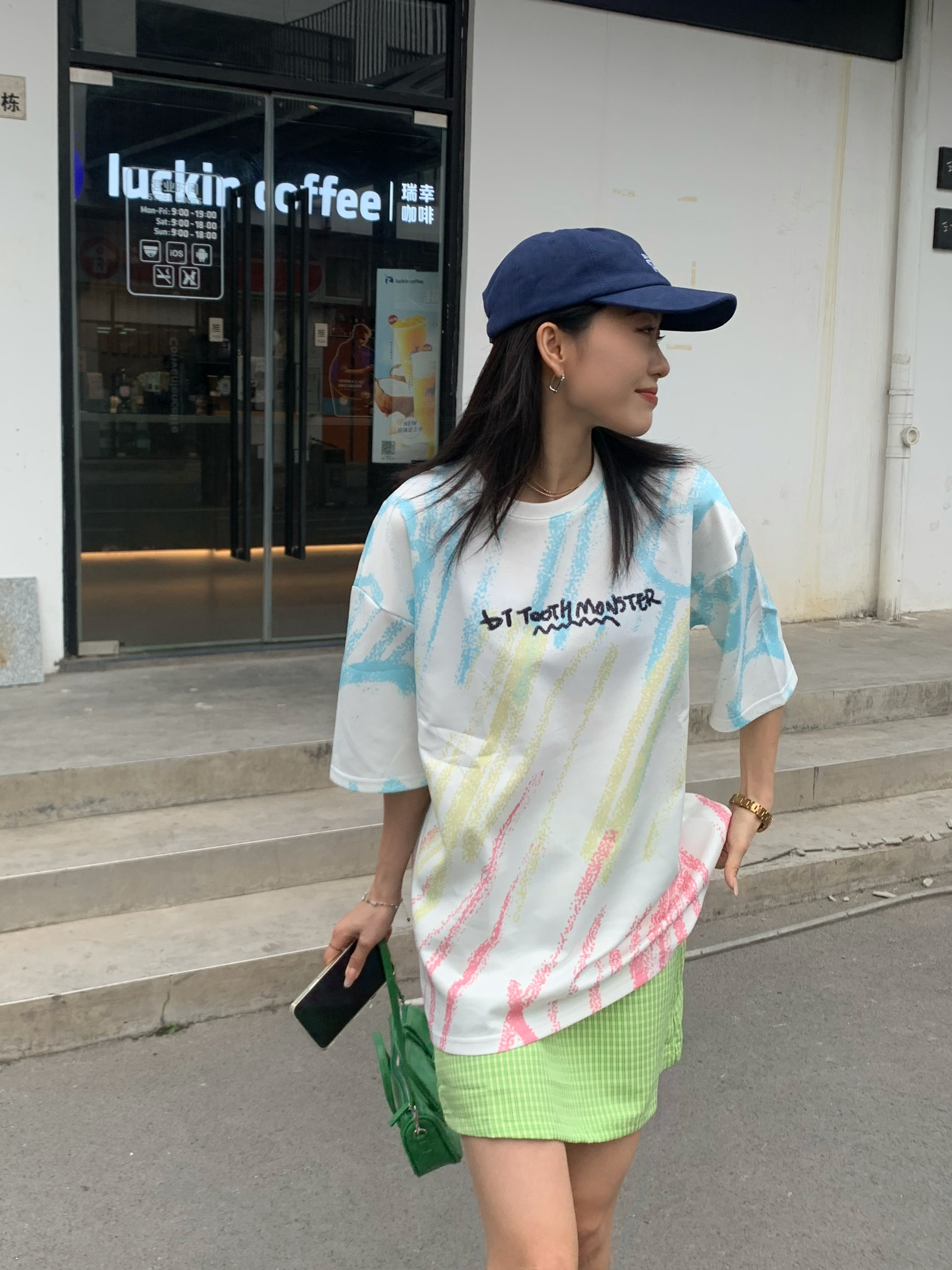 大齿怪炫彩t真的太可了把 167.96 上身L 👔:GENANX 太爱的t恤这个涂鸦。 前面简约字母设计 后面印花真的是有被可爱到,大齿怪🦆 而且主要是布料有点像太空棉,很舒服。 轻飘飘的特别的透气,白色是最百搭的款式 而且炫彩设计,有印花点缀整体看起来不单调 比较喜欢休闲款的话,可以直接把衣服放下来 如果比较喜欢修身一点的可以把衣服扎进裙子里面🦆 167.96 上身M 这个夏天真的很爱绿色...