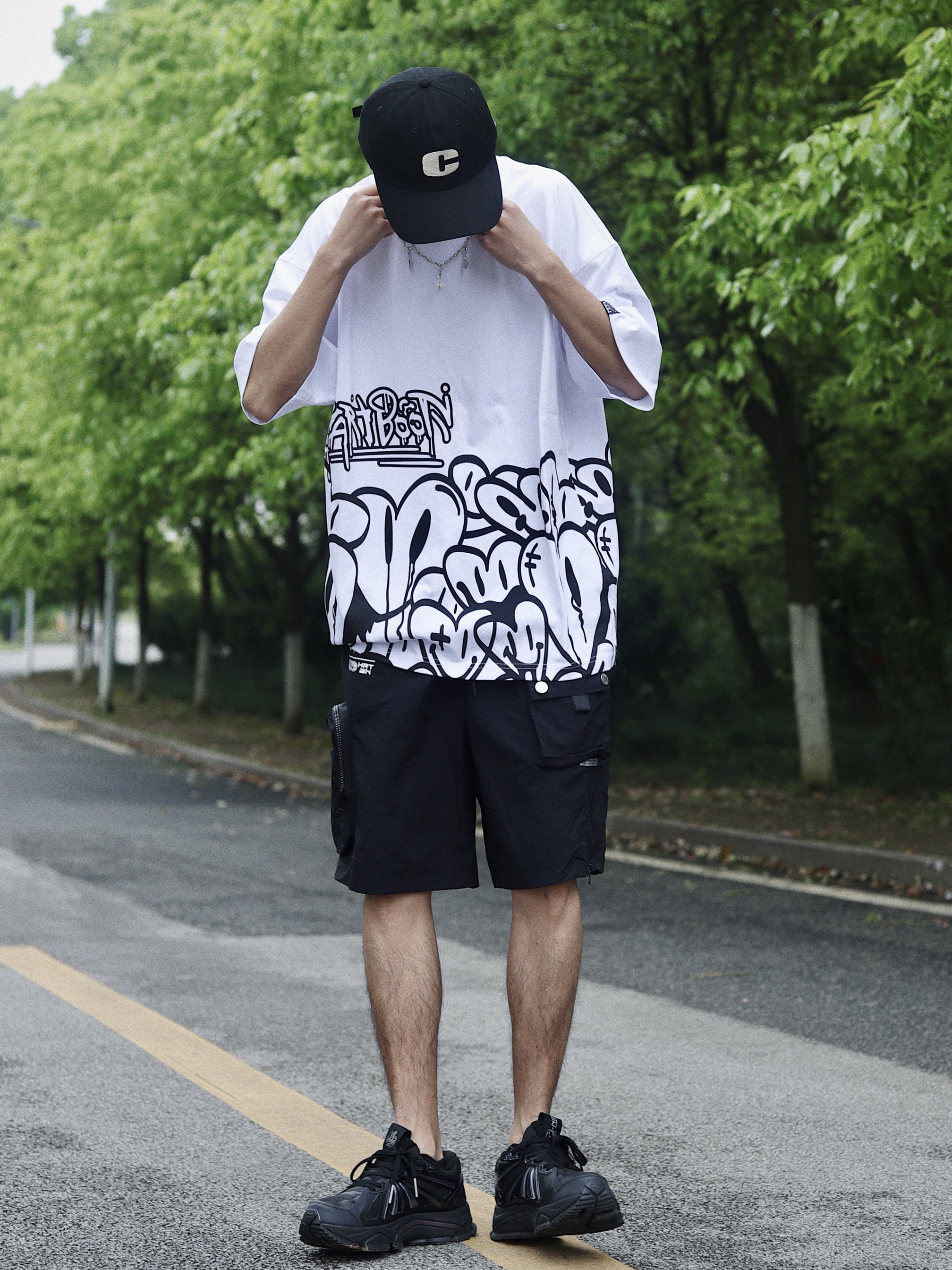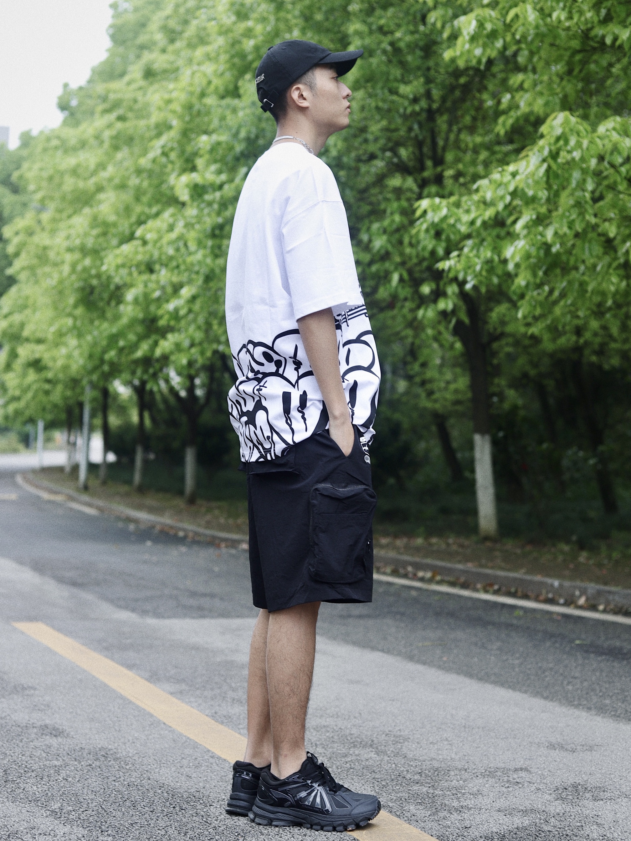 hello大家好~最近在愚人潮社入手了一套爱心机能套装~ ▪️LOOK 🎩:黑色棒球帽 👔:爱心短袖 👖:大口袋机能短裤 👟:李宁老爹鞋 ❗可爱的机能风大家都可以试试,爱心短袖又可爱又潮~白色百搭不挑人~宽松又舒服~女生也可以尝试!搭配短裤或者长裤都很好看~性价比很高,学生党无压力入手~ 📍机能风的短裤,大口袋设计潮酷感十足~上身很舒服~很适合夏天穿! 🔥喜欢的朋友千万别错过~