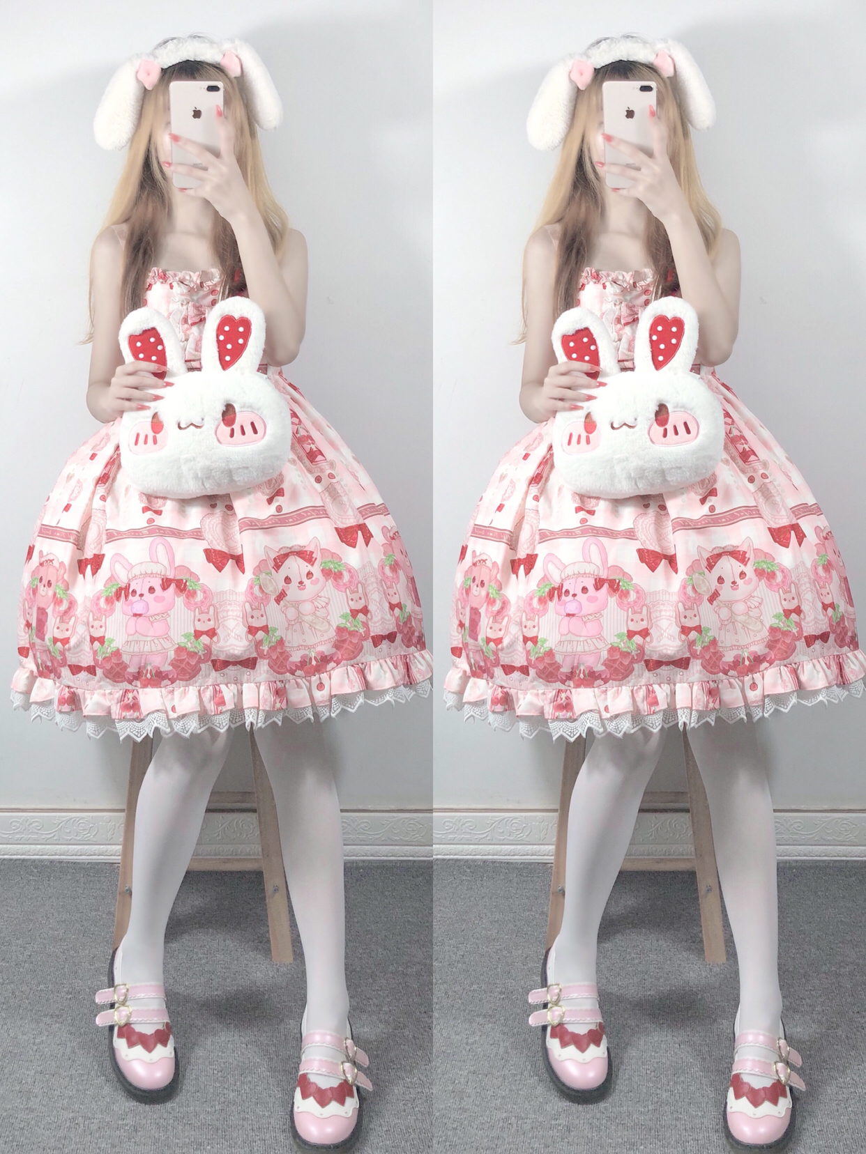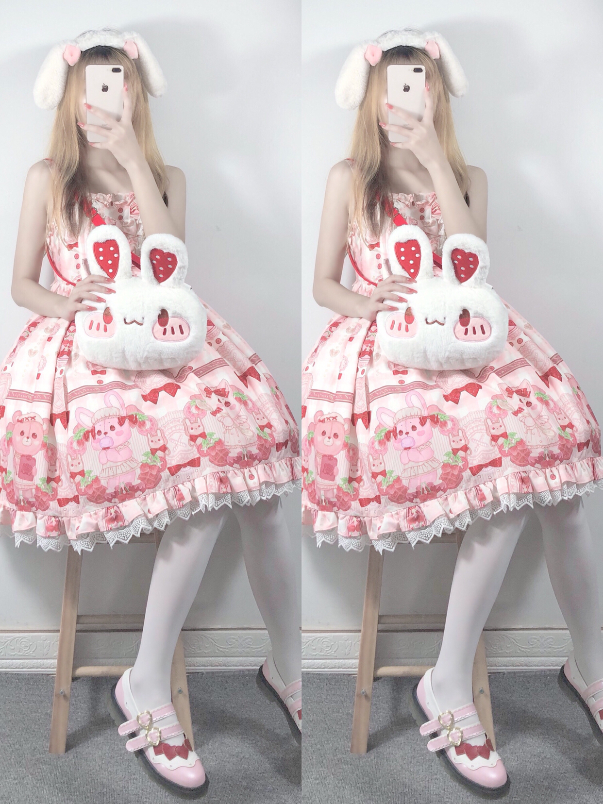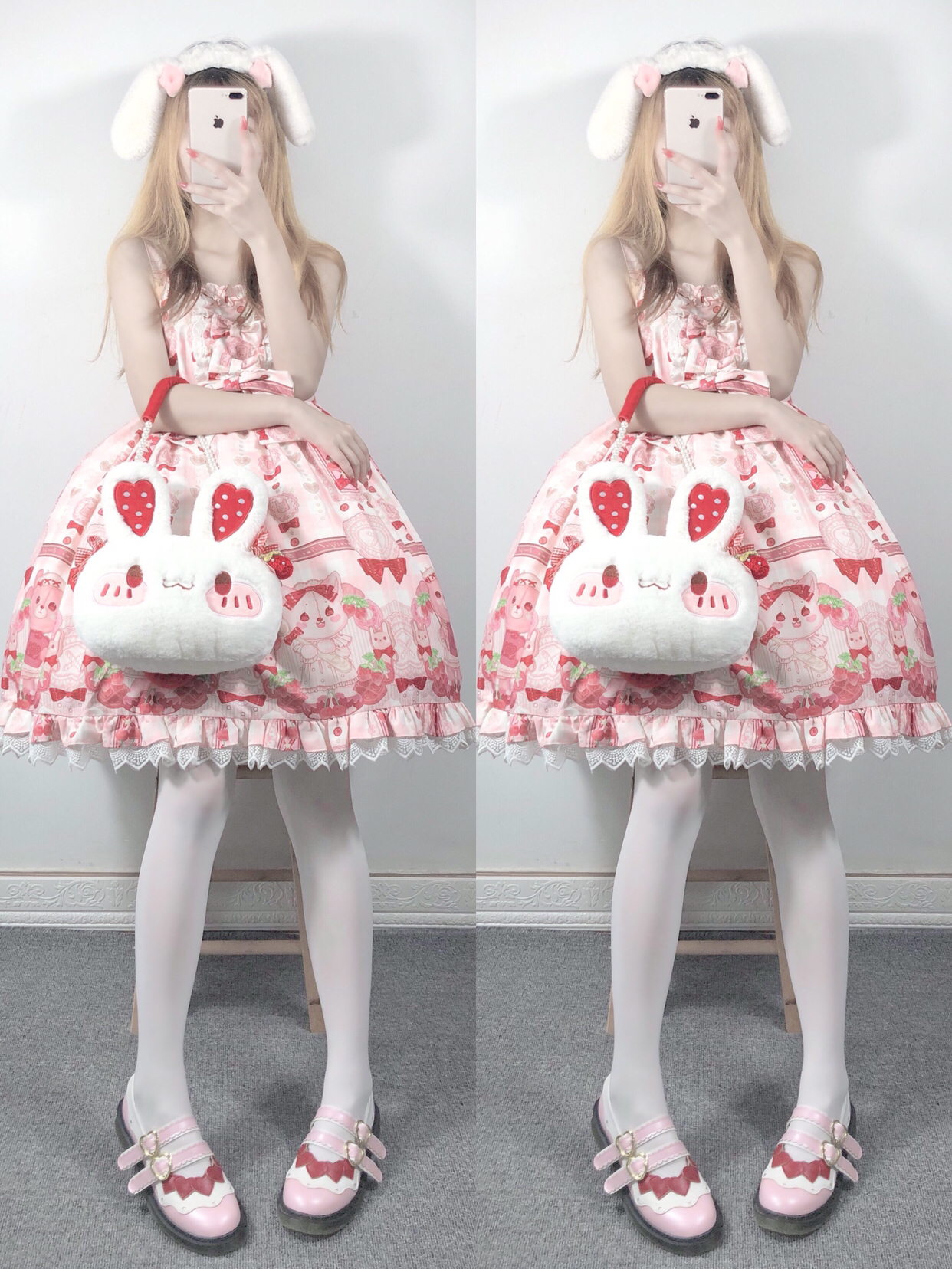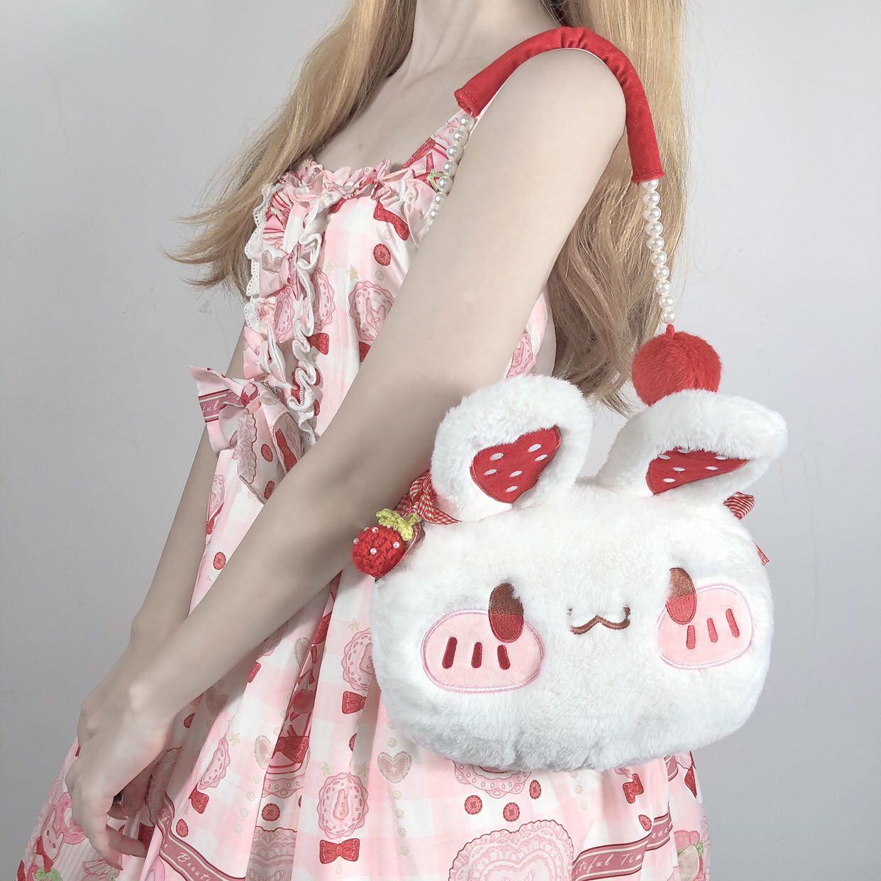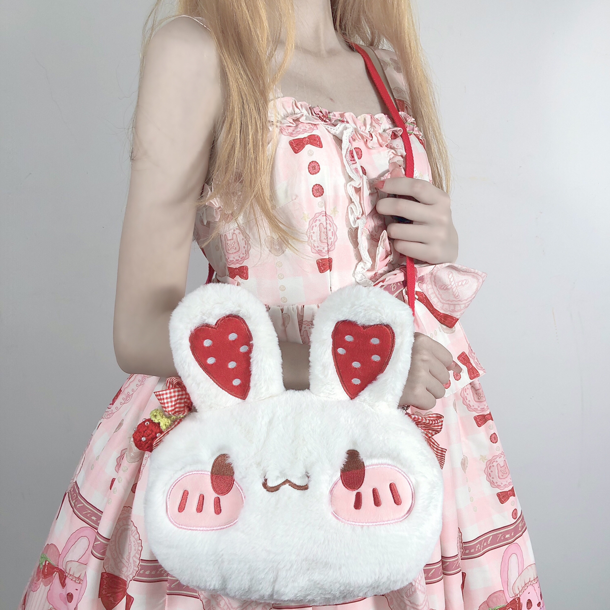 兔子包包软乎乎的 摸起来超舒服的 可以两背 超可爱的 但是白色的比较容易脏 所以要好好保护哦! 搭配层: 裙子-猫寻海家的奶油可可 包包-某馒头工作室 鞋子-山儿家 袜子-花奈猫的工作室