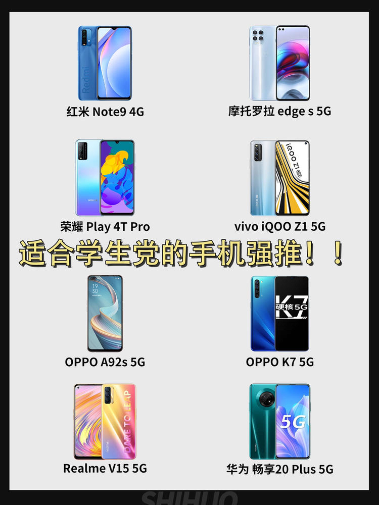 😉iqoo Z3 5G 推荐指数:⭐⭐⭐⭐ 😏特色:高通骁龙768G,55W闪充,120Hz高刷竞速屏,6400万超清三摄,后置主摄、广角镜头支持视频防抖,支持4K视频拍摄,后置慢镜头最高支持1080P,Face Wake面部识别 😉Realme Q2 Pro 5G 推荐指数:⭐️⭐️⭐️⭐️ 😏特色:轻薄千元机,加持素皮工艺,采用天玑800u芯片、120Hz 畅速屏,支持65位智慧闪充,real...