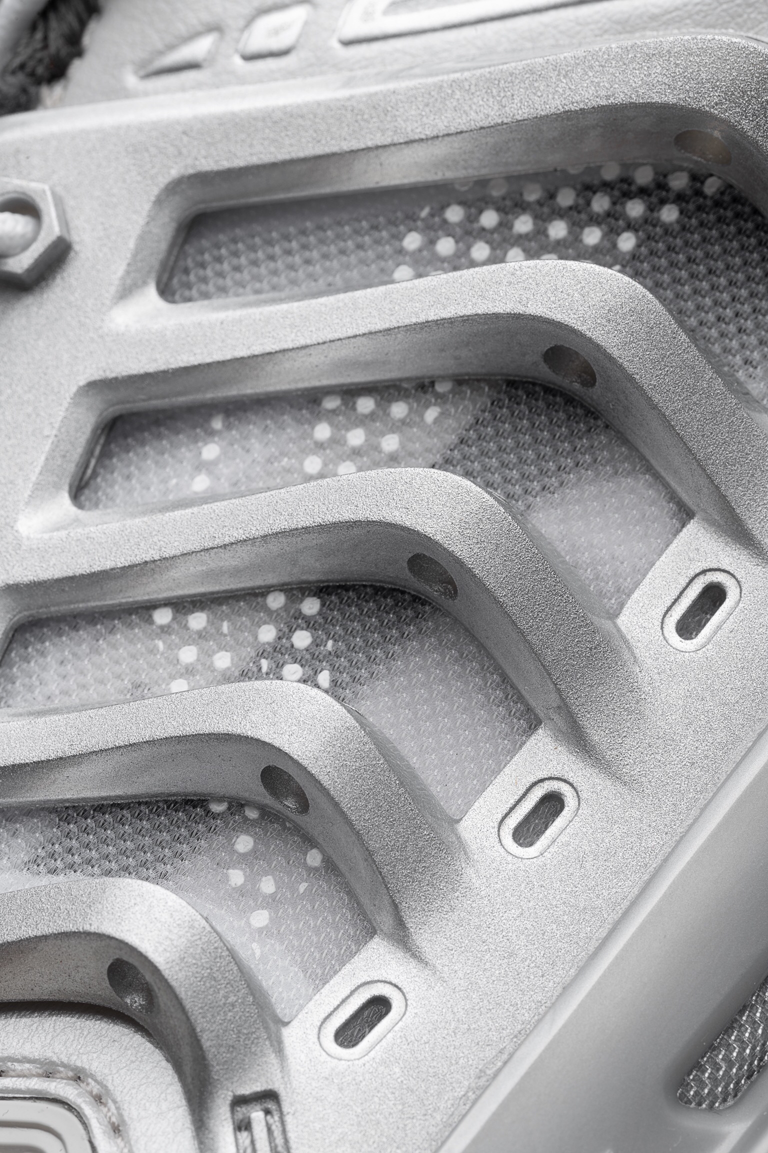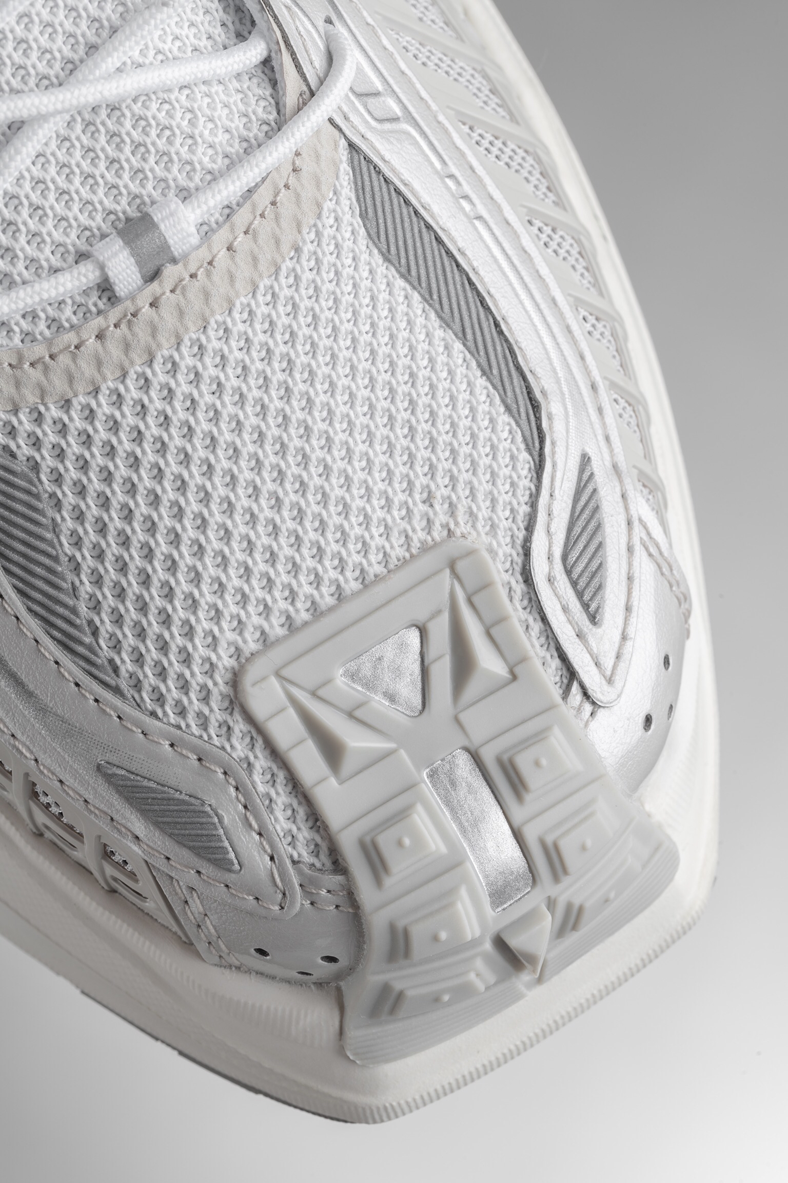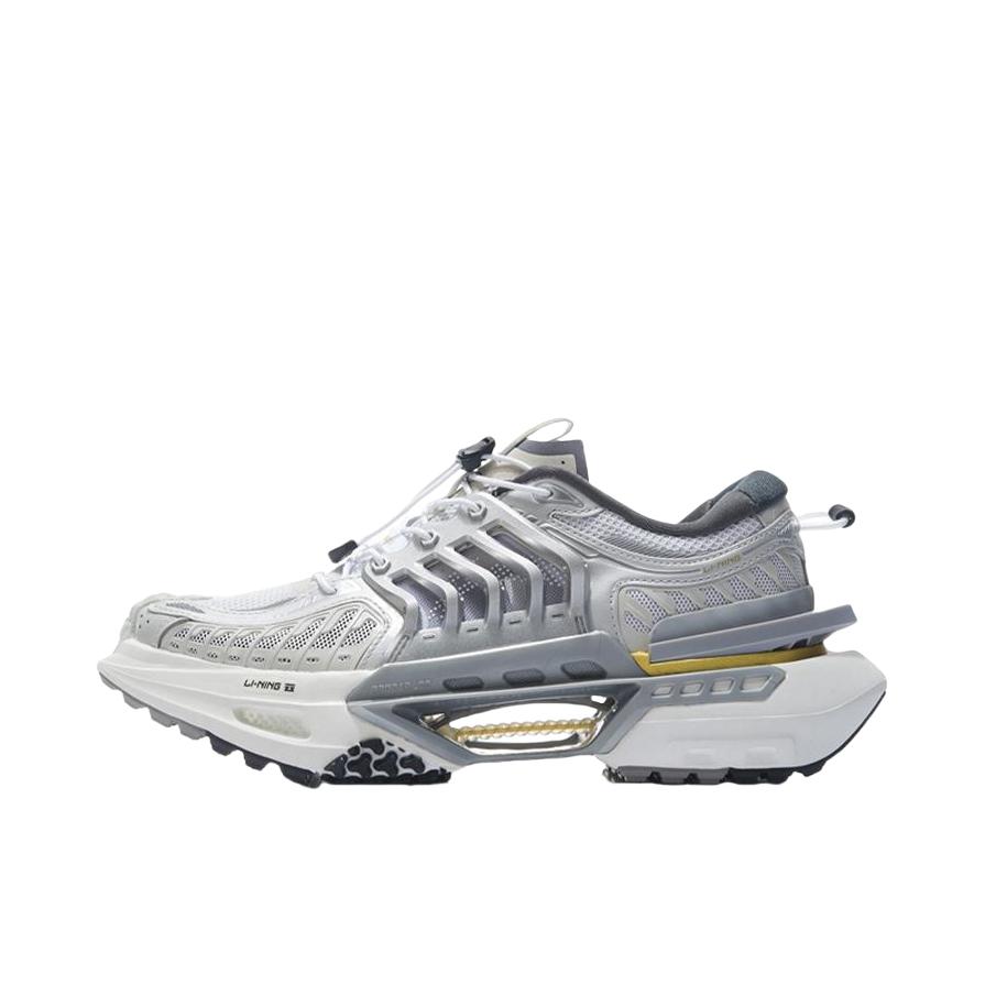 亮相于中国李宁21春夏数字大秀的玄空鞋款推出的最新配色。 本次发售的玄空·无双采用大面积银色色调,代表这双玄空·无双在设计之初以机甲为设计灵感,同时加入3M材质营造科幻气息,具有很强烈的金属质感。 前掌李宁云+后掌䨻科技,中间加入致敬传统的李宁弓技术,将传统与现代的概念发挥到极致,脚感十分舒适。 鞋身加入了制作难度超高的电镀镂空打孔TPU和金属网,提供绝佳的包裹和透气性。