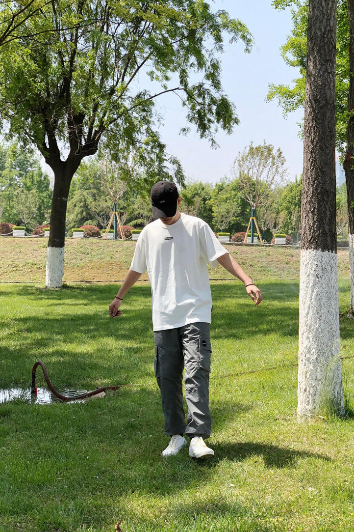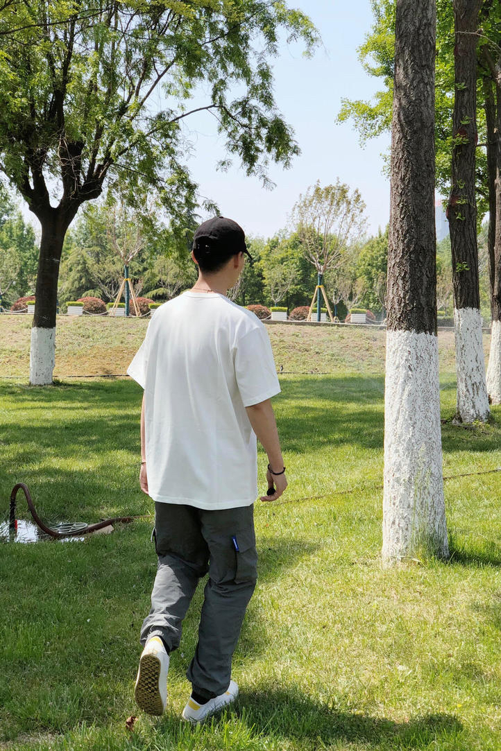 👕 立方潮社Vegebox 👖 Soul Error 👟 Vans× RHUDE 平常不怎么穿白色 但是简约的设计肯定不错过 纯白色的T恤 加上简约的印花Logo 干净的感觉 尤其是可以感受的到面料的垂感特别的好 今天裤子搭配了一条灰色的休闲运动收口裤 再来一双小白鞋 整体还是比较舒服的穿搭