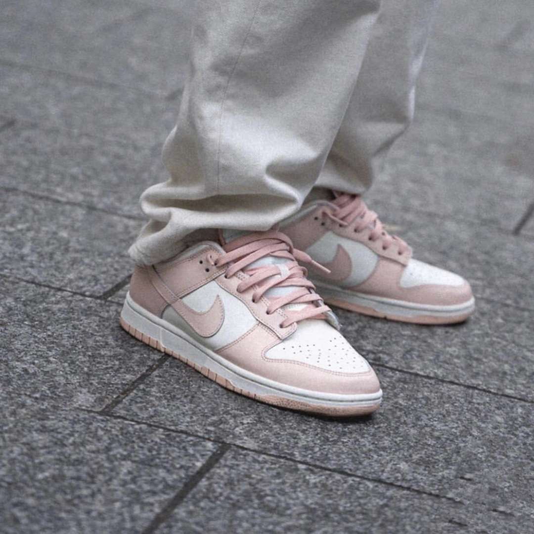 Dunk樱花粉『女款』 🌈淡粉樱花粉NK DunkLow“Orange Pearl”鞋身框架以低饱和度的珍珠粉打造,同时填充白色点缀,视觉效果极为清新。细腻纹理皮革覆盖鞋面,带来不俗质感的同时观感也十分优秀。外底部分采用淡粉色设计,与鞋身框架呼应,和谐统一。颇高的颜值应该会带来不错的上脚效果,相信会成为众多小姐姐的夏日穿搭选择。 🌈Dunk在跃升成为街头标杆和人气滑板单品之前,早已在学院的硬木球场...