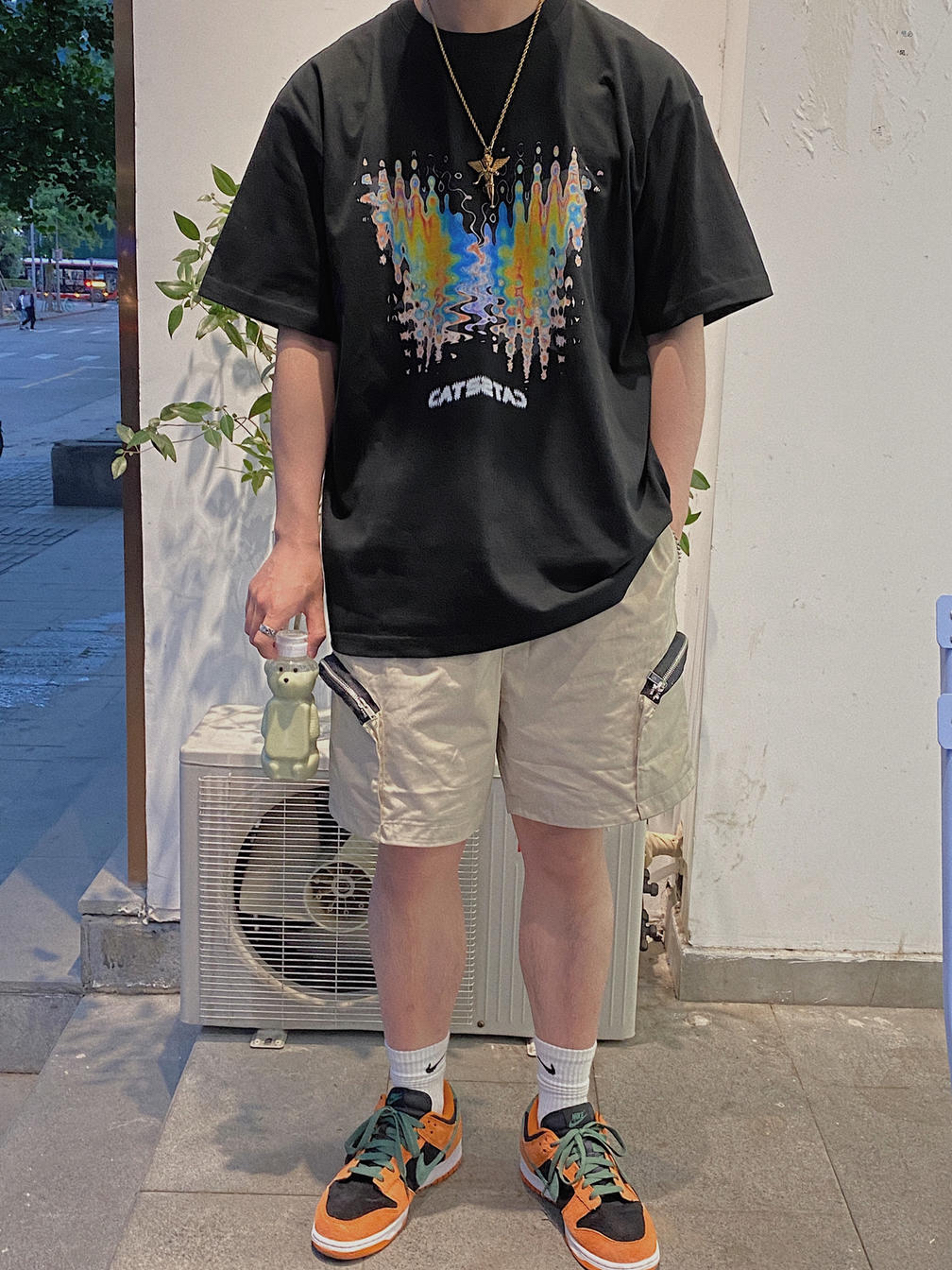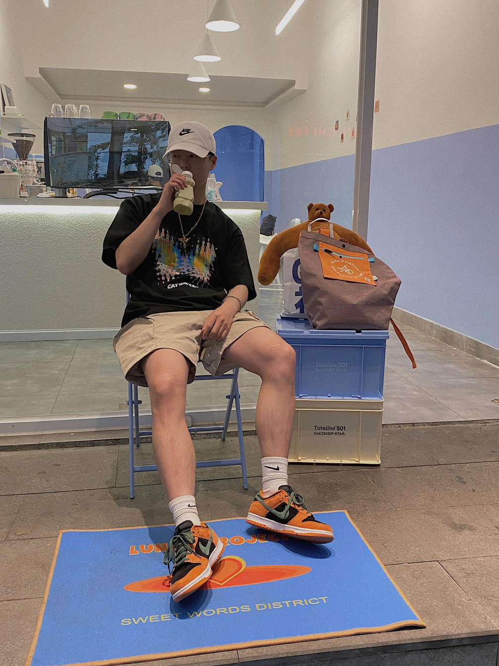 夏天我比较喜欢的依然是黑色, 但是不会整体都是黑色, 所以短裤选择了麦芽色~ 这样能很好的过度到黑橙的鞋子。 再背一个和鞋子一样的橙色包包, 小心思用起来!绝对不会出错。