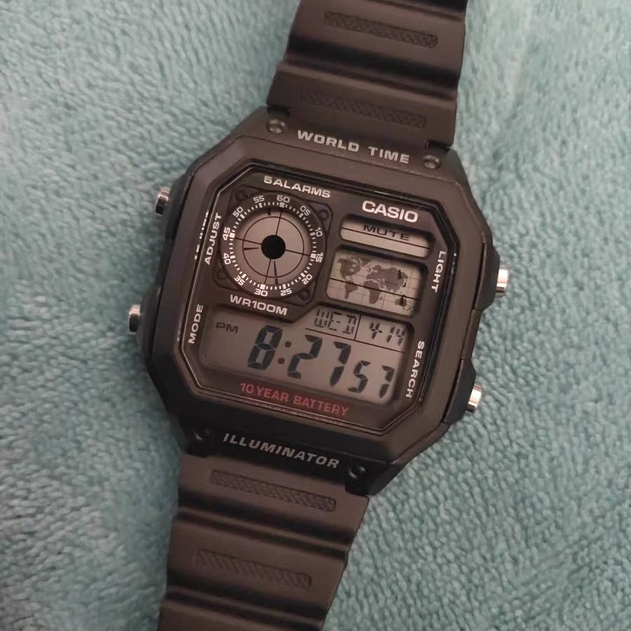 本篇笔记关联了Casio/卡西欧 YOUTH系列 树脂表带简约运动防水防震电子复古小方块学生石英男士手表 黑色银盘 AE-1200WH-1A等商品,为用户提供真实的使用体验和购买参考。