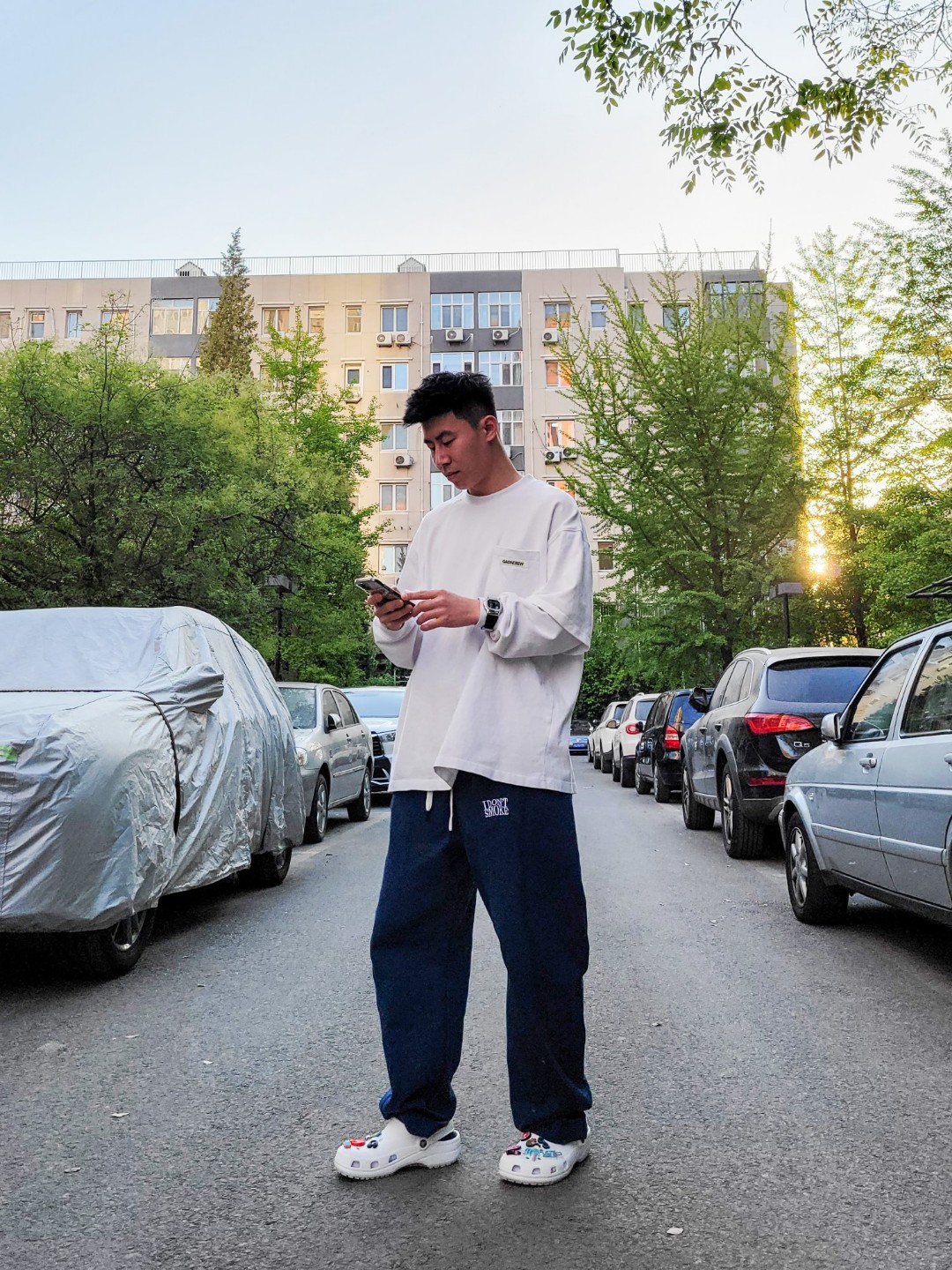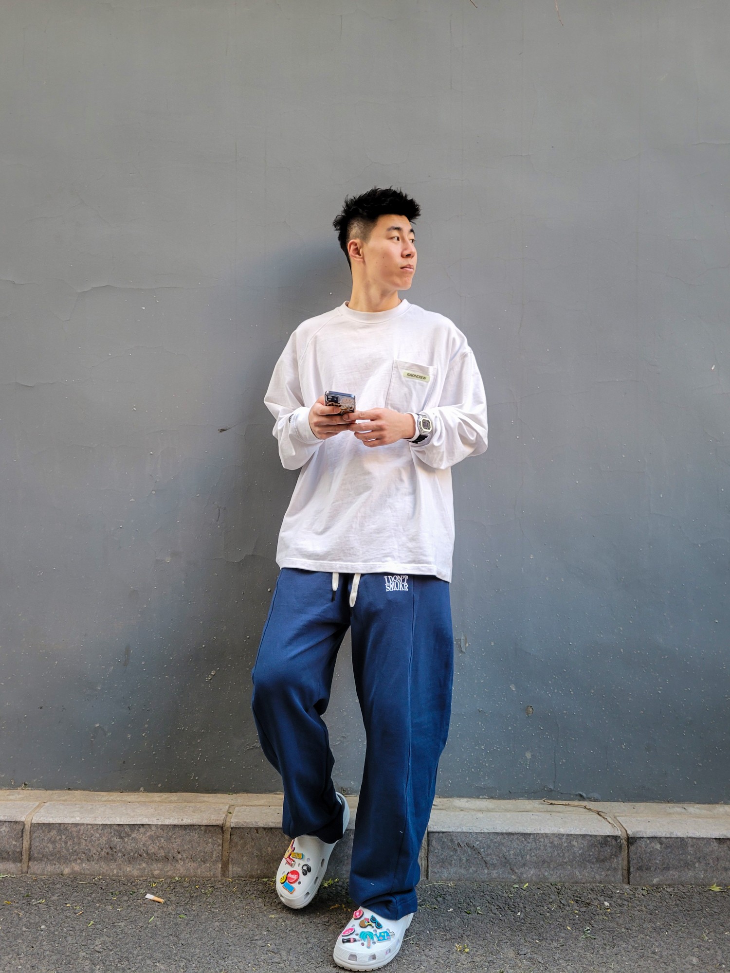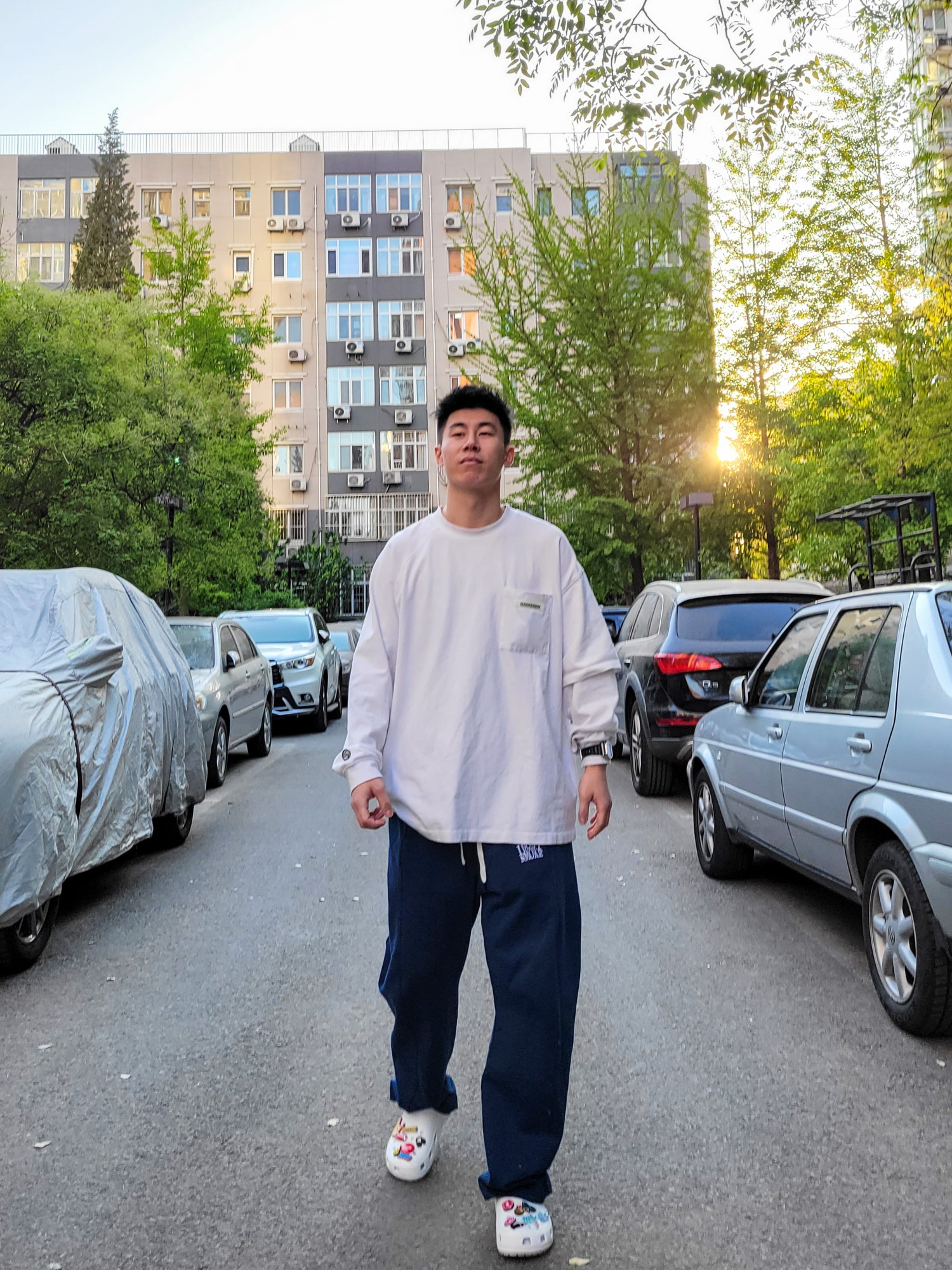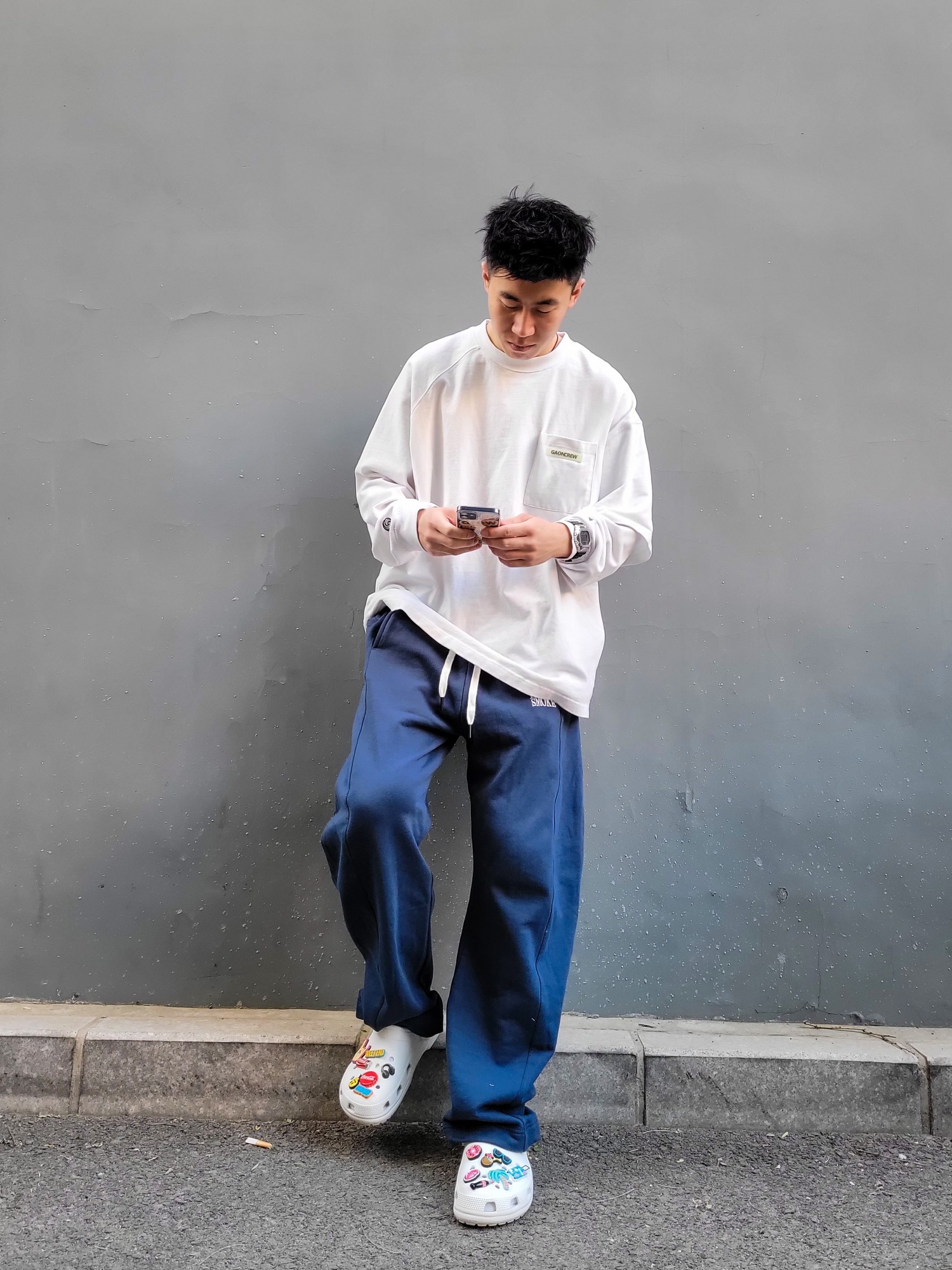 最近冲了洞洞鞋以后辛苦diy终于成型 然后考虑搭配问题 本以为寻找宽松裤子搭宽松卫衣会是美式随性风格 结果搭着搭着成了韩流 意想不到的收获 整体效果还是挺满意的 洞洞鞋太舒服了 加上diy的鞋花 很适合出街 裤子宽松舒适 够长裤脚够垂 与洞洞鞋是很好的组合