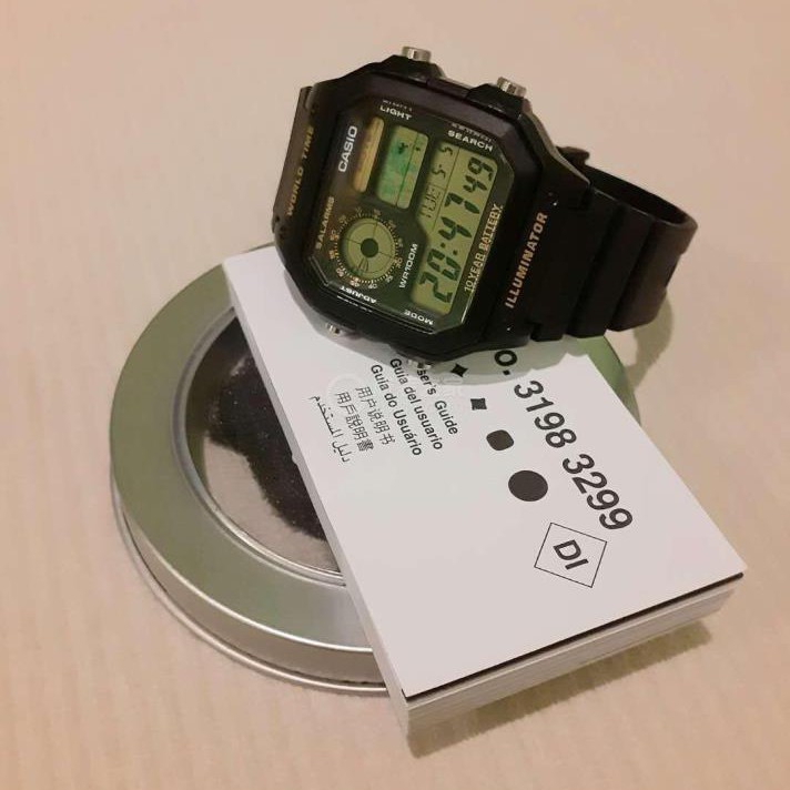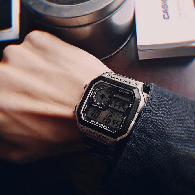 型号:Casio AE-1200 价格:159RMB 入手原因 ✔价格便宜,性价比高。 ✔外形高科技感,小方块形状,比较独特,相比之圆表,更能给人眼睛一亮的感觉,休闲运动两相宜。 ✔带有世界地图,可随意切换,秒表和倒计时功能齐全。 ✔电力长达十年,一百米防水。 适用人群:追求高性价比和科技感的现下确没有太多资金的学生党或者单纯喜爱它的人群 一句话:这么白菜价你来不来?!
