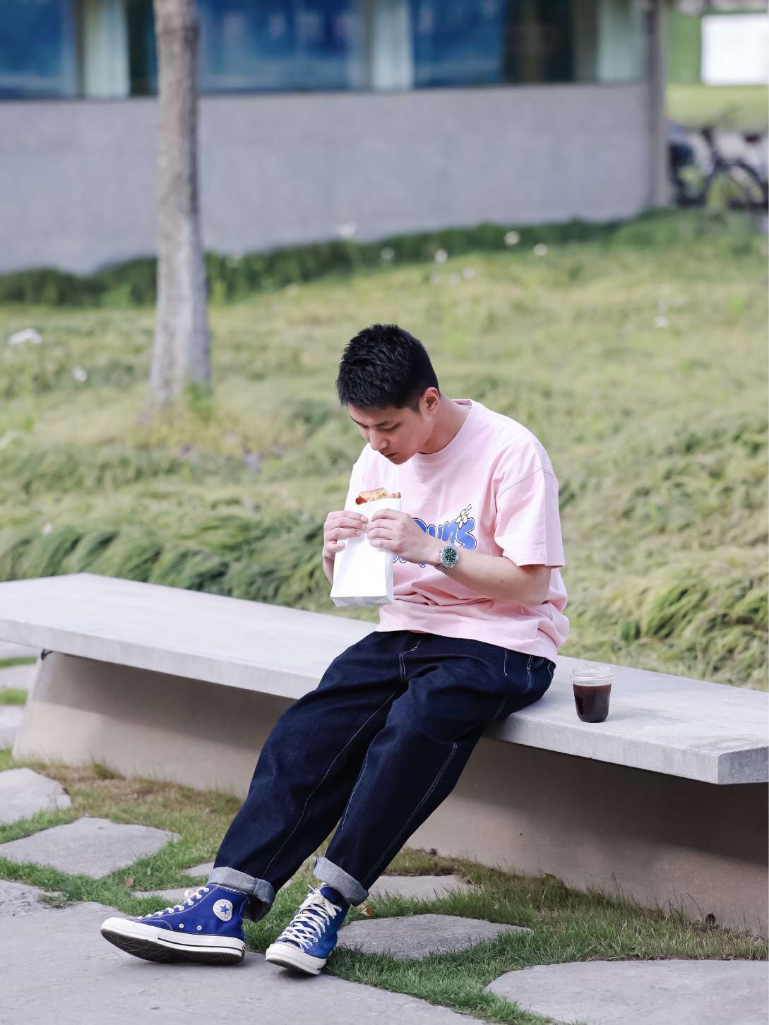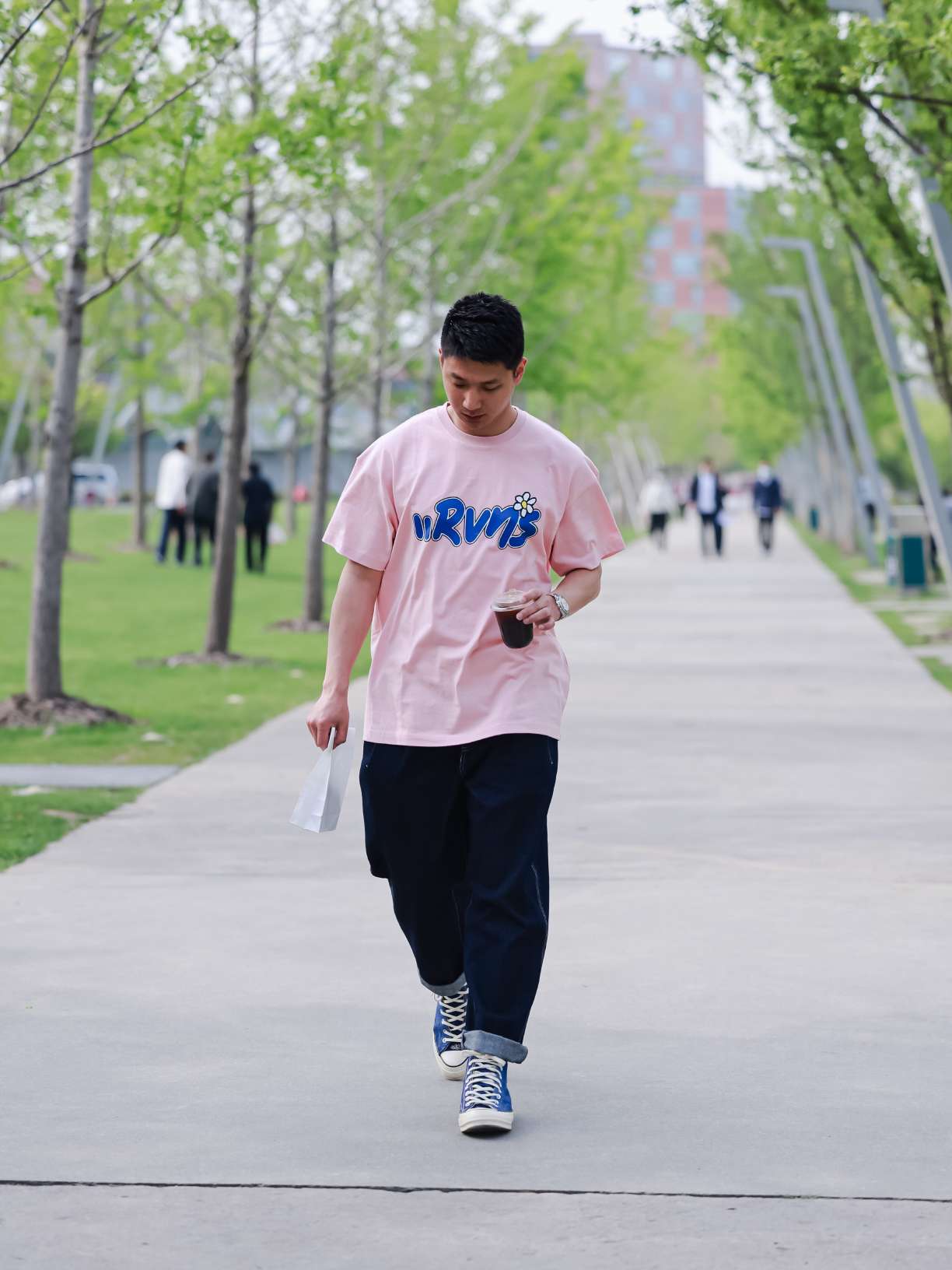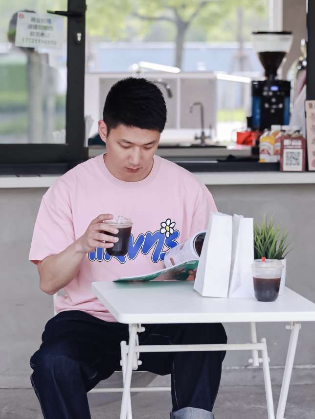 随着气温逐渐升高,白天也有了一丝夏天的感觉,穿tee的时候也多了起来。 其实粉色tee男生也是很好穿的,但还是宽松一点的好,本身也是夏天很随性的穿衣,太合身真挺容易。。。。下搭纯色牛仔裤看着还是很和谐,蓝色帆布鞋正好与tee上的蓝色印花相呼应。 🔻 OOTD tee:Ravenous 裤子:Madness 鞋子:1970s