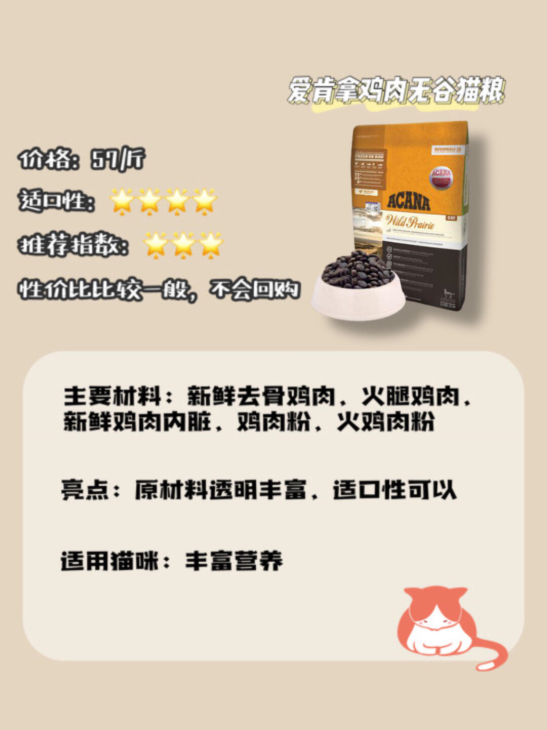 本篇笔记关联了ACANA/爱肯拿 农场盛宴系全期全价鸡肉味 膨化猫粮 增肥发腮肠胃调理 1kg、Nutrience/纽翠斯 黑钻系列红肉配方全价全期 冻干猫粮 增肥发腮营养均衡 2.27kg/5磅、Ziwi/滋益巅峰 无谷风干系列牛肉味全价全阶段 风干猫粮 营养均衡呵护肠胃 100g等商品,为用户提供真实的使用体验和购买参考。