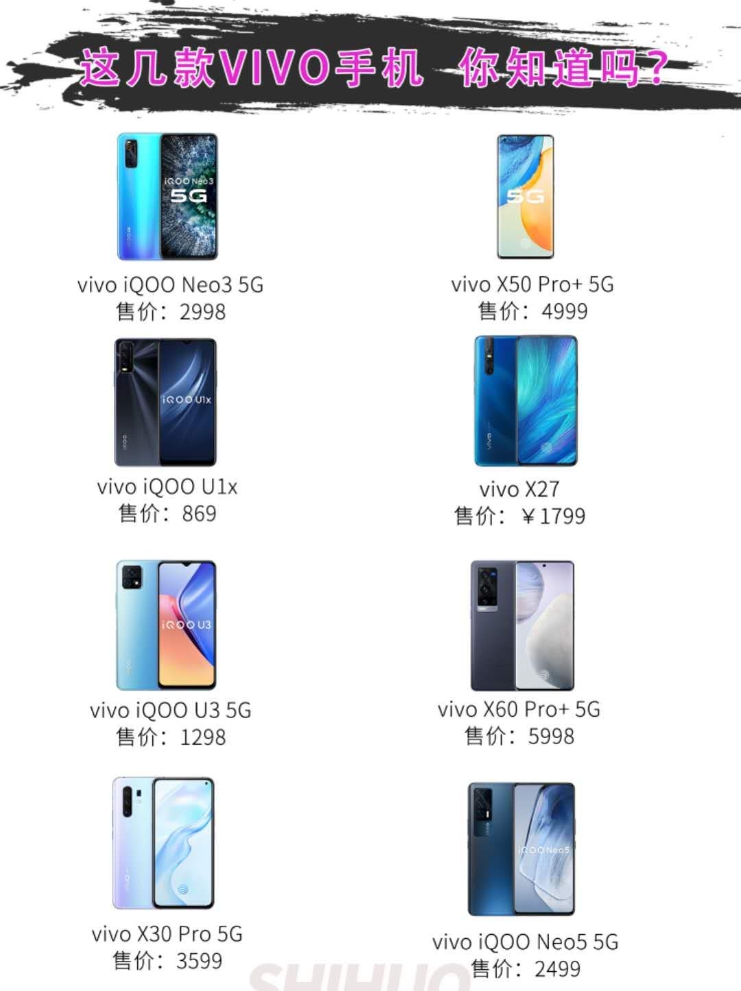iQOO Neo3 售价:2998 特色:vivo iQOO Neo3 5G搭载骁龙865处理器,在性能上满足日常使用和中度游戏用户的体验,144Hz的竞速屏,带来丝滑的体验,搭配4500mAh超大电池,45W闪充,20分钟可充至50%,一小时可以充满。 vivo X50 Pro+ 售价:4999元 特色:拍照方面是这款手机最大的亮点,该机后置采用 5000 万超感光主摄 + 3200 万专...