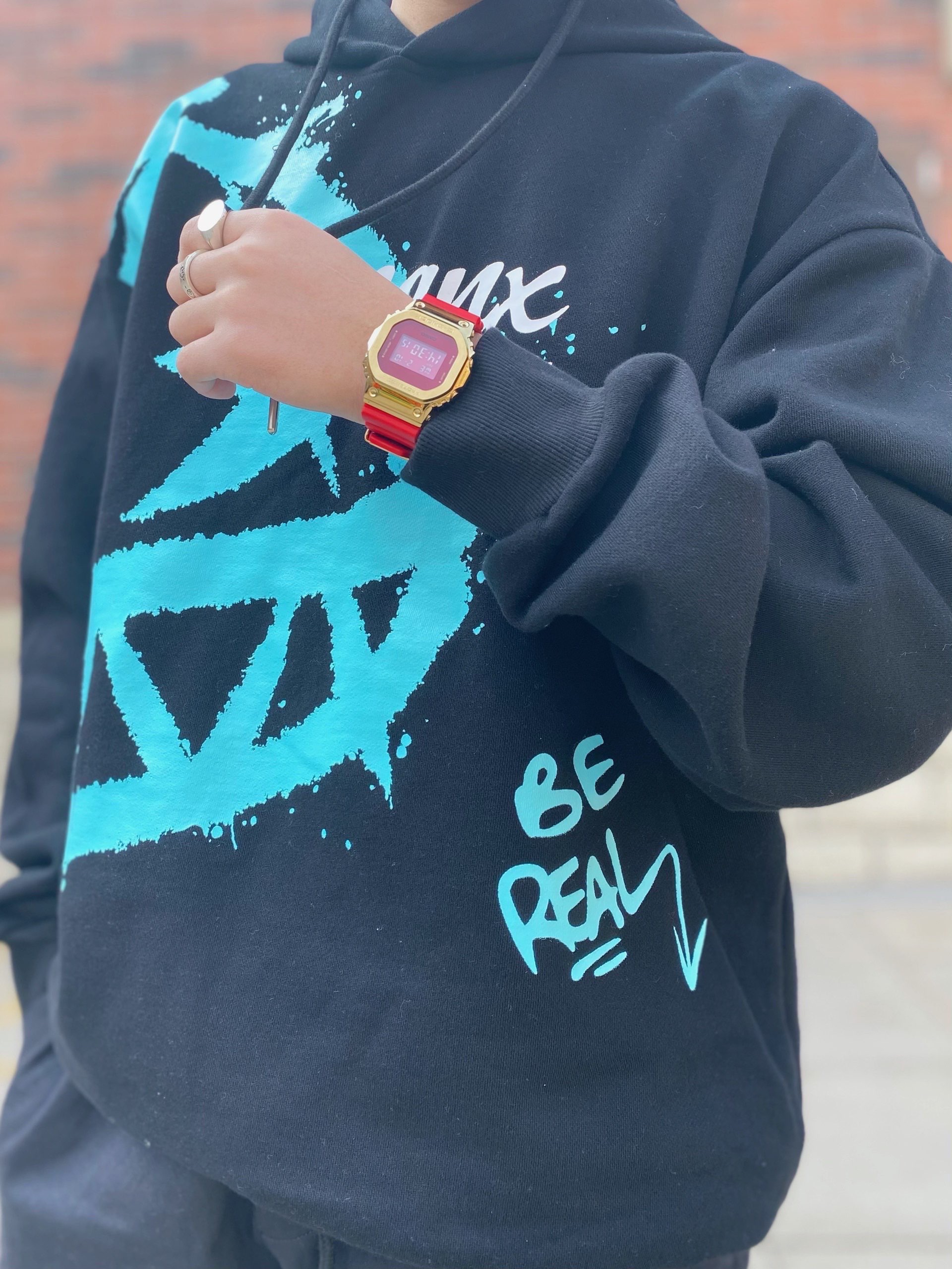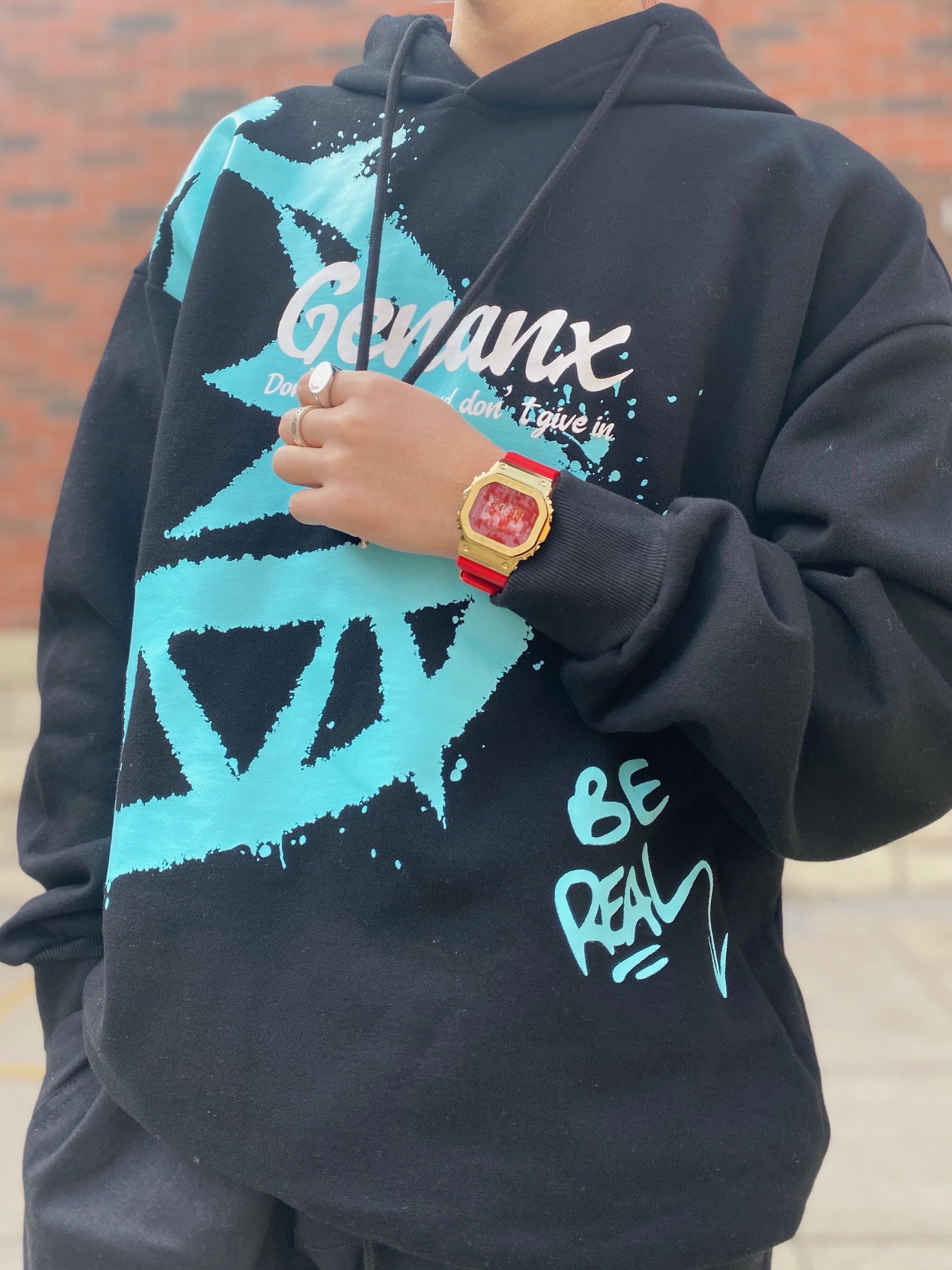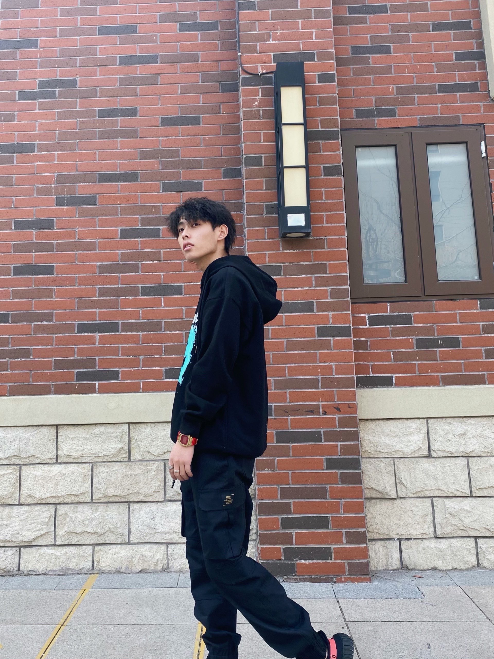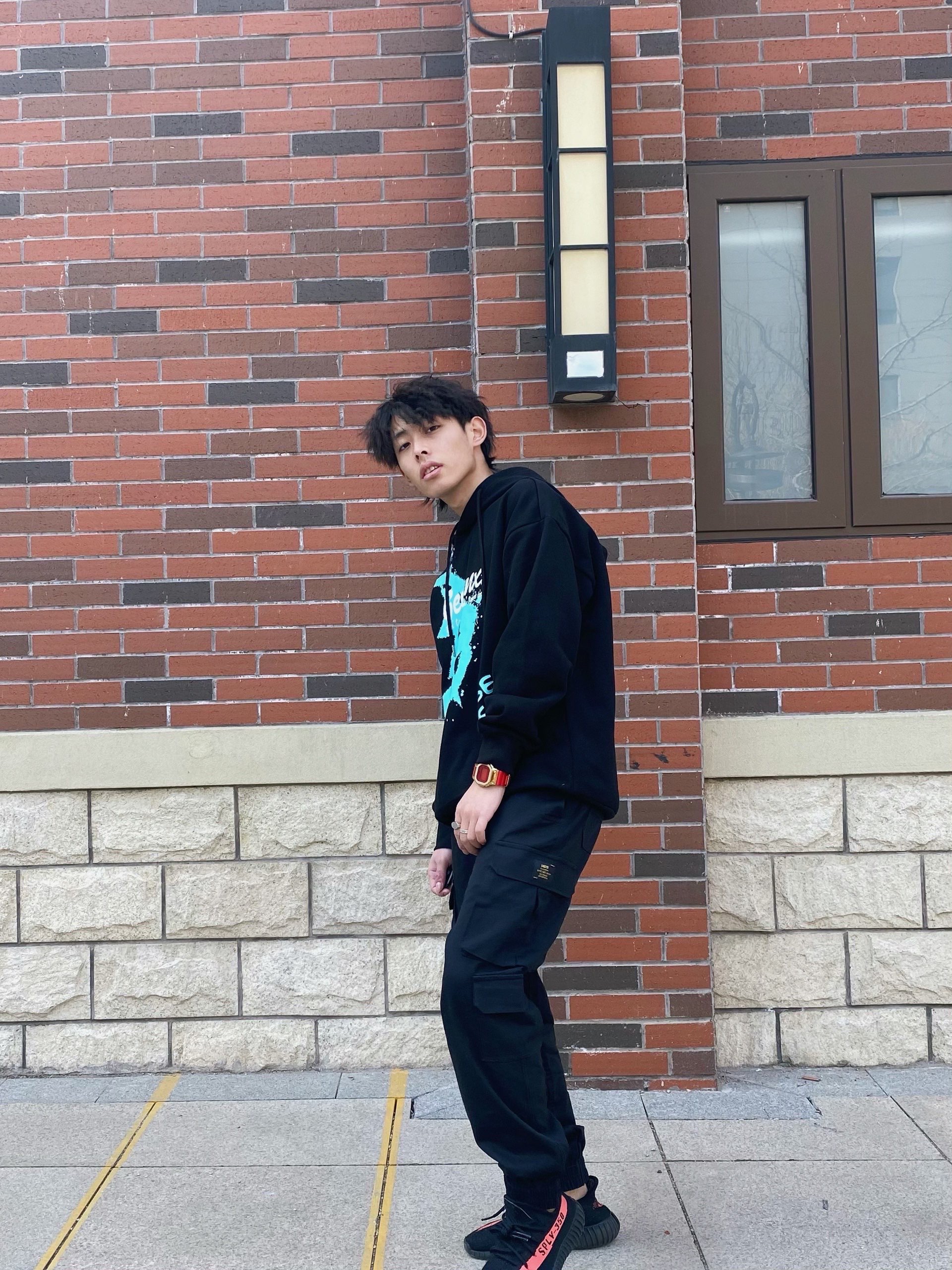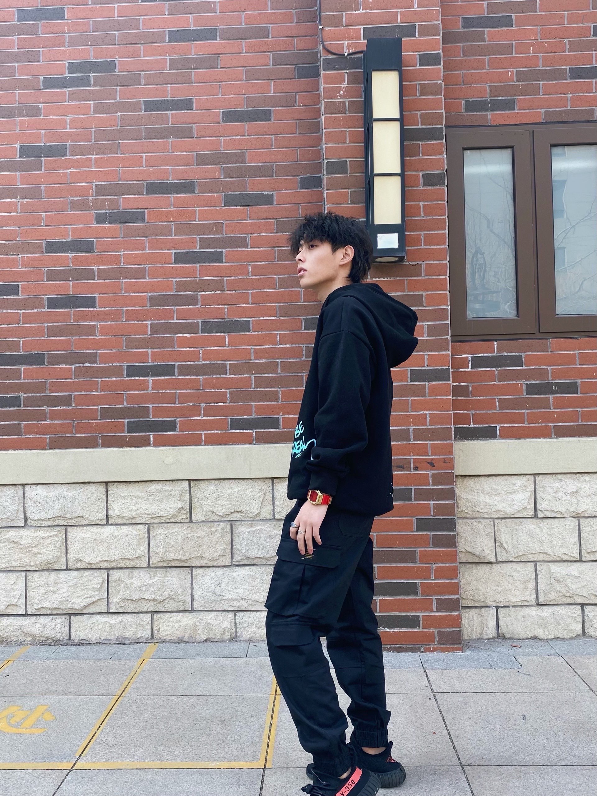 黑色就是要酷,工装束脚裤第一感觉就是干练利落,配上一件休闲卫衣,虽然休闲和干练是反义词但是搭在一起并会出现不协调,反而整体的效果很不错 看到整体的小心思了?注意⚠️小方块!小金块!G-SHOK的🐮牛年限定,金红配色真的可以提升整体的效果 #CASIO 牛年限定小金块G-SHOCK #GENANX 印花加绒卫衣(加绒的) #M5is 束脚机能工装裤,束脚口做的很软不会紧 #YEEZY 350黑红...