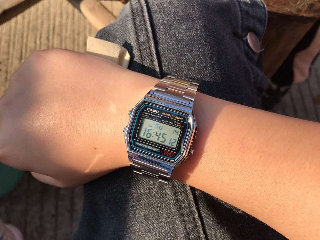❤️入手原因:有一天看综艺的时候,偶然发现陈小春也戴了一款手表,当时一眼直接迷住了我,然后赶紧到识货上搜索下单。 ❤️品牌款式:CASIO A158WA-1 (百搭的神) ❤️穿戴体验:春夏交替之际,一块手表真的是点睛之笔,看似普普通通,实际上在阳光下,别有一番风味,而且什么衣服都可以搭配!!! ❤️价格:便宜的超乎我想象!居然只要100+!!!