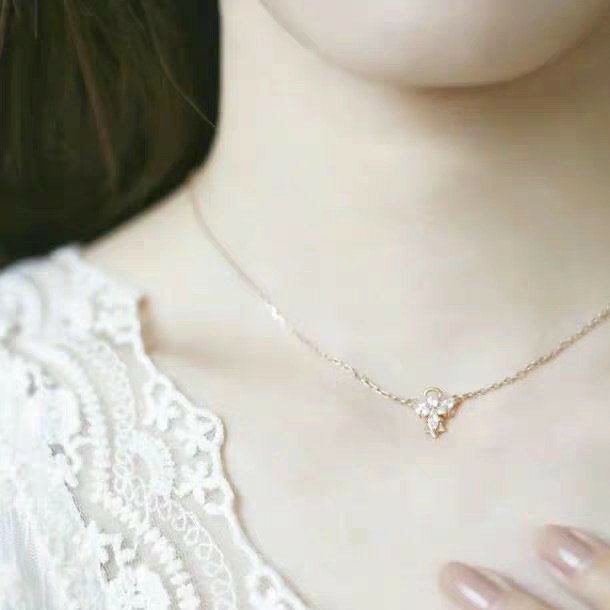 人们都说女孩子都是降临人间的小天使✨每个女孩都值得最好的宠爱💕,这个项链很好的诠释了这句话。 🤔它是那种锁骨链,项链主体刚好在锁骨窝窝里,小小的吊坠超级精致,项链是超级显白的玫瑰金,特别耐磨而且带很久也不会有磨损不亮的情况。 🙊重点是超级闪,女孩子可能天生就喜欢闪闪的东西吧。四颗奥地利仿水晶石在阳光底下折射的亮度贼好看!让你整个人都闪闪发光~ 😏马上就到夏天了,它可以百搭好多仙气小裙裙,戴着它就像...