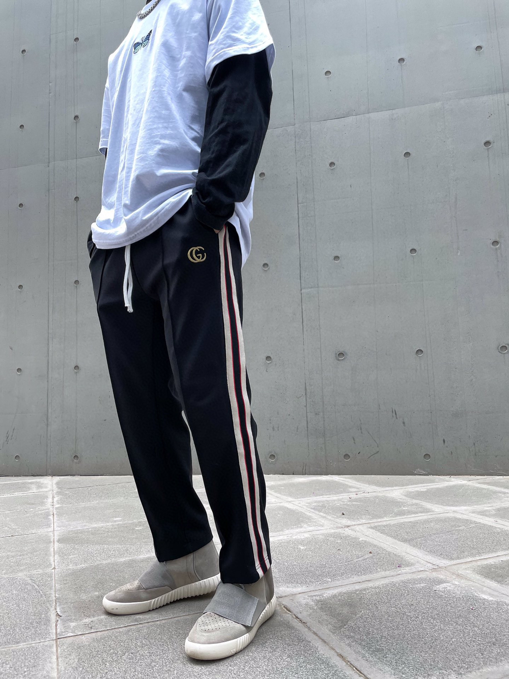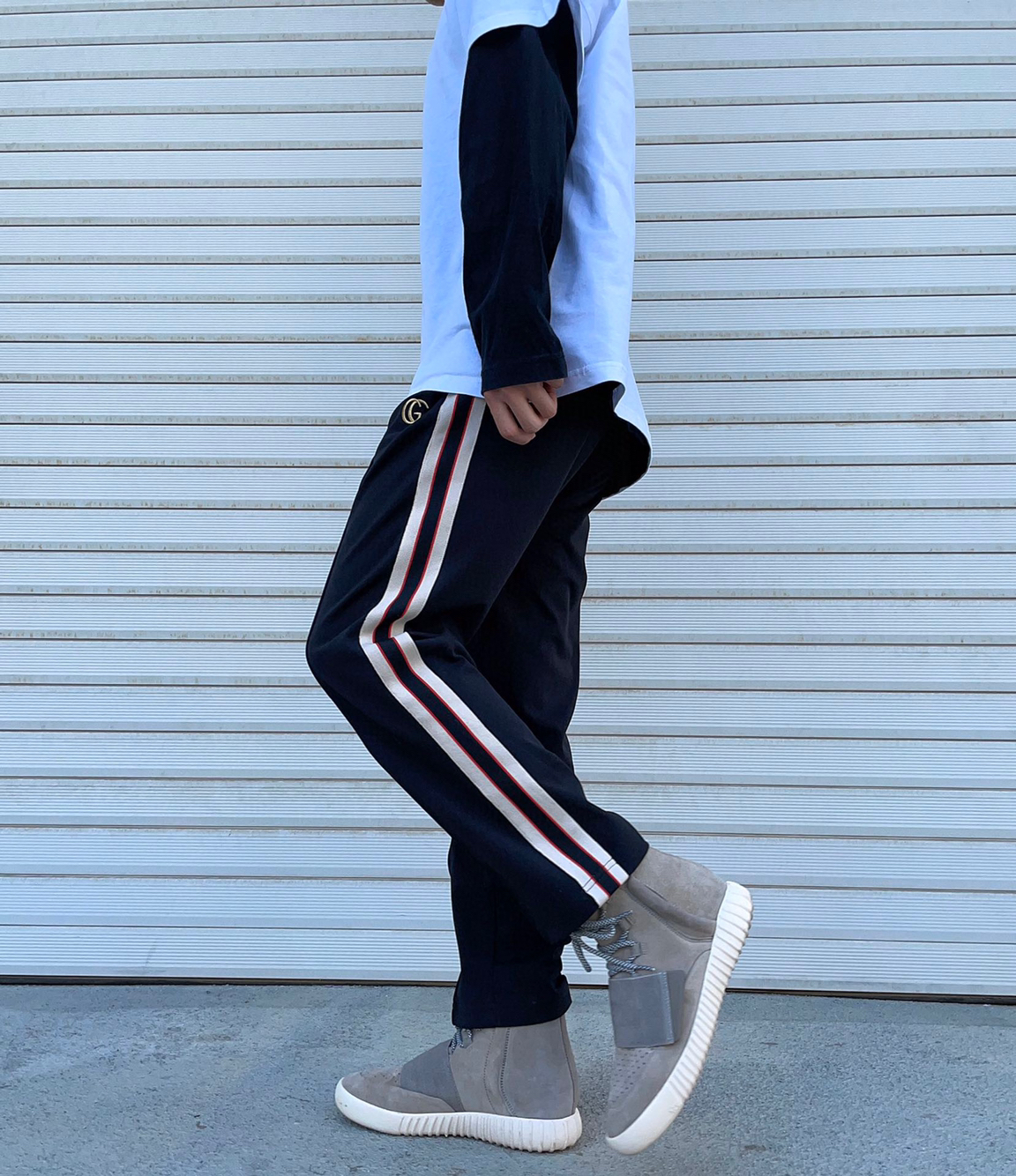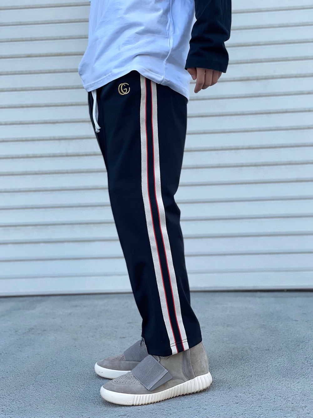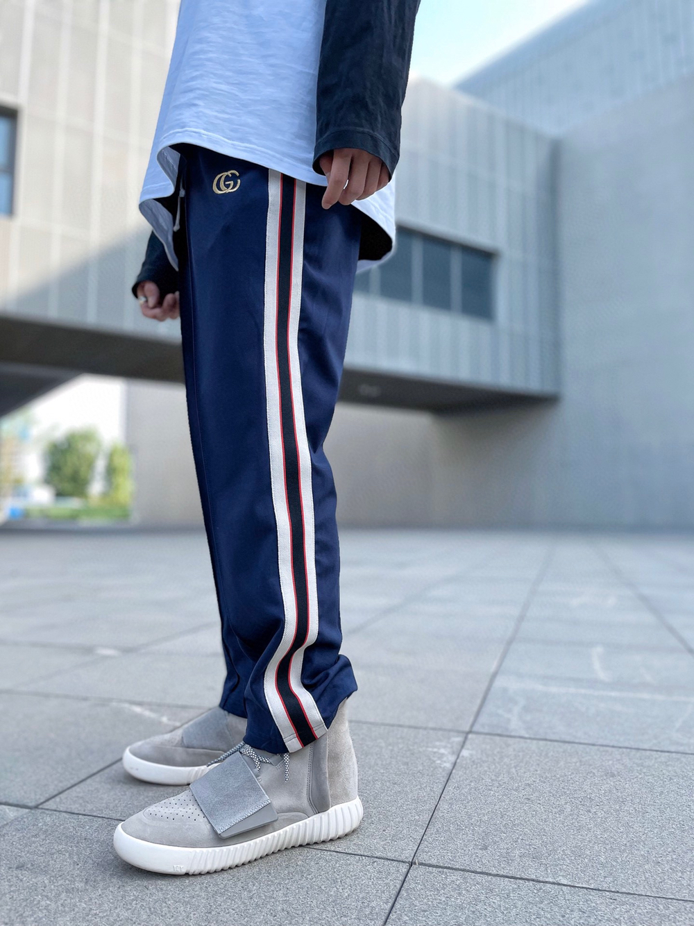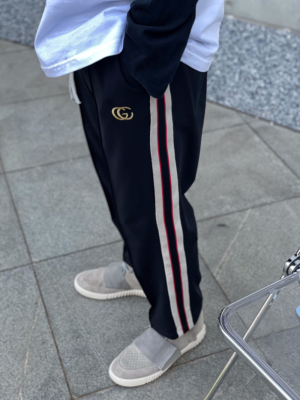 👟比较久的款了 一直找不到合适的裤子搭配 头都要挠秃了 👖 GC金线刺绣提花织带休闲小长裤 ,偏九分,更适合夏天,侧边拼色织带设计,高密度平纹刺绣织带,手感非常柔软。拼色设计,百搭好看。无论是运动还是休闲都有极佳的舒适性。直筒立体剪裁版型,偏九分裤的长度
