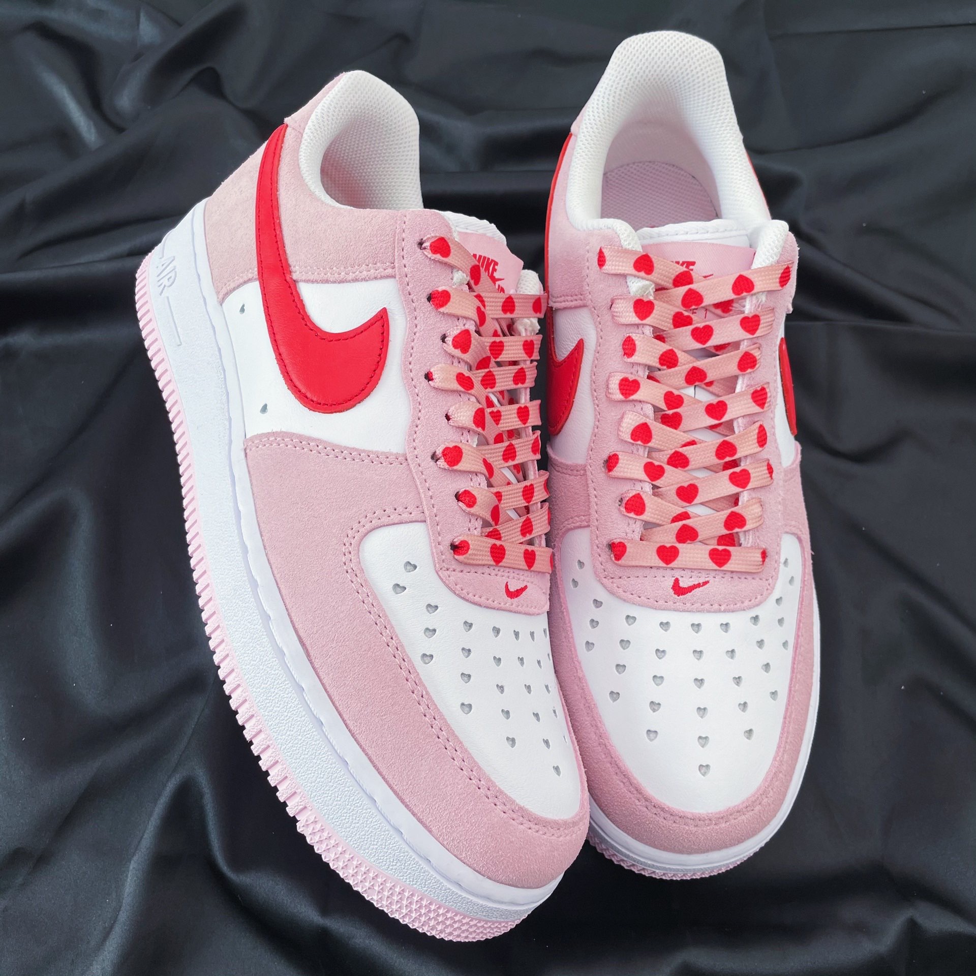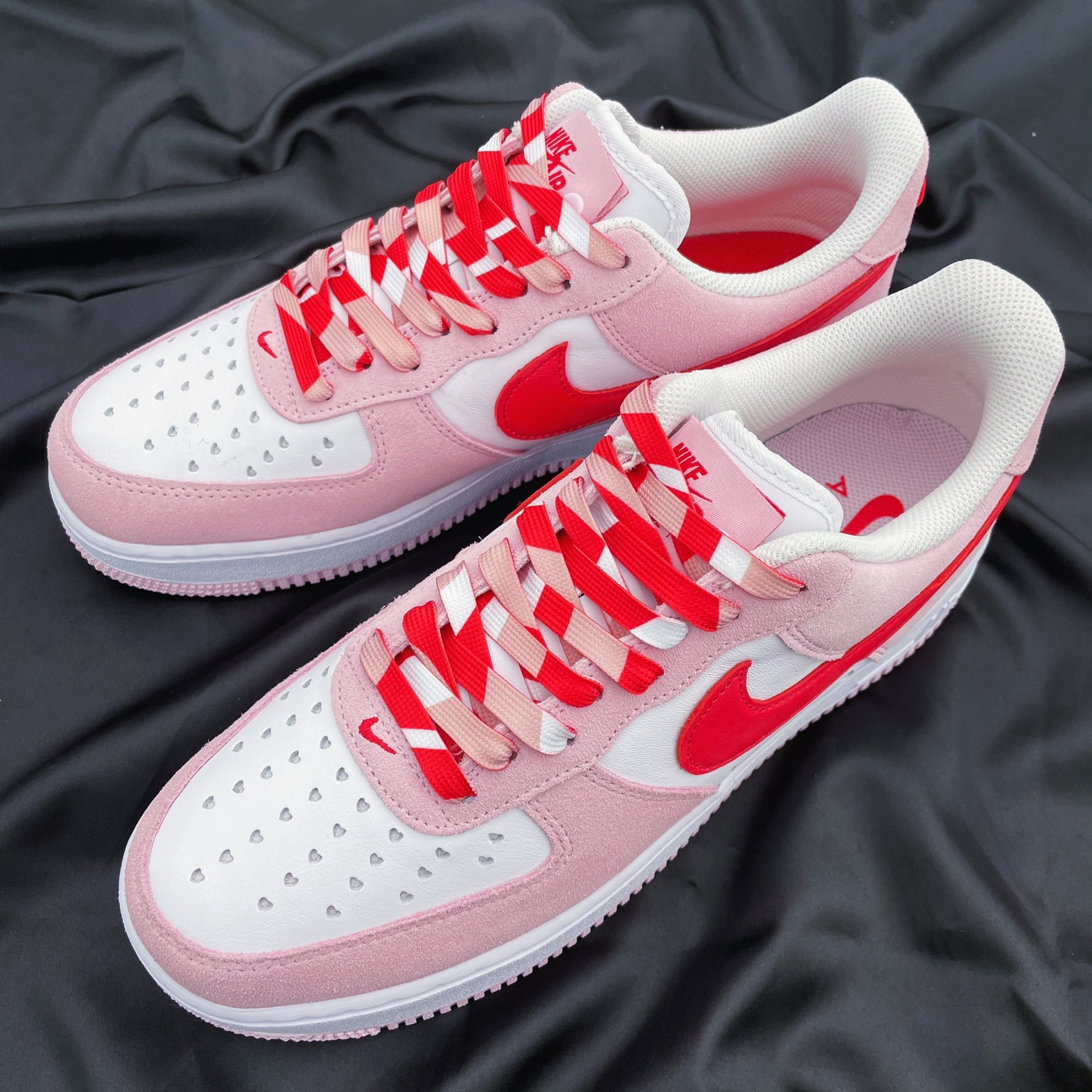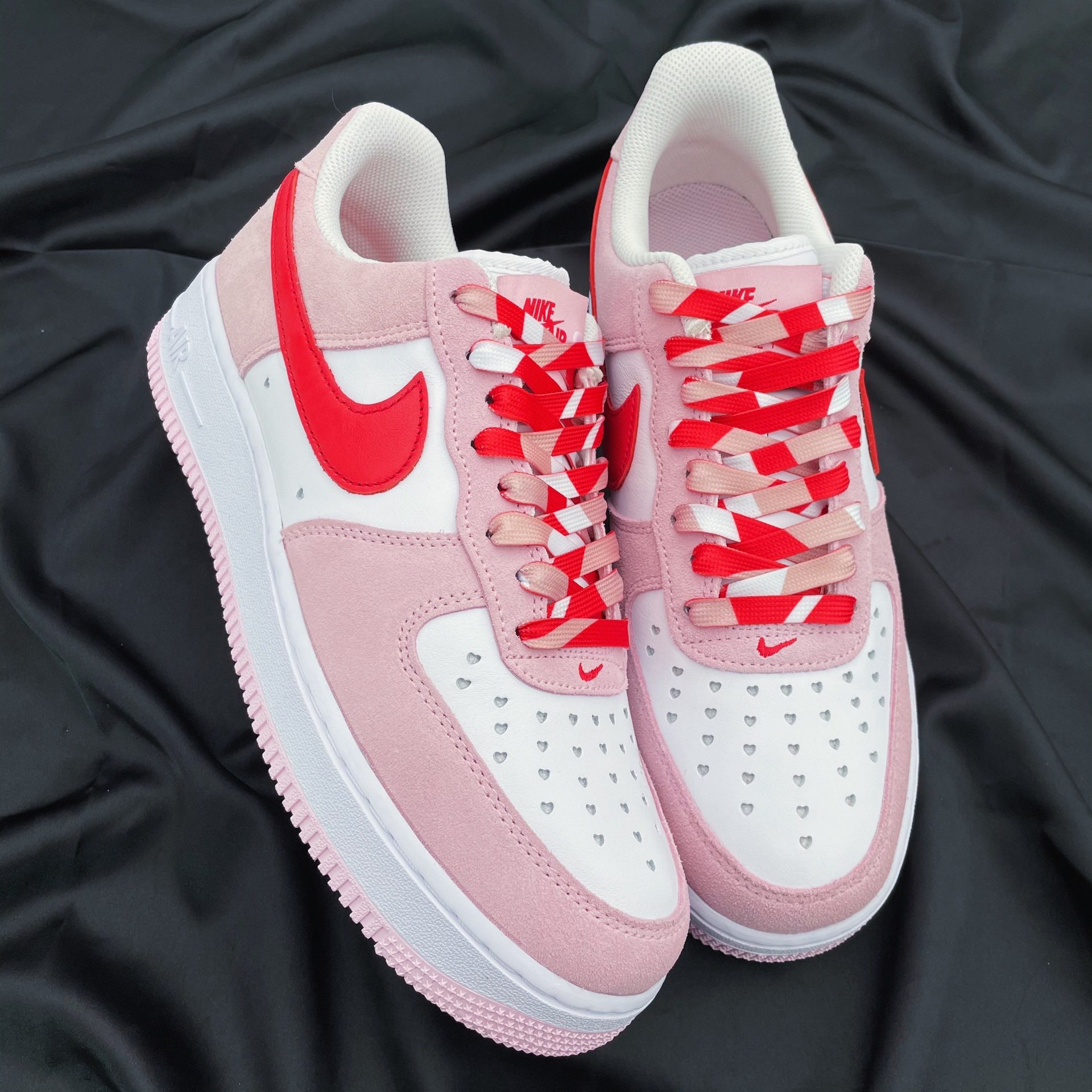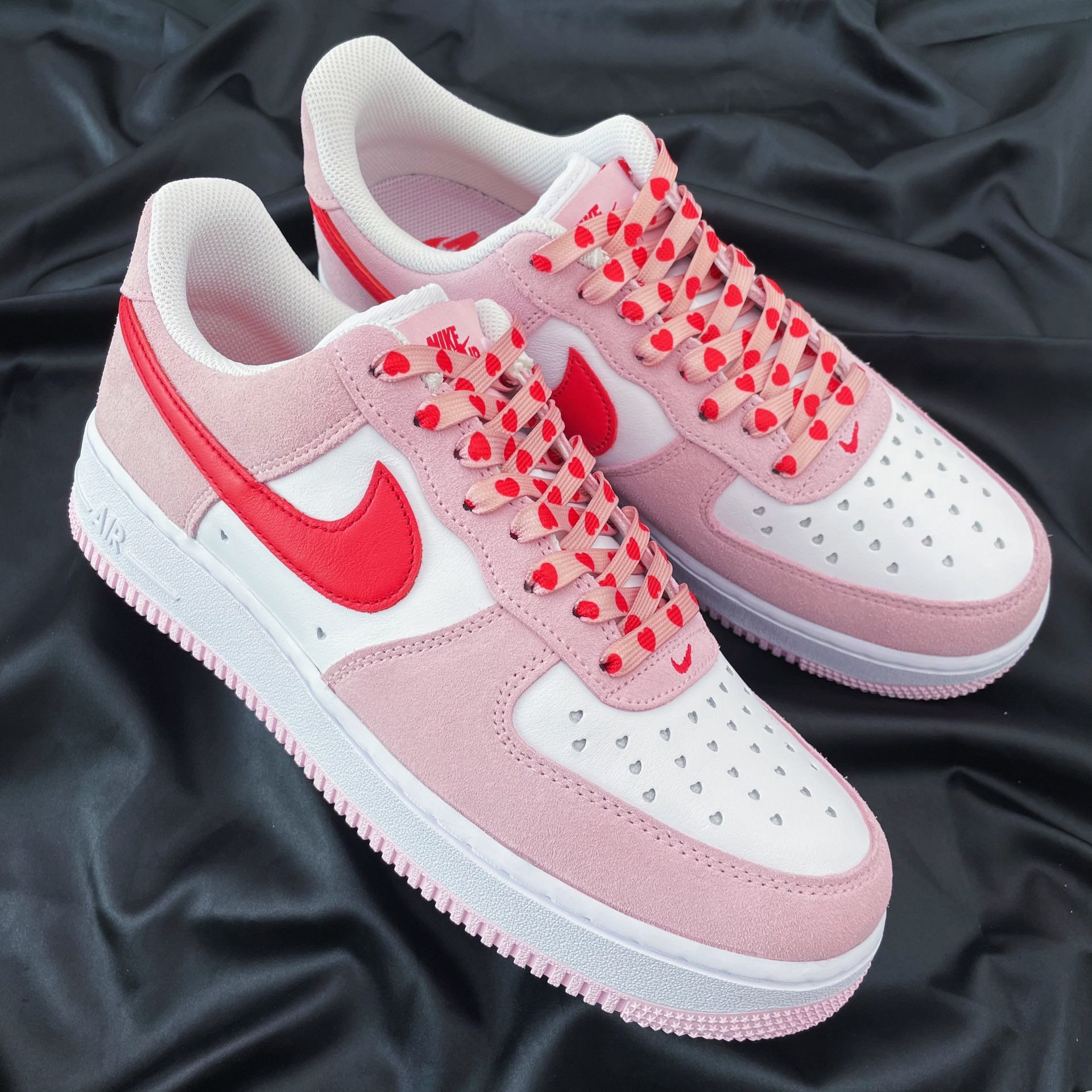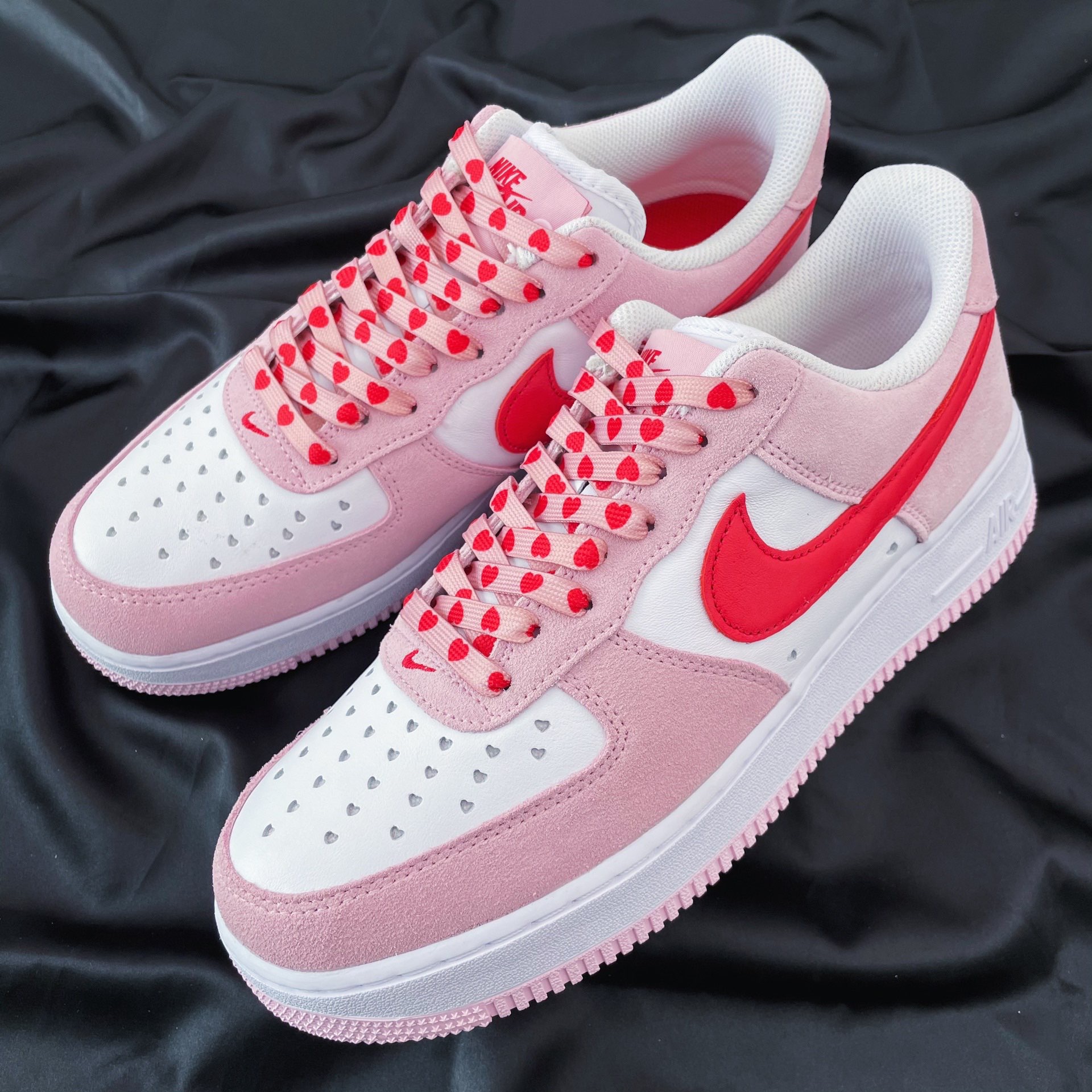 马上就要到情人节啦 分享一款超nice的球鞋 Nike Air Force 1 “Valentine‘s Day”粉红 鞋款采用大学红和郁金香粉红配色 色调清新可爱 左右脚鞋舌图案都搭配按扣设计 寓意十足 后跟处的Nike Air 品牌logo采用心形标志点缀 细节感强 鞋带是CMFY 粉红情人节拼接鞋带 搭配鞋款简直锦上添花 充满浪漫的氛围感 情人节一定不能错过的款式! @POIZONer潮搭周...