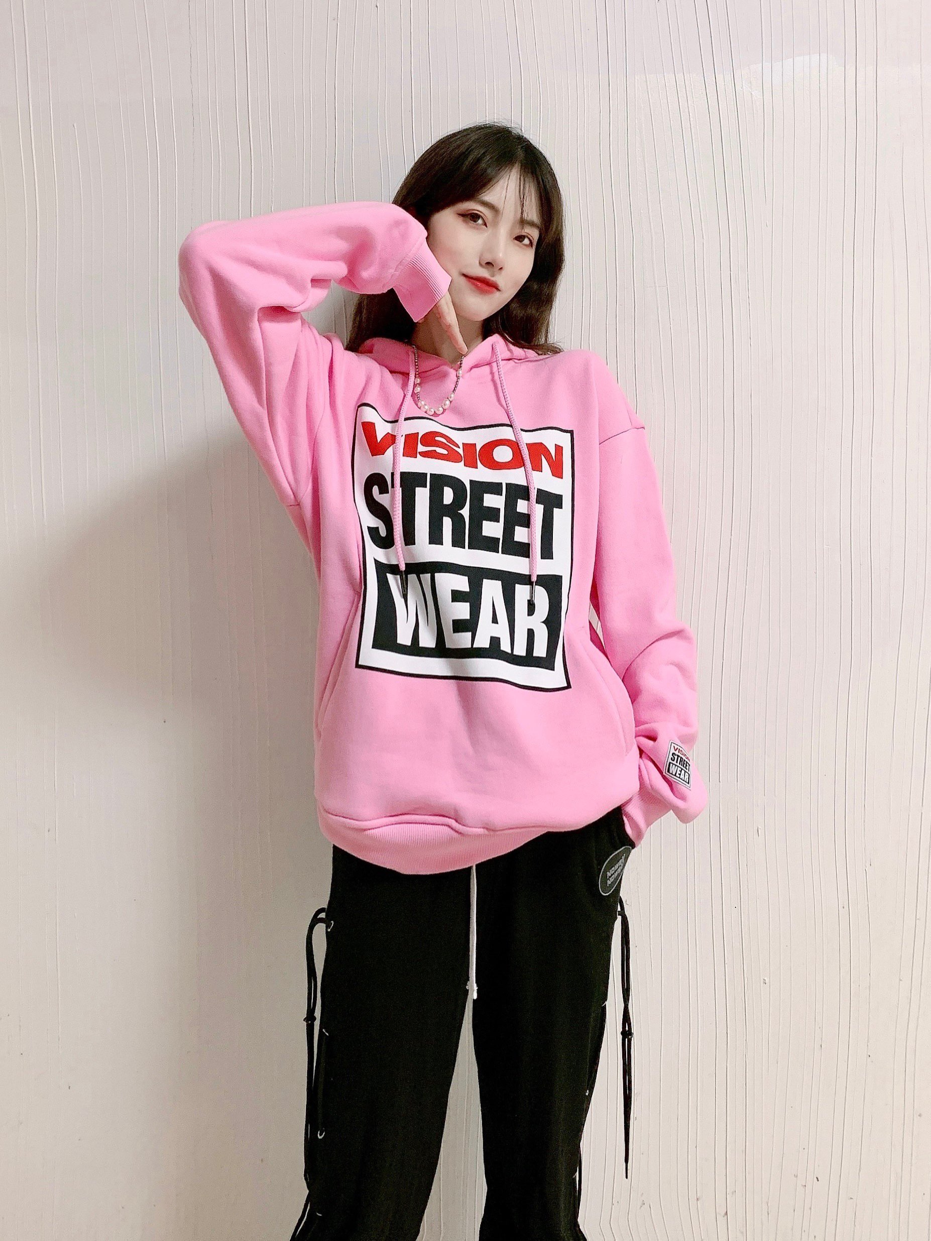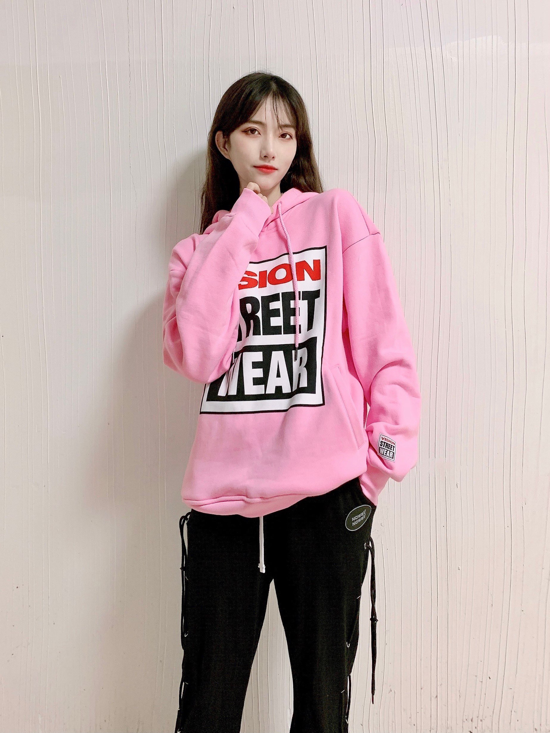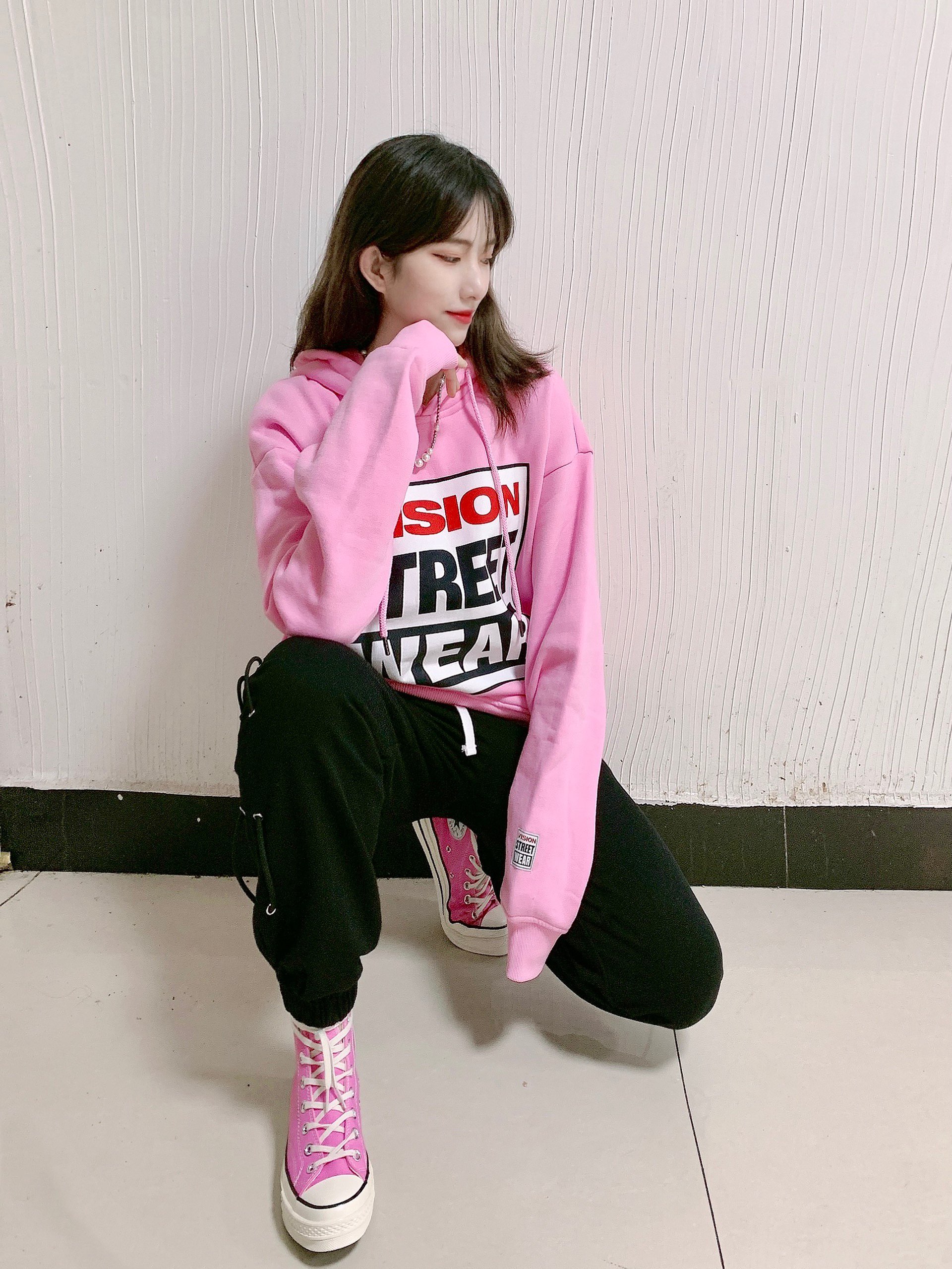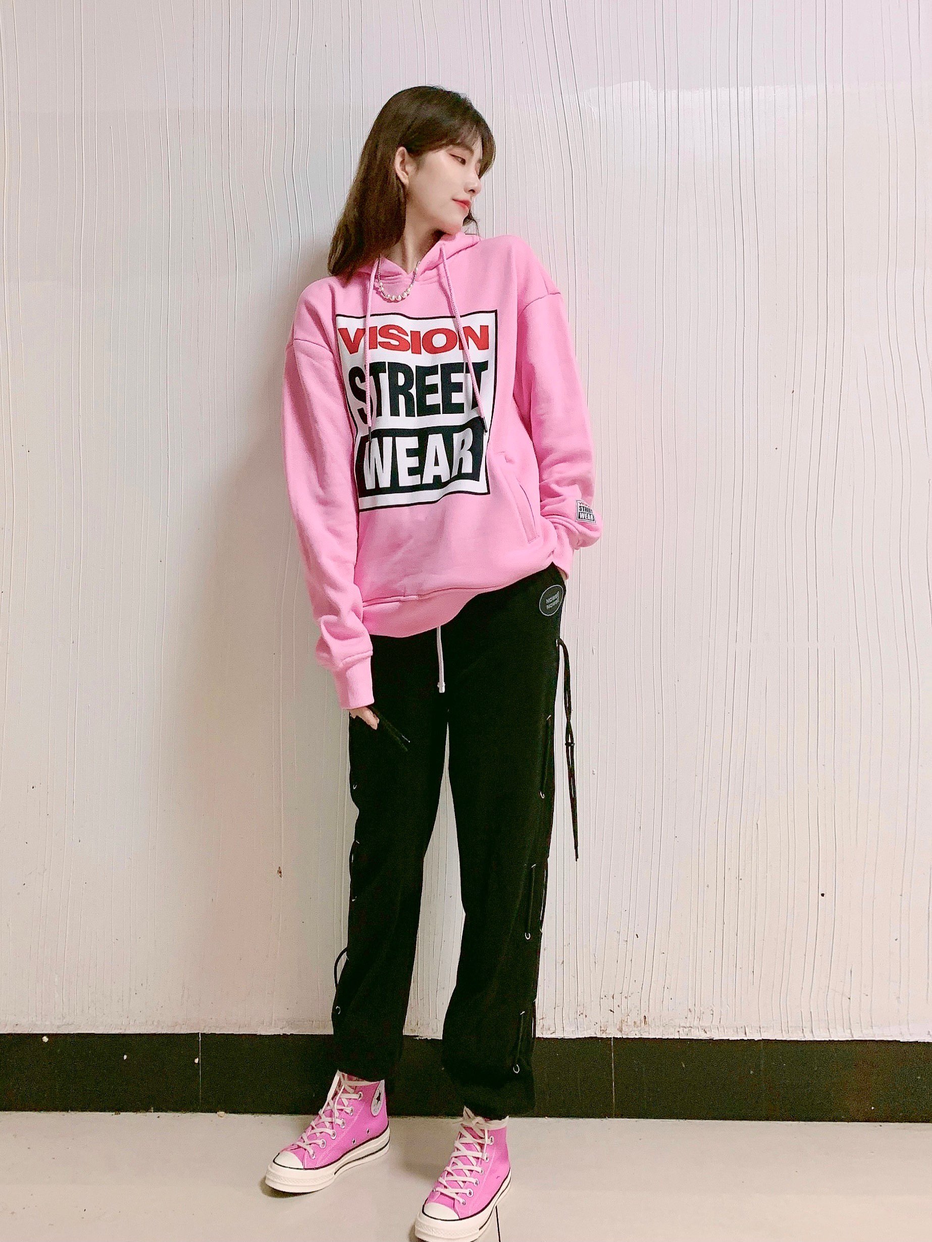 今日粉色系穿搭💕 🔗 VisionStreetWear 粉色连帽卫衣@VisionStreetWear 粉色特别嫩 很显白也很百搭 🔗 NOWS 宽松侧边抽绳束脚裤@NOWS官方 侧边抽绳设计特别有个性 可以随意调节