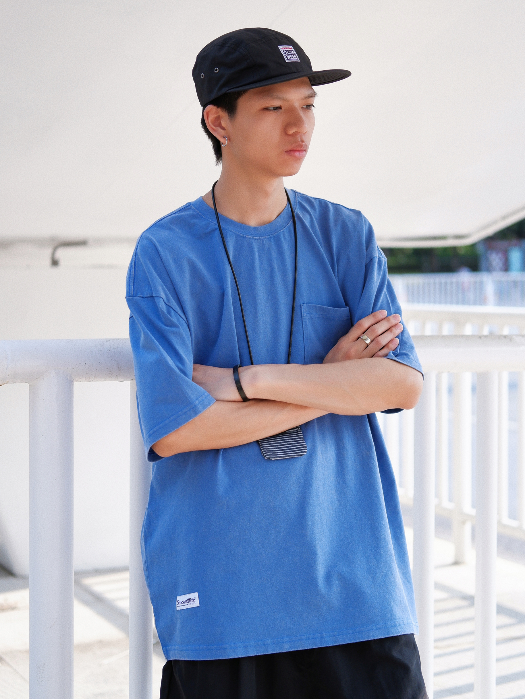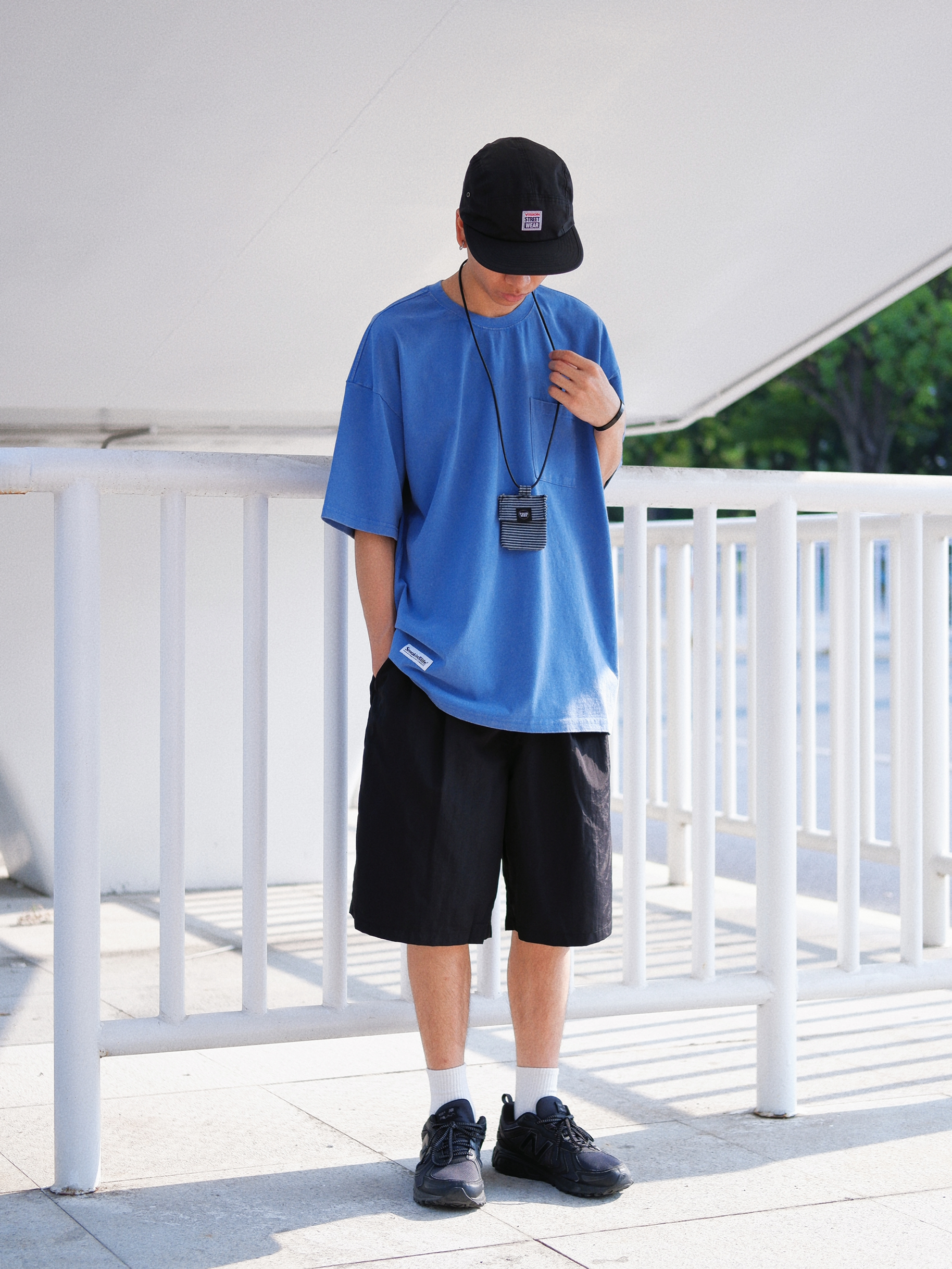 👕LSAGE 在夏天穿T恤的日子里 街上能让我最有印象的大概是蓝色T 简单的口袋T能让我在配饰上一展身手 - 🩳LSAGE 短裤应该人人都有 但舒服便捷的短裤你不一定有 带有褶皱感的面料短裤让我在洗后可以不用担心需要熨烫 橡皮筋的腰间也释放了每天戴腰带的步骤 - 💼FOURSIZE 来自19年款的夹克上取样缝制的零钱包 也是自己diy的第一件作品哈哈