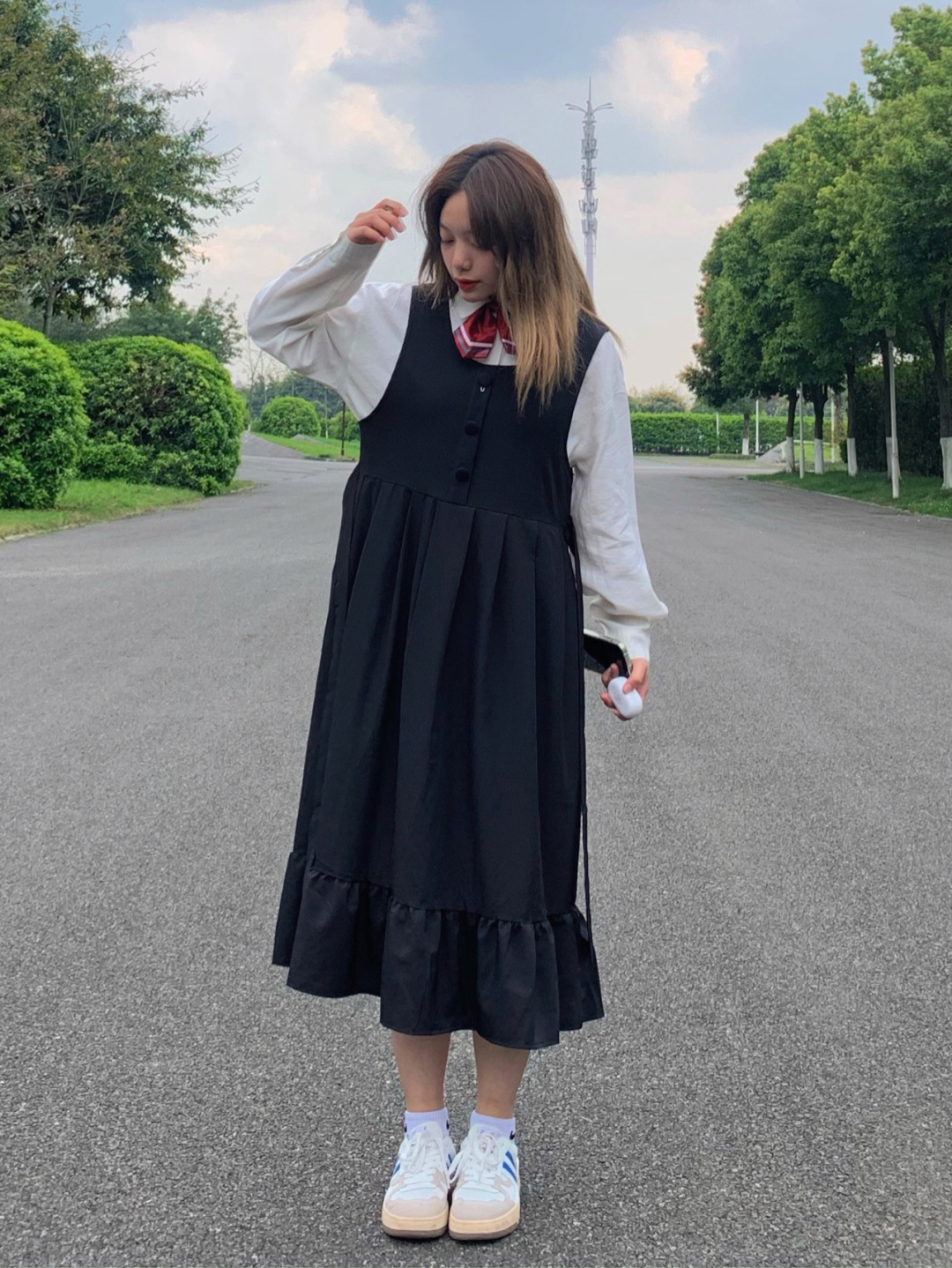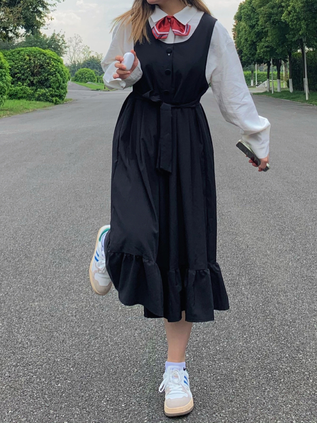 🌷Hello!饱宝们早上好呀!我是小李!今天分享3⃣️套近期穿的裙子𝗟𝗼𝗼𝗸!!每套都是不同的感觉吼!! 🗣身高158体重110胸围86肩宽39腰围76大腿围55小腿围35! - ♡𝑳𝑶𝑶𝑲1 ♡ 🍟白衬衣+纽扣背带裙:你别笑啦|M码 🍟蓝牙耳机:唐麦 ❝狠学院风滴一套 穿上也太减龄了吼 日系JK长裙可以说很适合微胖的姐妹们啦!!配上偶滴新耳机!音质很nice的一款蓝牙耳机!! ❞ ♡𝑳𝑶𝑶𝑲2...