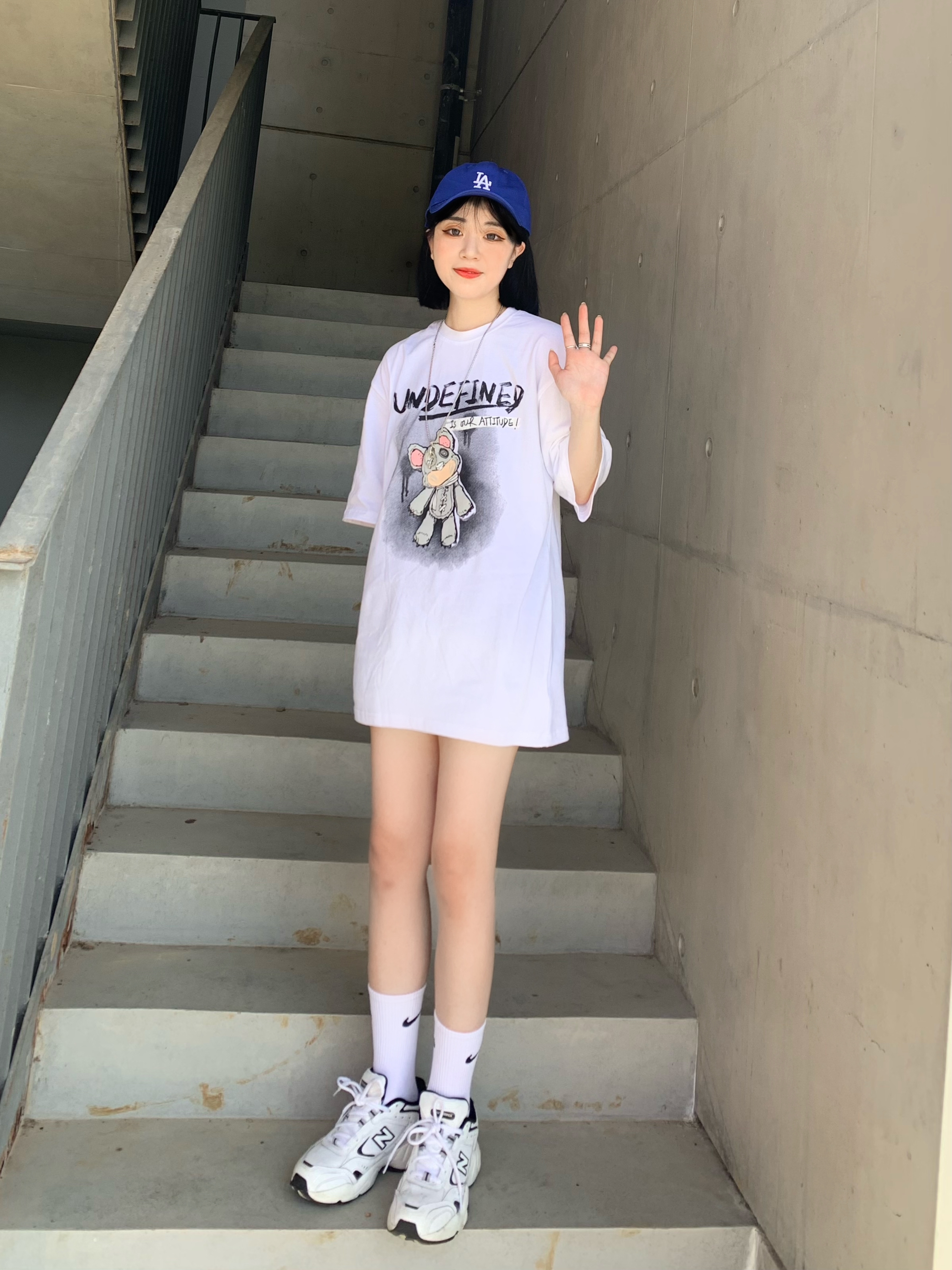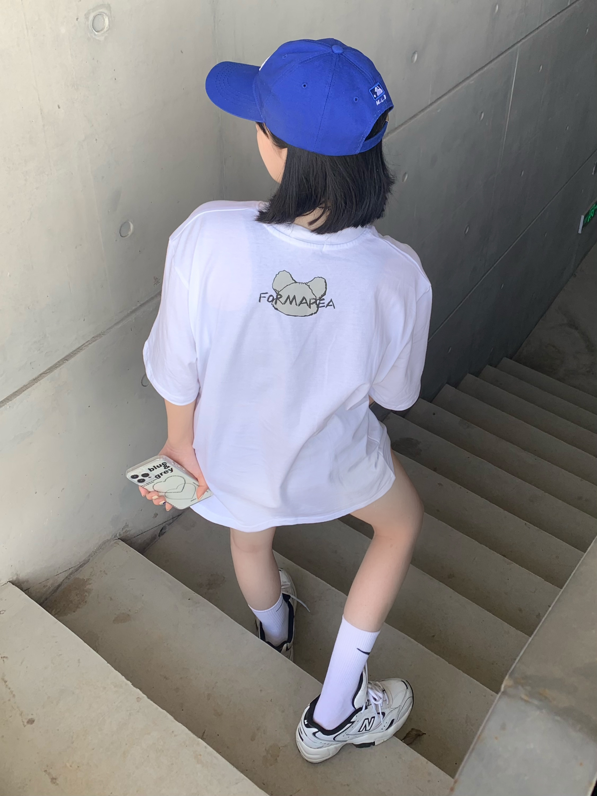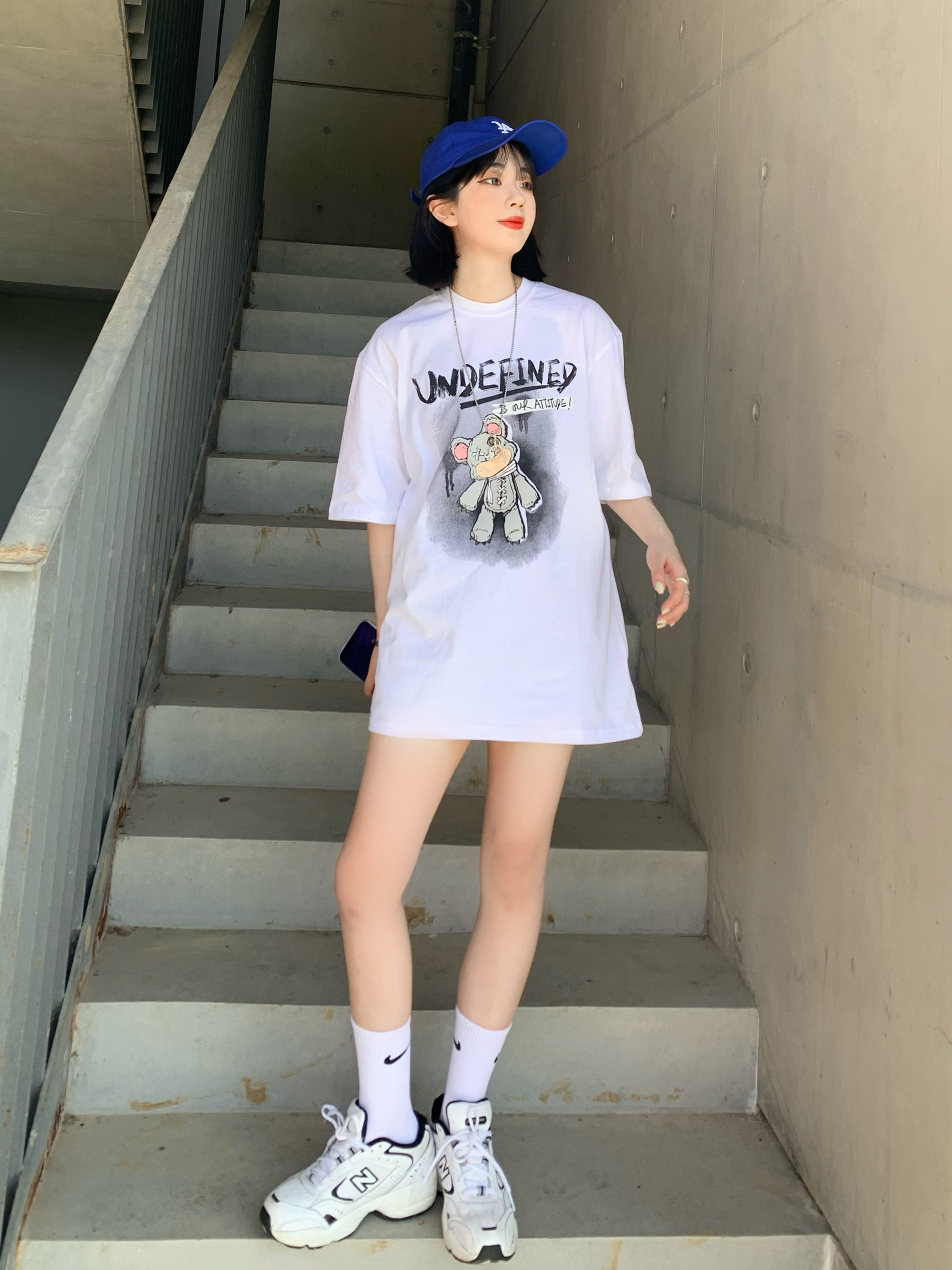 运动风的清纯感才是最高 这件白t还挺好穿的有一说一 好的我实在想不出标题了哈哈哈哈哈哈 这件白色t太可爱辽!!!纯白色和朋克小熊带来的反差感