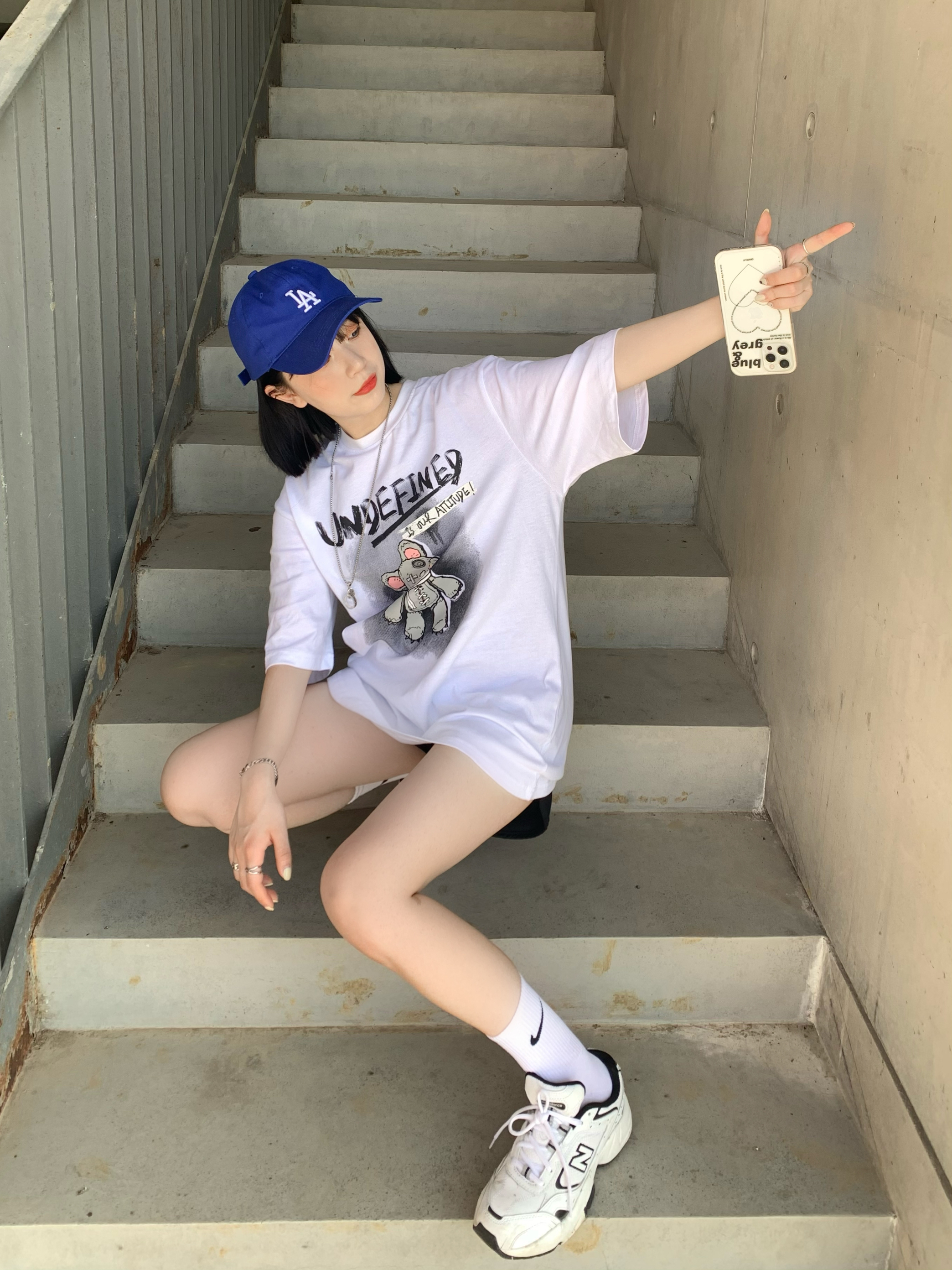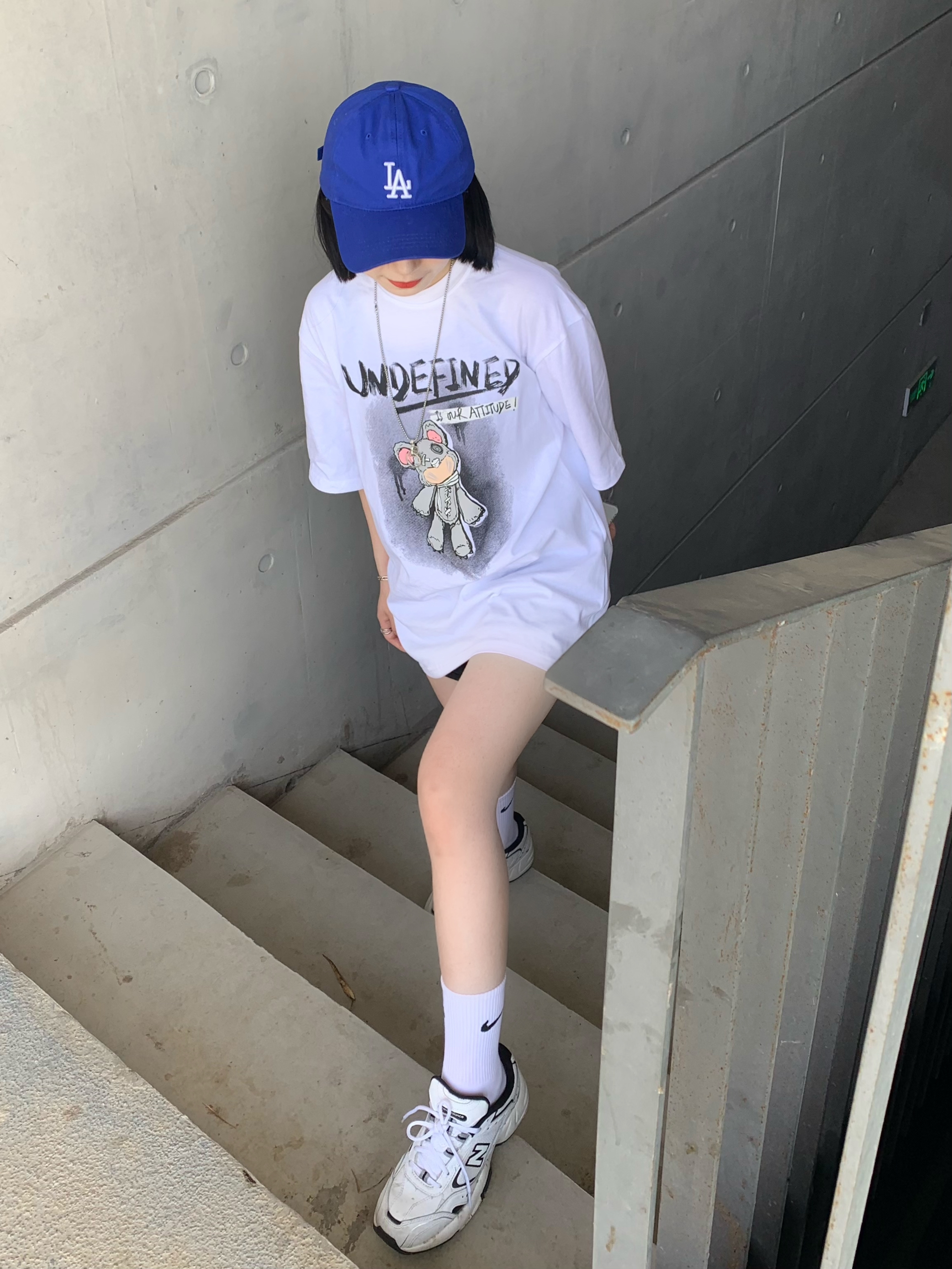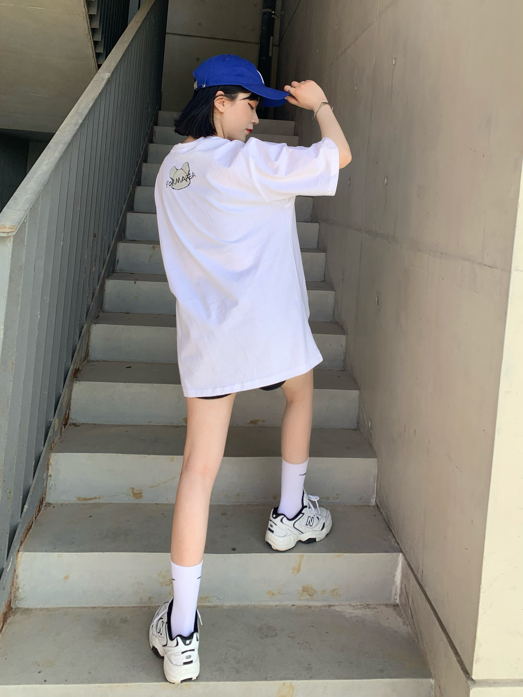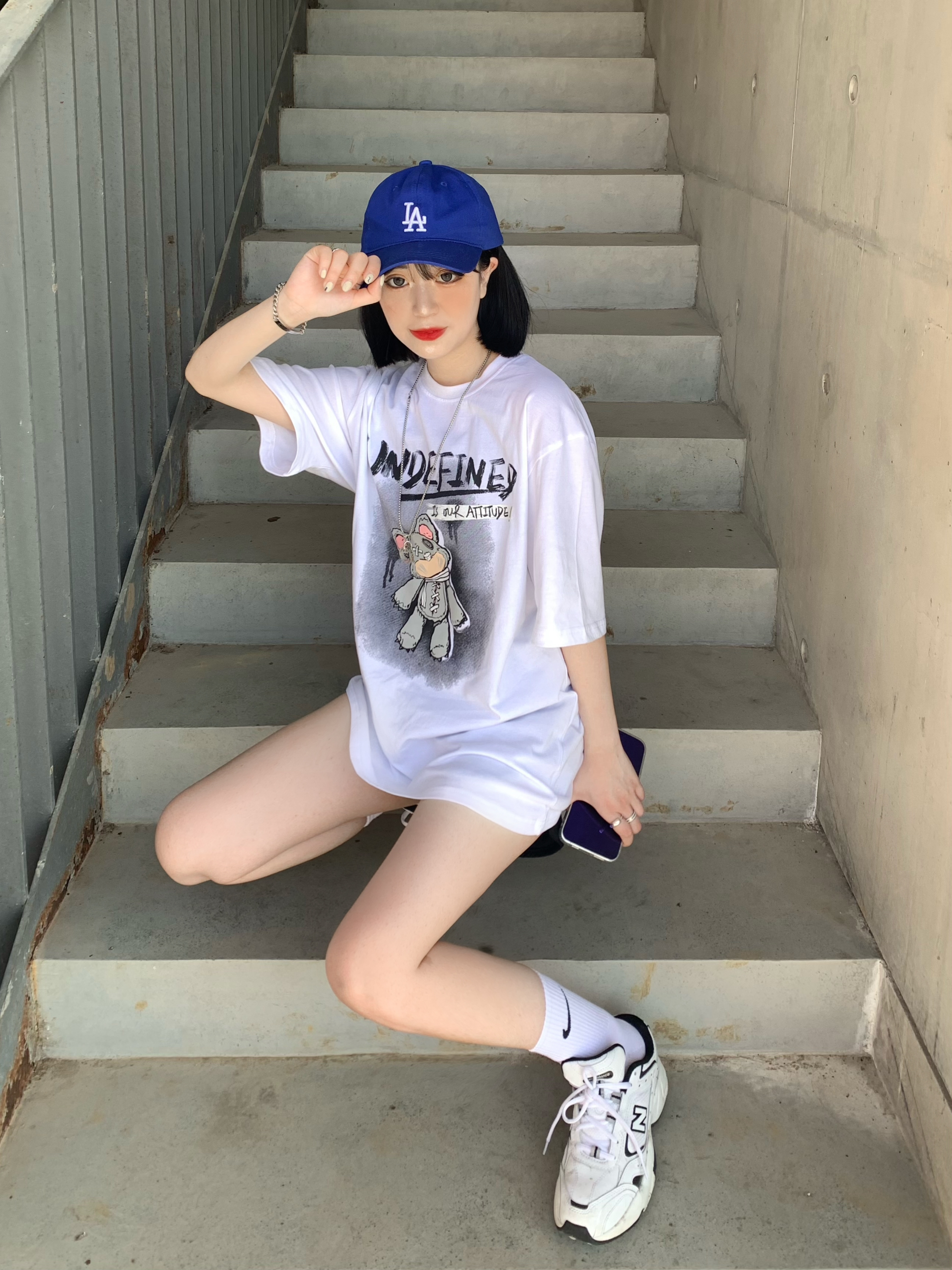 运动风的清纯感才是最高 这件白t还挺好穿的有一说一 好的我实在想不出标题了哈哈哈哈哈哈 这件白色t太可爱辽!!!纯白色和朋克小熊带来的反差感