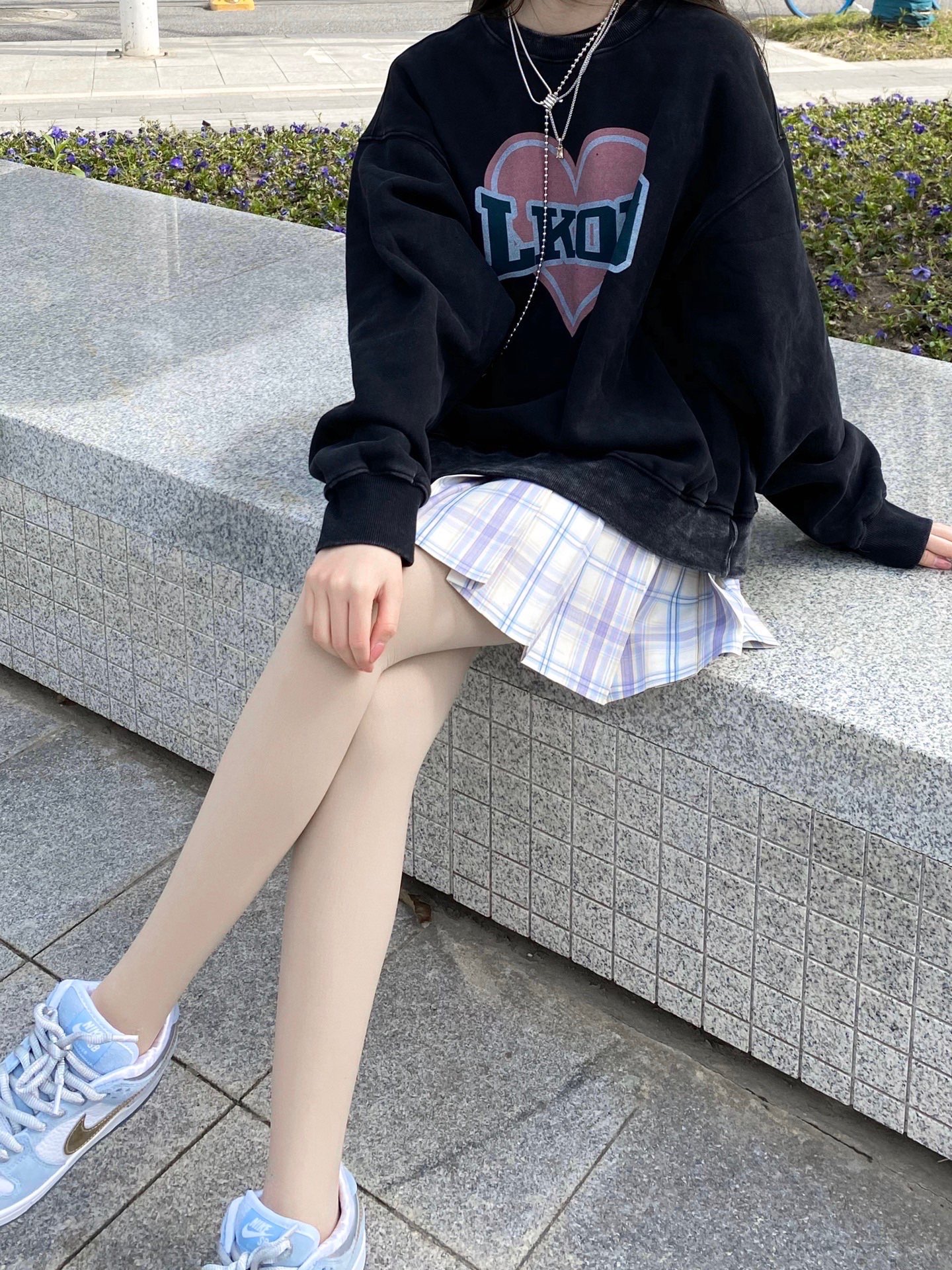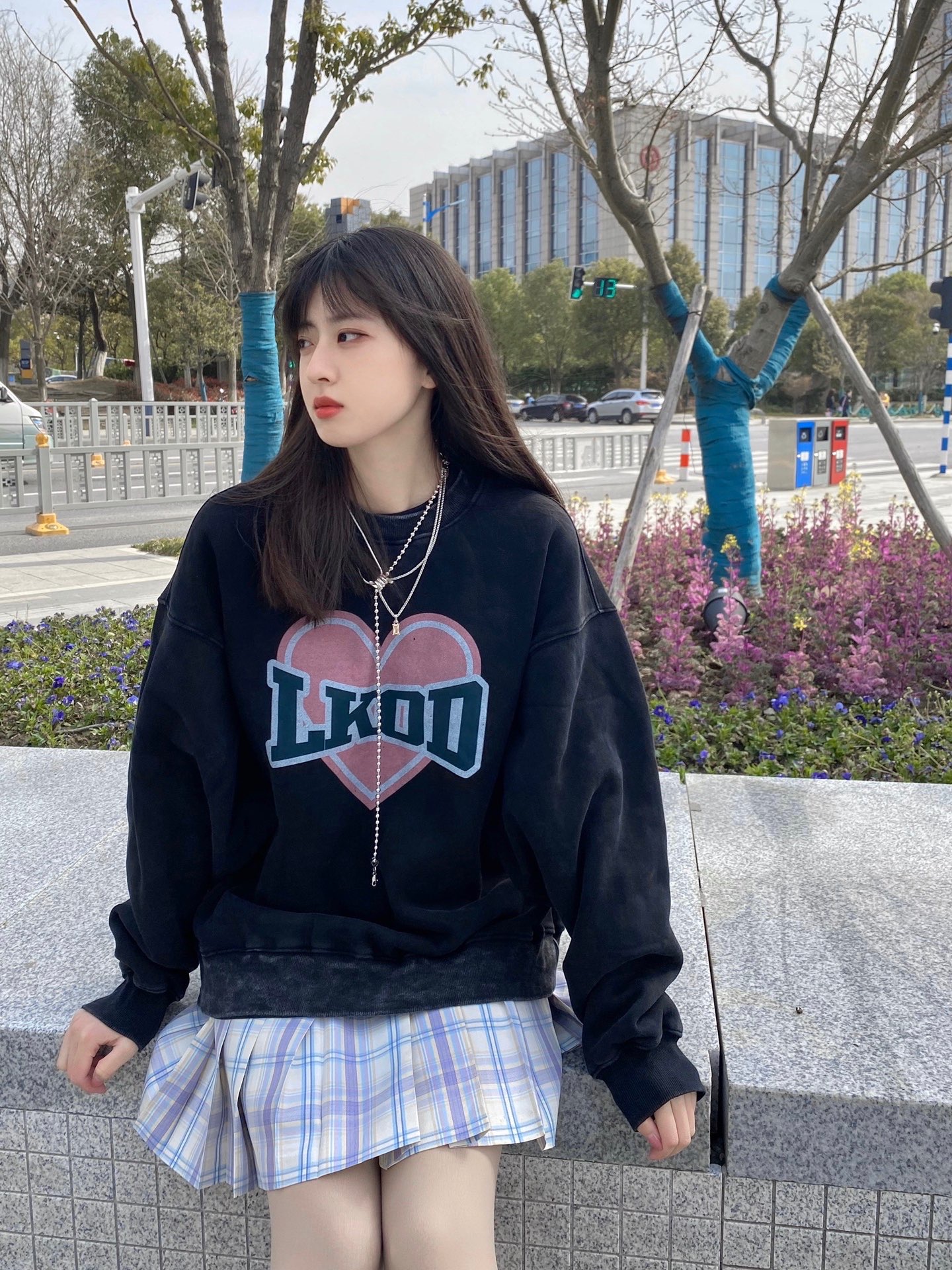 终于不下雨了! 出门玩耍真开心 我爱晴天~ 今天穿的上衣是一件做旧效果的圆领卫衣 很有质感~料子也软软的 摸起来很舒服 👔:lkod爱心水洗圆领卫衣#LKOD @LKOD品牌 👗:星野 👟:冰雪奇缘dunk 我穿的是s 尺码可以问小助手@LKOD尺码小助手