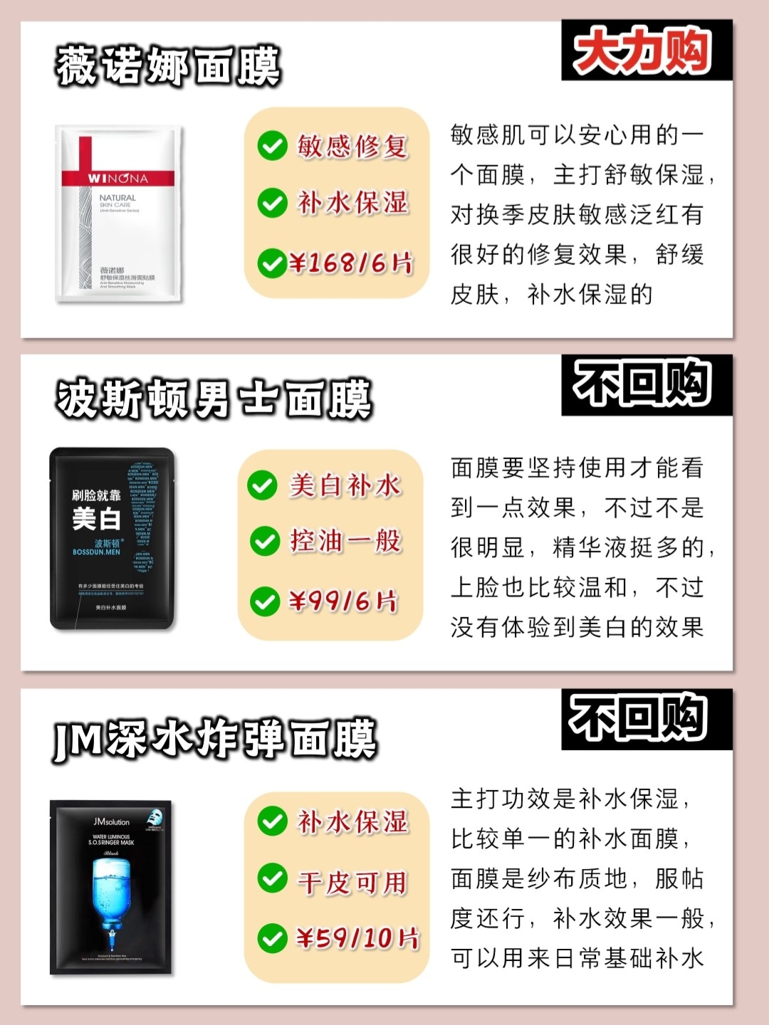 本篇笔记关联了JM solution 深水炸弹去黄气滋养弹润膜 急救改善暗沉保湿补水水盈 补水修复、城野医生 收缩毛孔紧致胶原蛋白面膜贴 毛孔修护细致毛孔改善暗沉贴片 5片、FulQun/芙清 械字号医美促愈功能性敷料白膜 去闭口黑头祛痘淡化痘印改善痤疮 术后修复等商品,为用户提供真实的使用体验和购买参考。