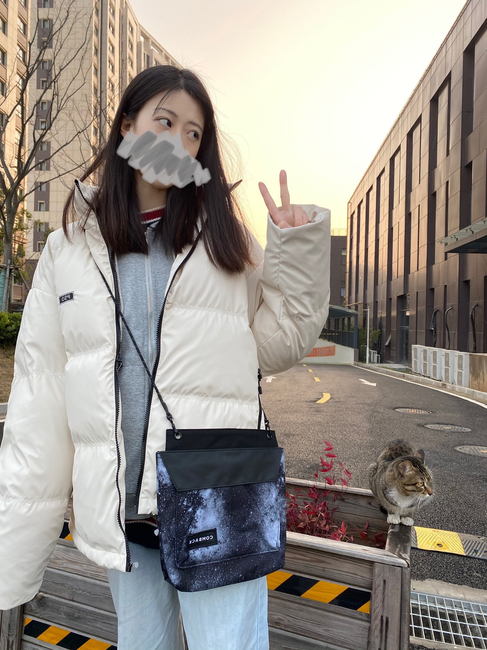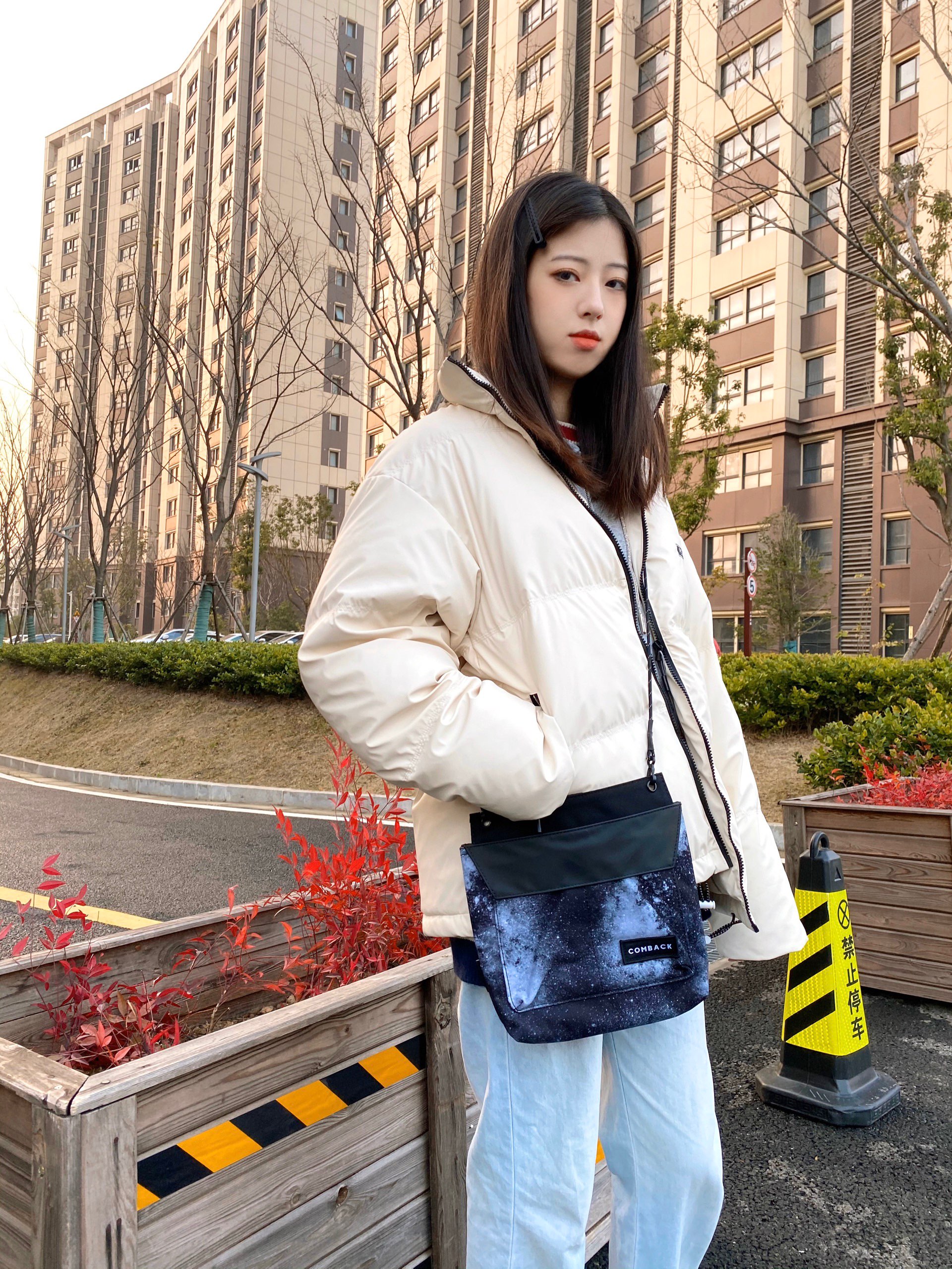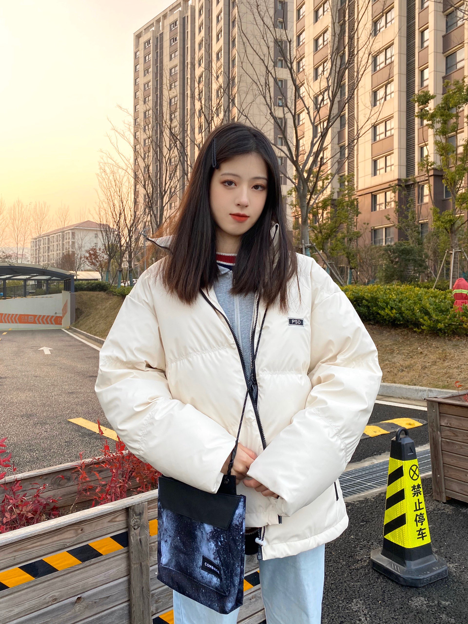 👔:pso brand刺绣立领白鸭绒羽绒服 👜:comback星空斜挎包 今天穿的是白色短款羽绒服~ 衣领和拉链有黑线点缀 胸前有pso的刺绣logo 衣服的料子不是那种普通羽绒服滑滑的 是很软很软的皮质 因为是白色 大家穿起来还是要注意维护一下 比较容易被弄脏 可以带一个可爱的袖套 我穿的是s码 比较宽松 具体的可以看尺码表或者问一下小助手哦 包包是comback的星空斜挎包~很帅 自重很...