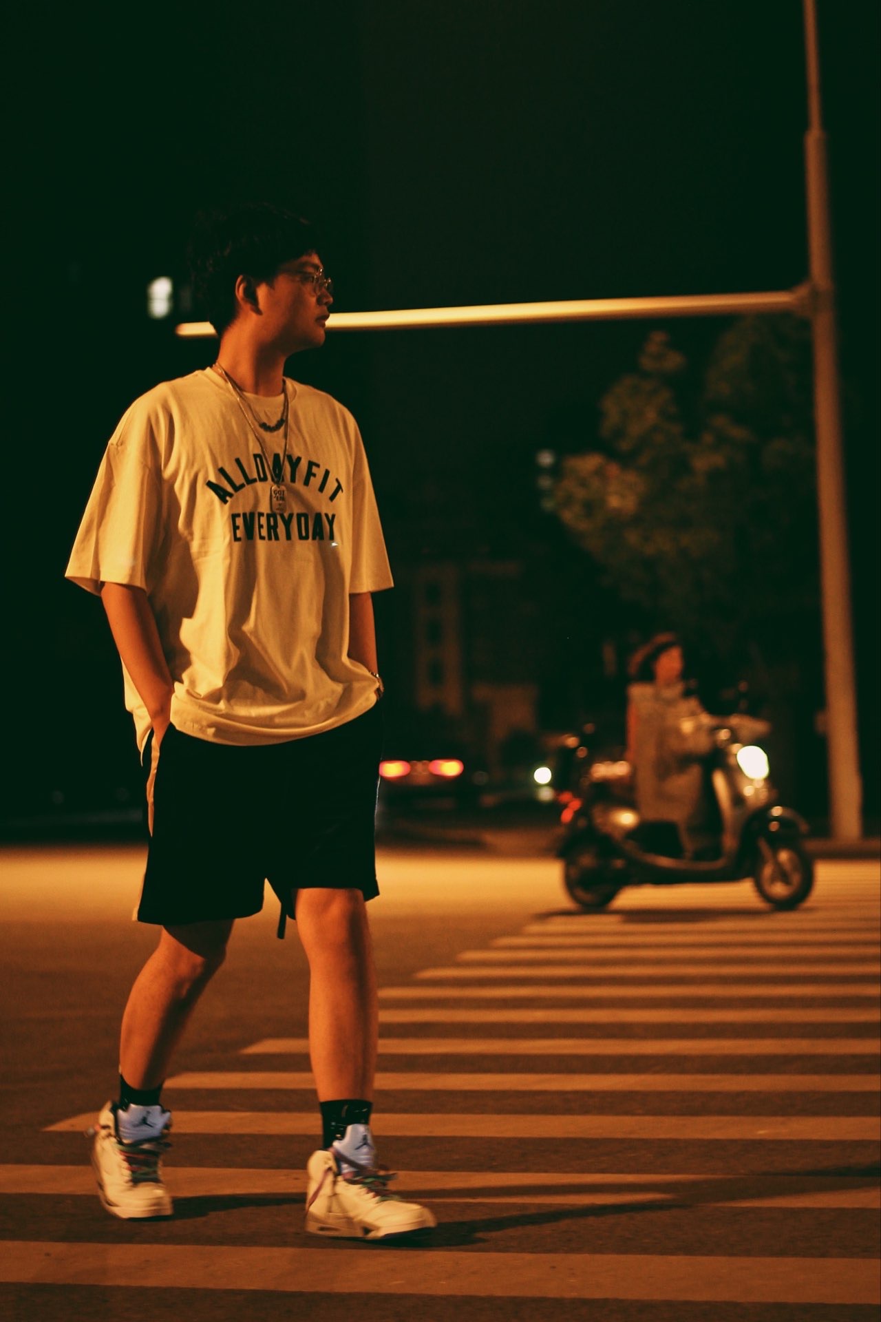 👔:chinism 👖:boneless 👟:AJ5 白蓝 ⌚:浪琴 🎒:supreme 鞋带:CHARSEA 🧦:上森派系 今天给大家带来春日穿搭。 白色印花T配上丝绒短裤,紧跟潮流却又不随大众。 衬衫印花风格我非常喜欢,丝绒短裤让简单的五分裤变得质感十足,配上火红的腰包妆点细节不显单调。 简约风格,但我想要的街头元素都有提现👐🏻👐🏻 上脚最新的白蓝AJ5,换上新鞋带,小细节让整个穿搭看起来更加...