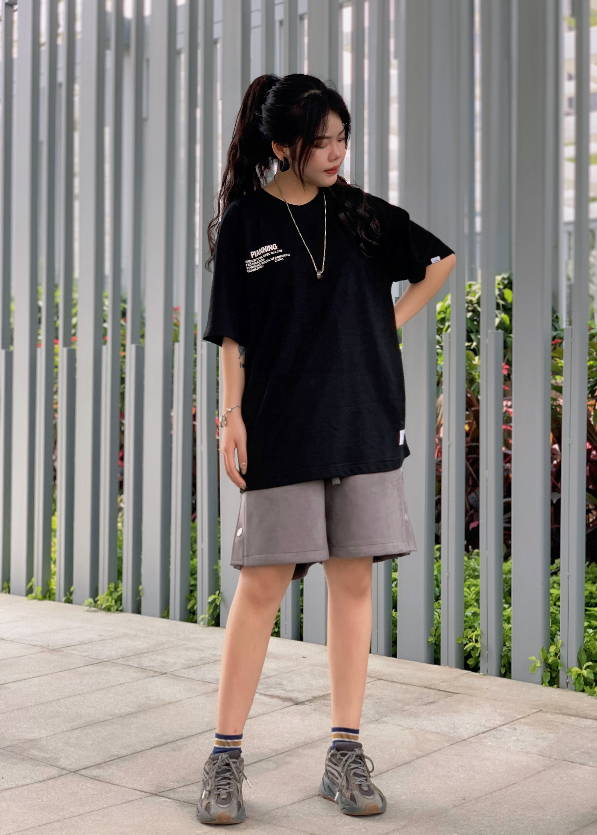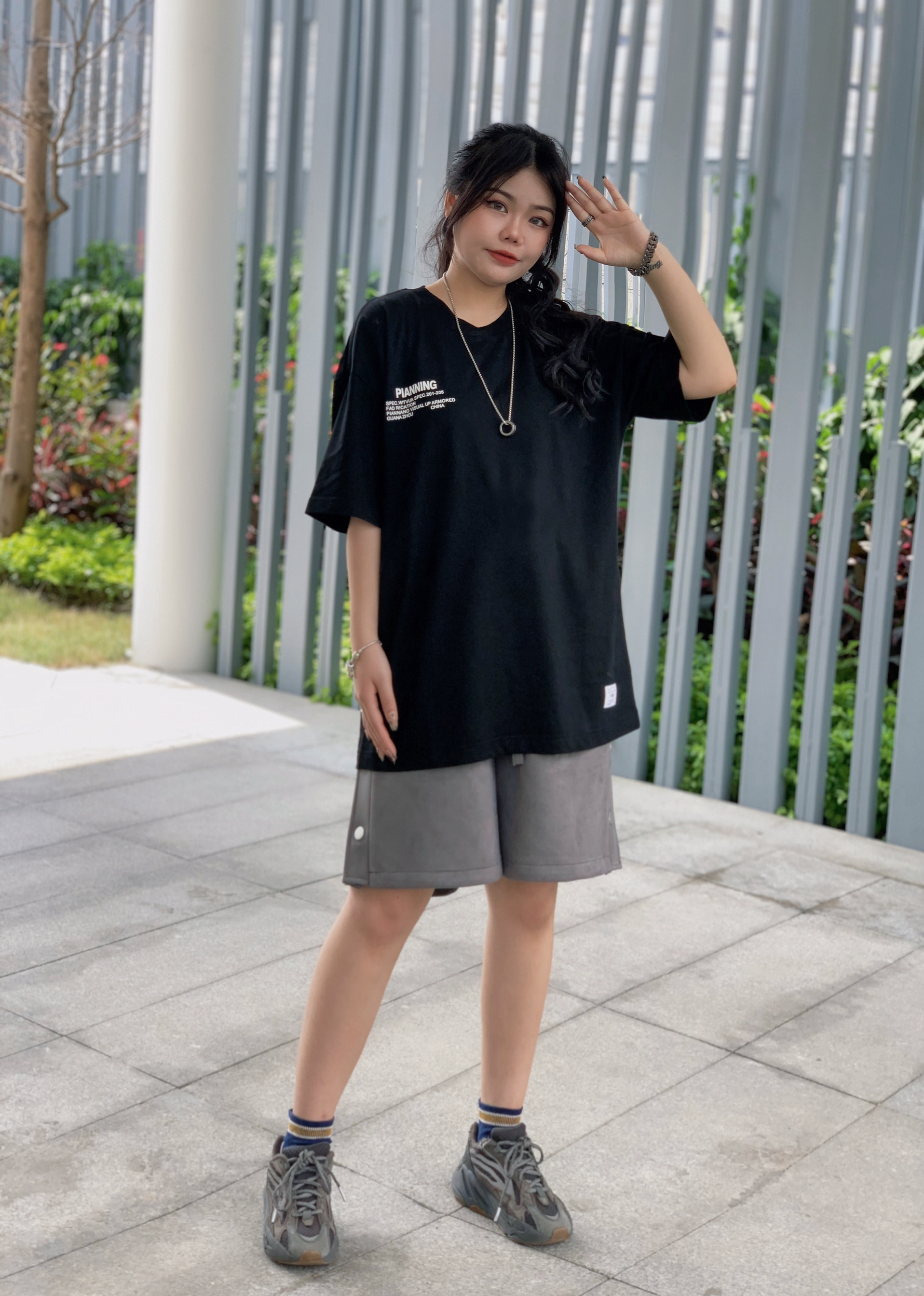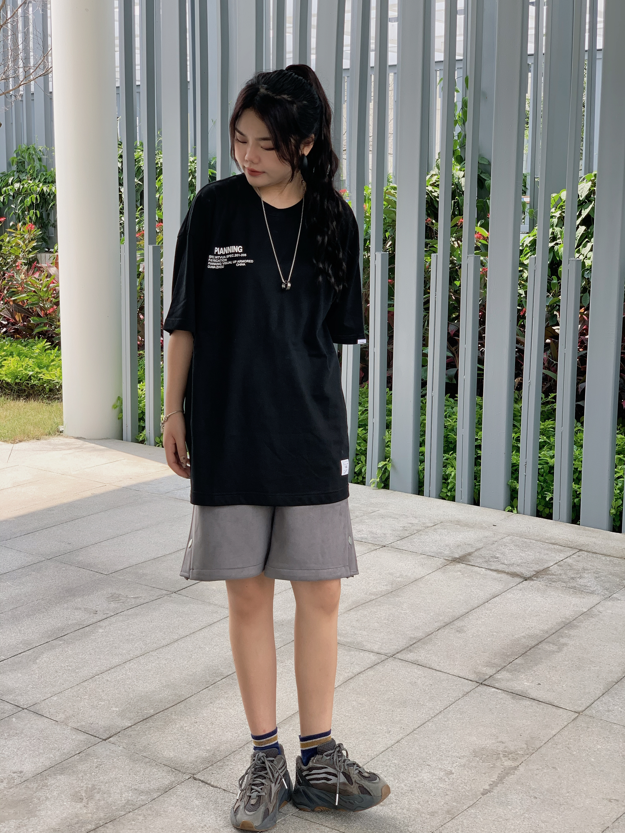 衣服 pianning 裤子UTTERER 鞋子 YEEZY700 夏天休闲运动风安排上,圆领基础款短袖,纯棉面料透气舒服,日常作为百搭款短袖还是ok的。短裤是fog风麂皮排扣短裤🩳版型直筒宽松,嘻哈街头风满满~男女生都可以轻松驾驭的一款单品。